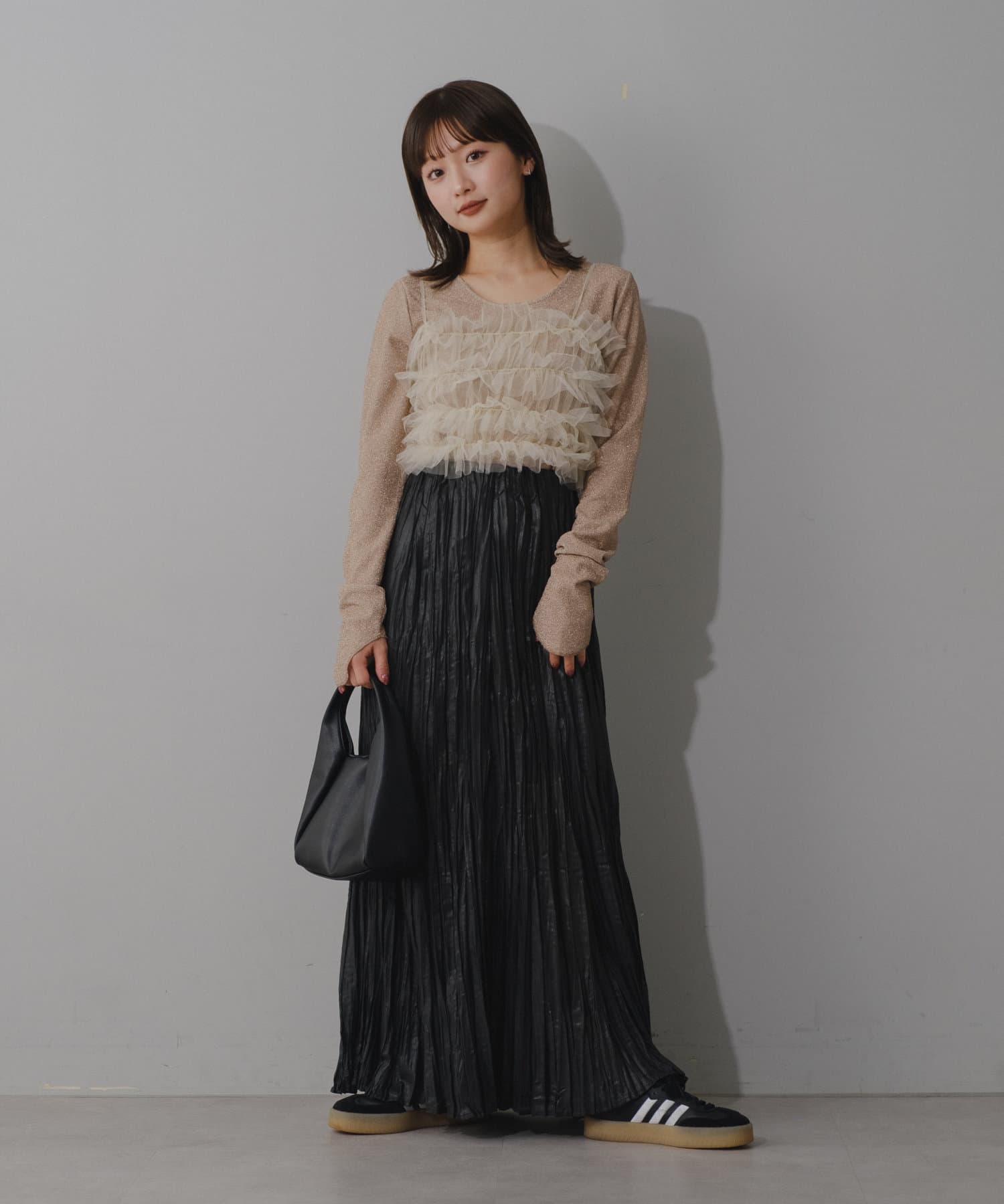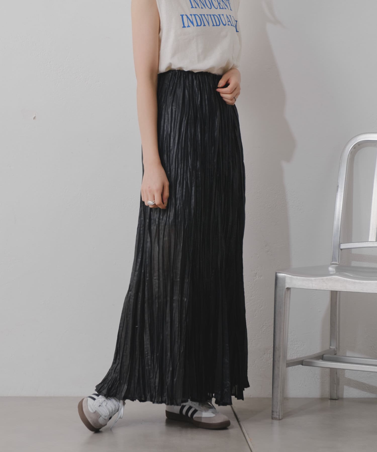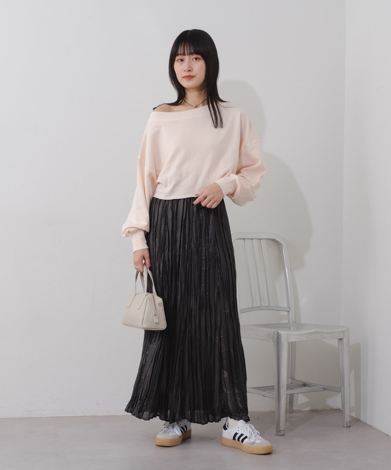 程よくフレアシルエットで動く度ひらりと揺れるプリーツスカート。