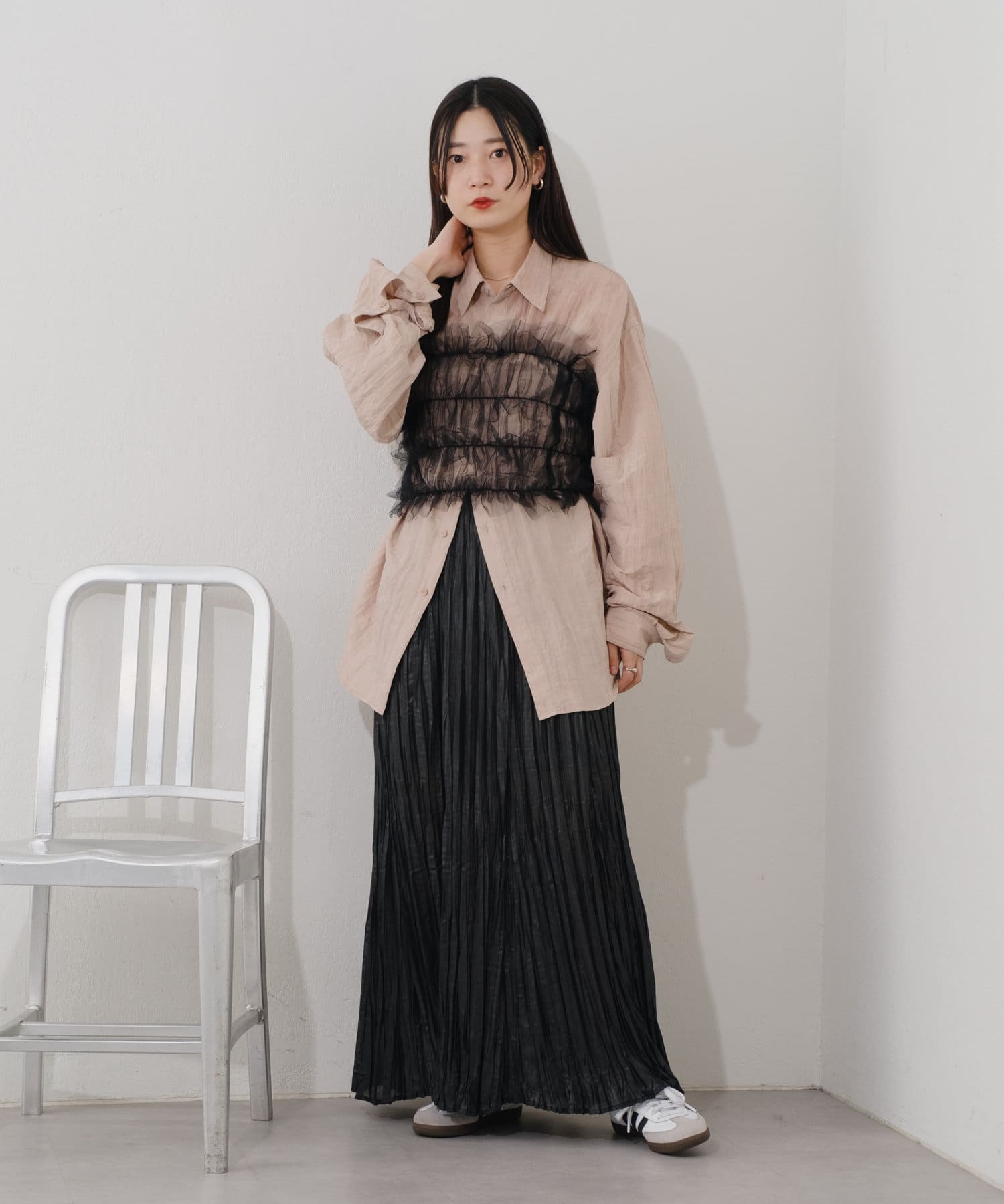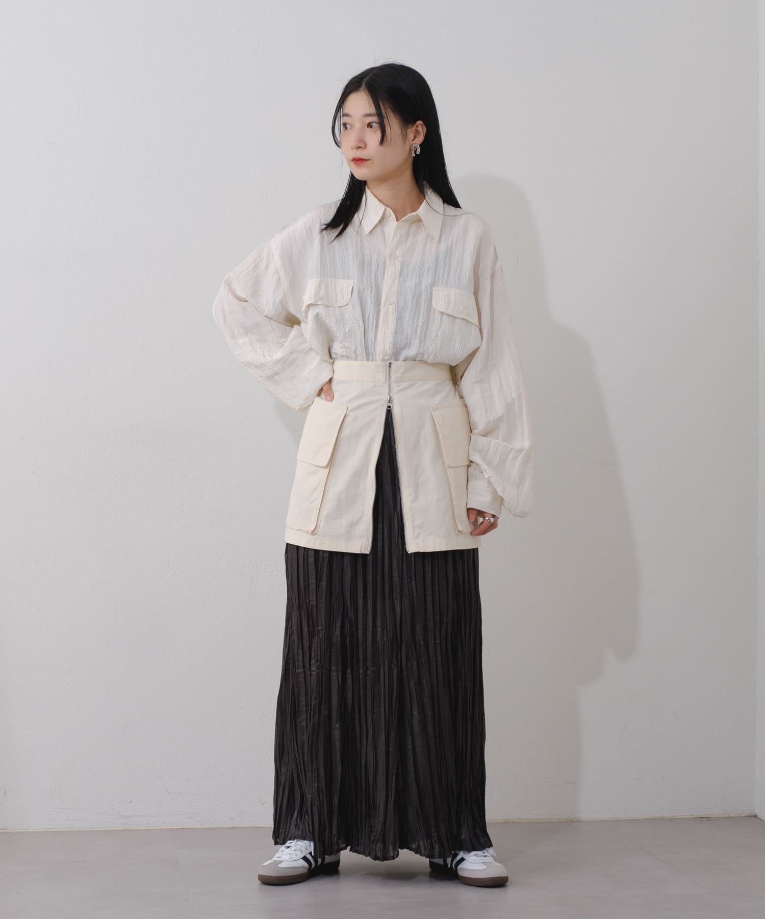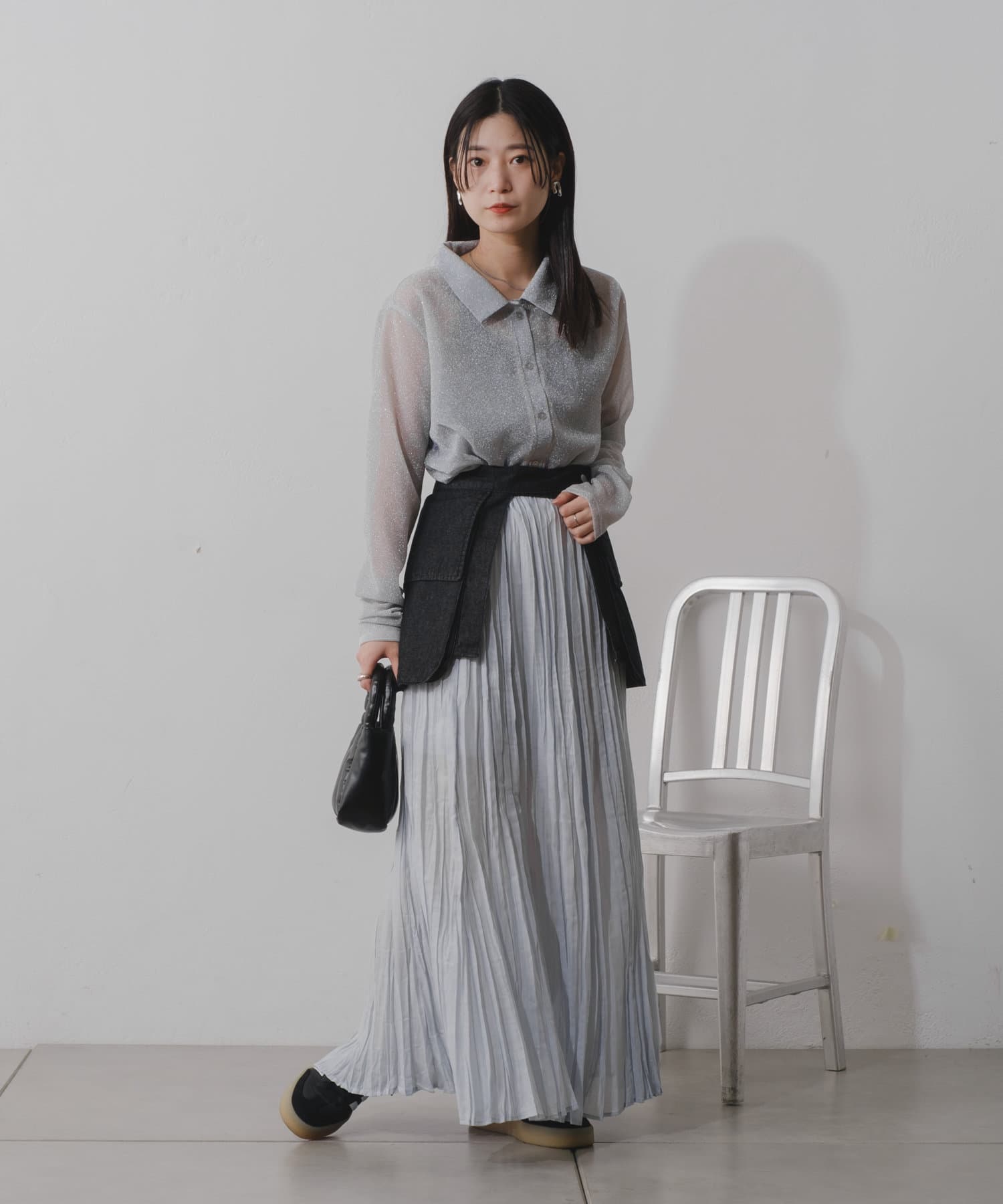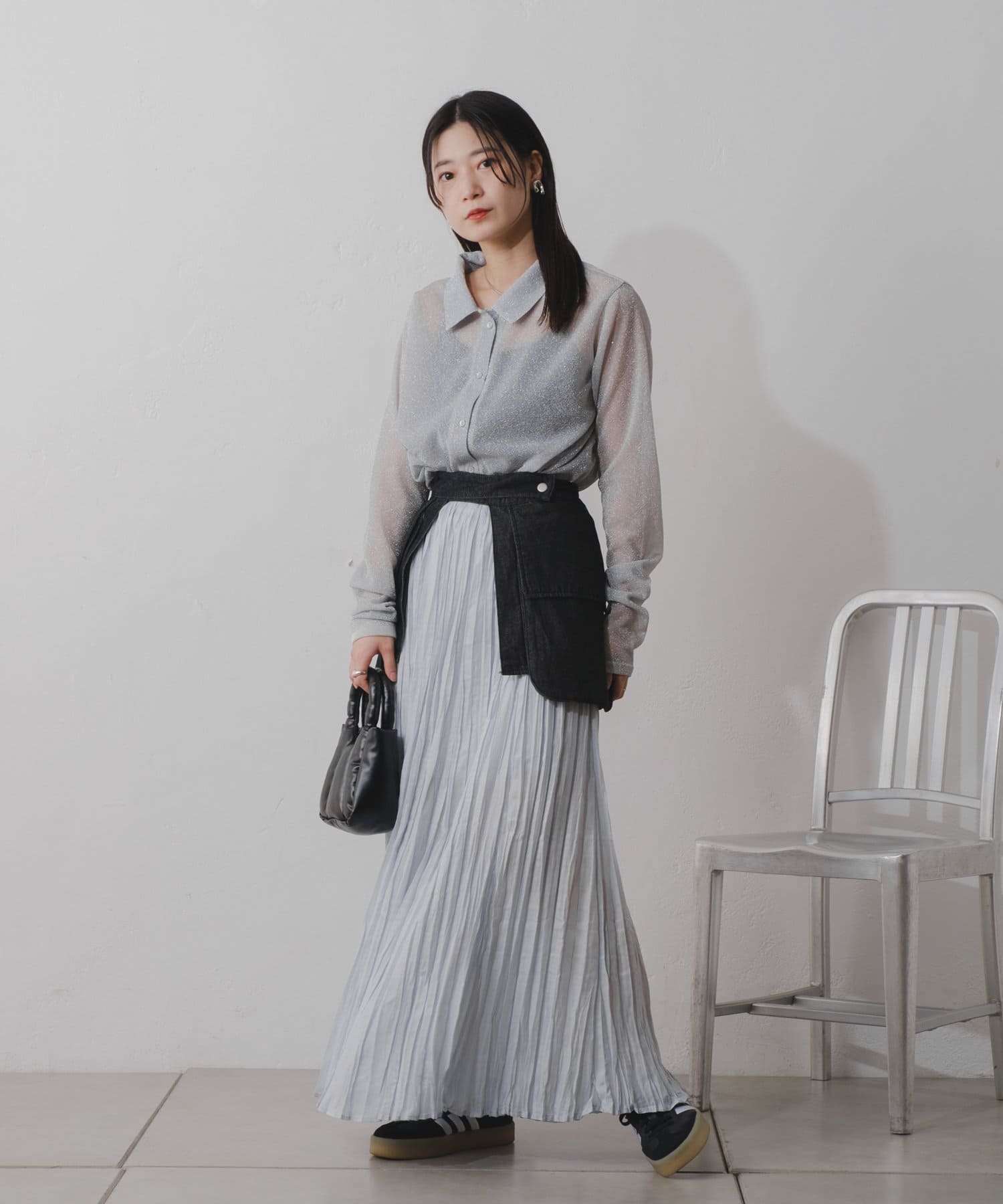 シアー感があり、涼し気かつ今年らしい印象になるアイテムです。
