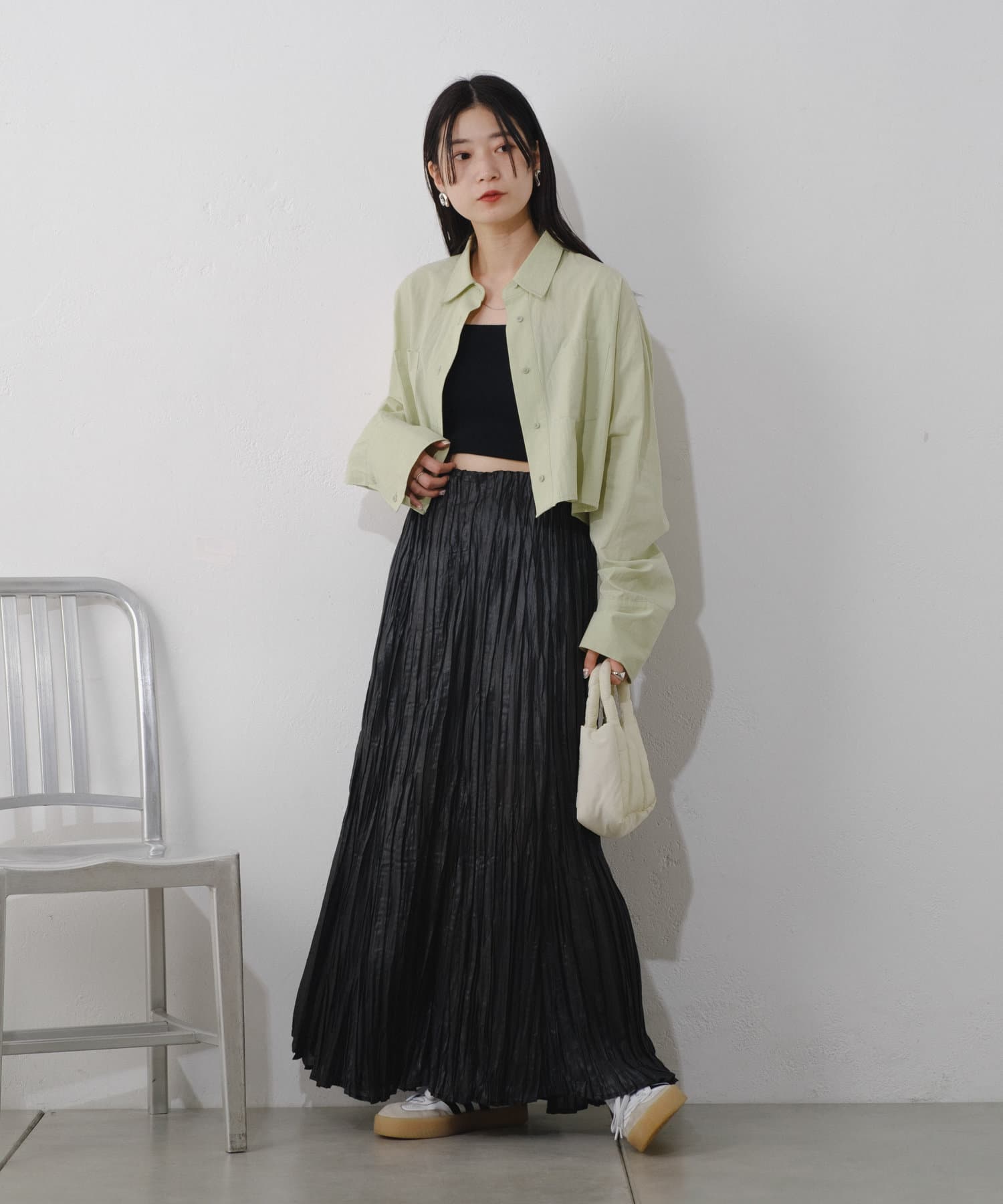 裏地付きなのでクロップド丈のトップスと合わせる際も安心でき、インナーに困りません。