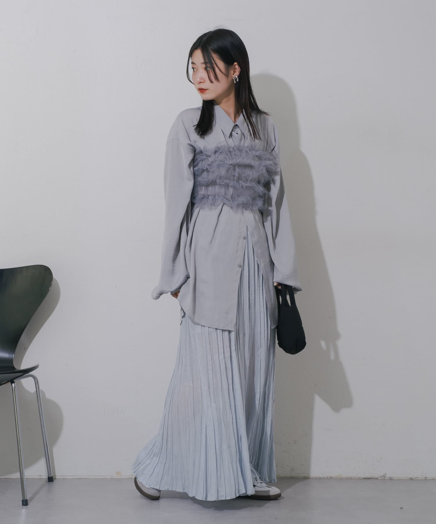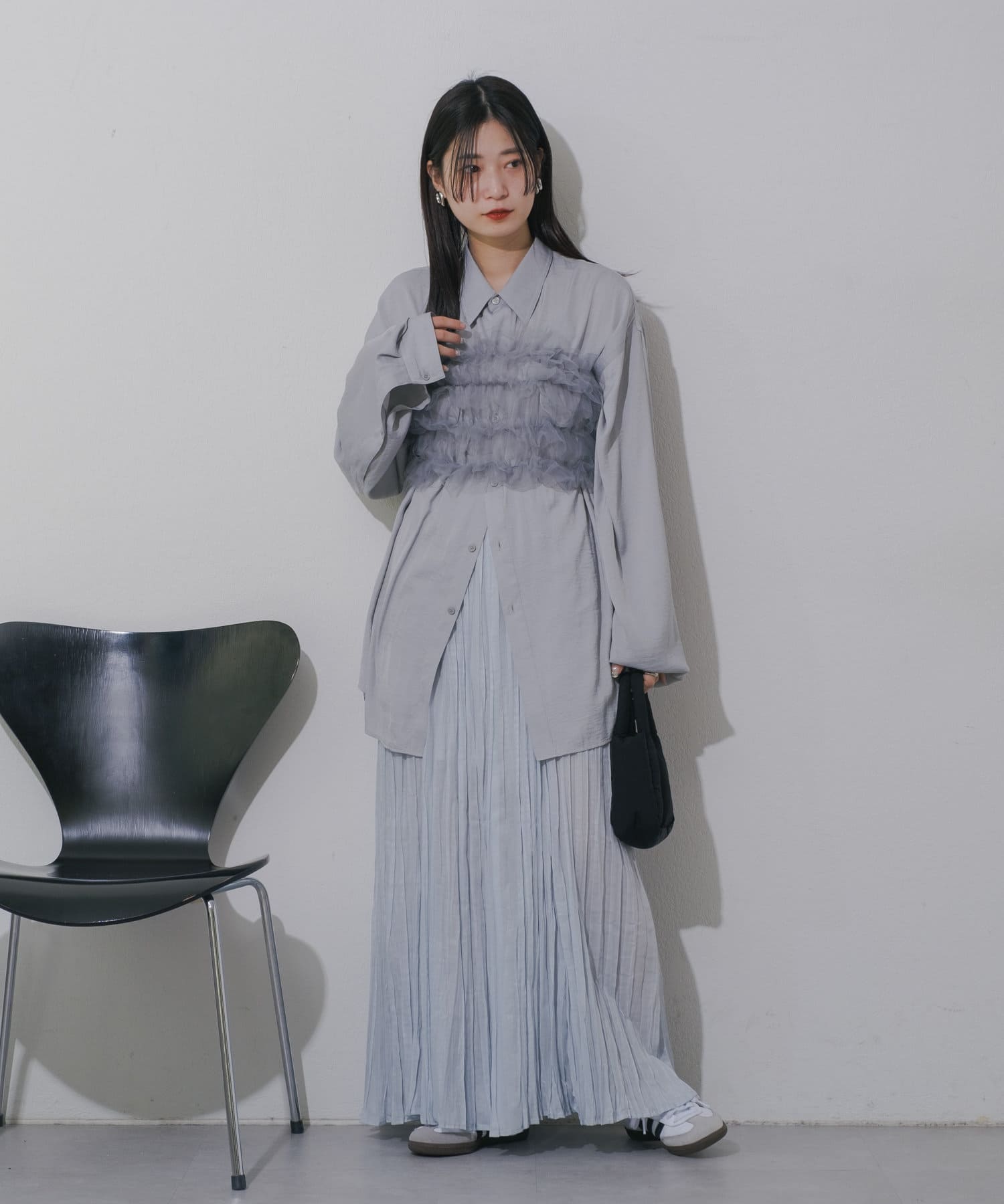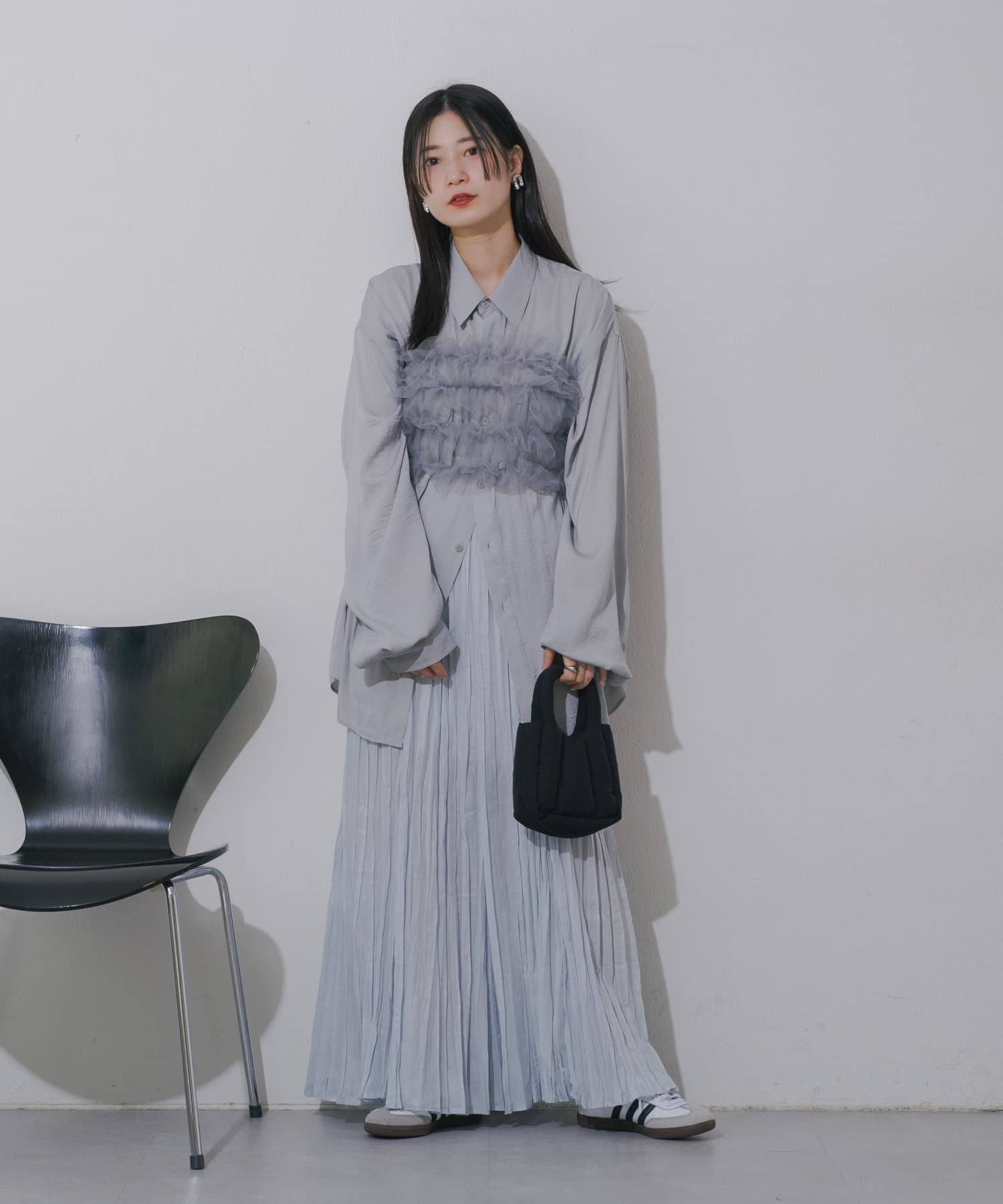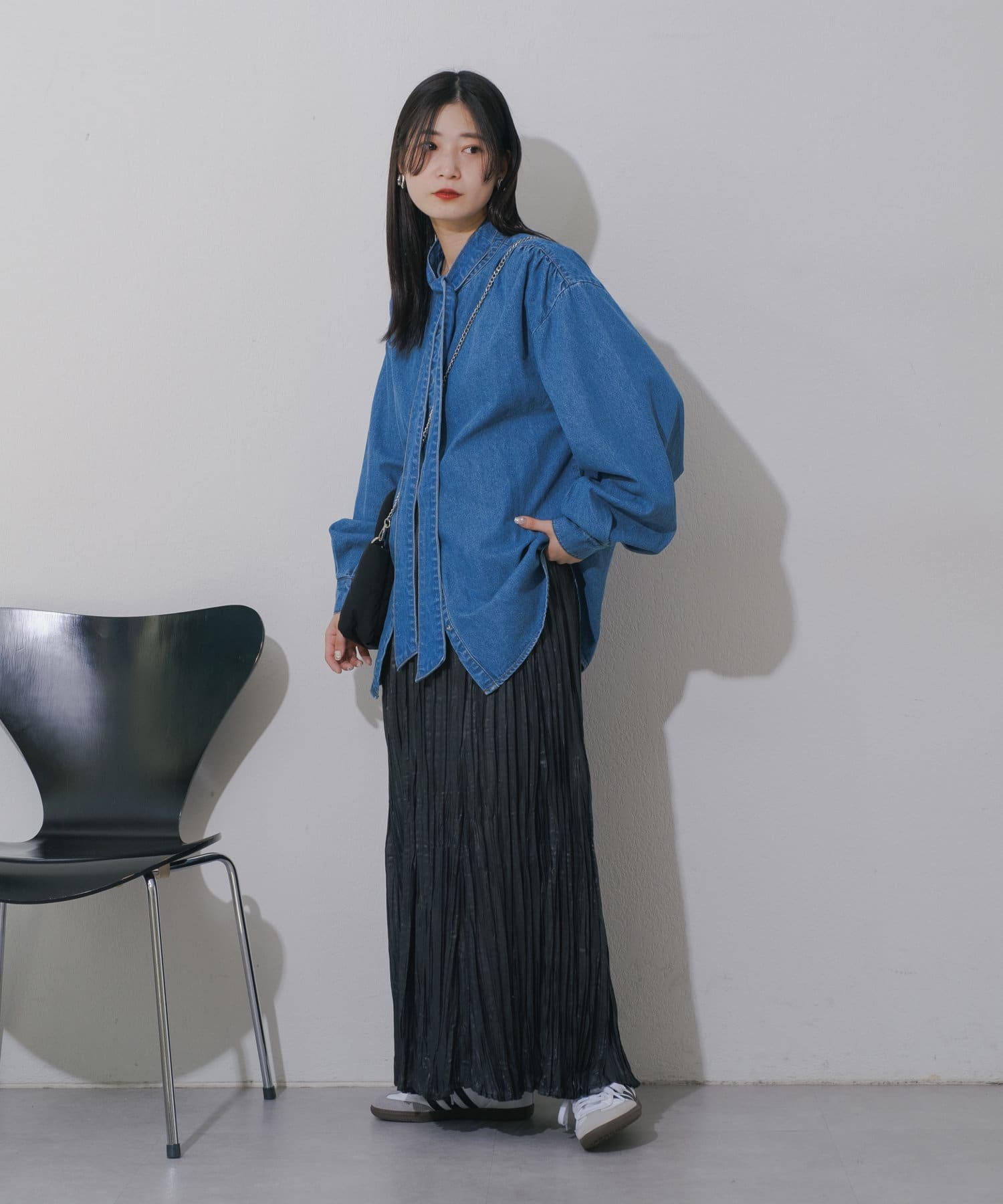 薄手のブラウスやシャツと合わせてゆるっとしたバランスで着ていただくのもオススメです。