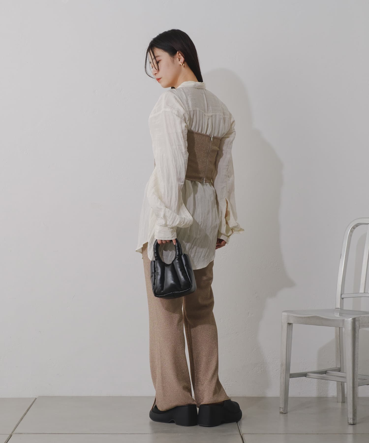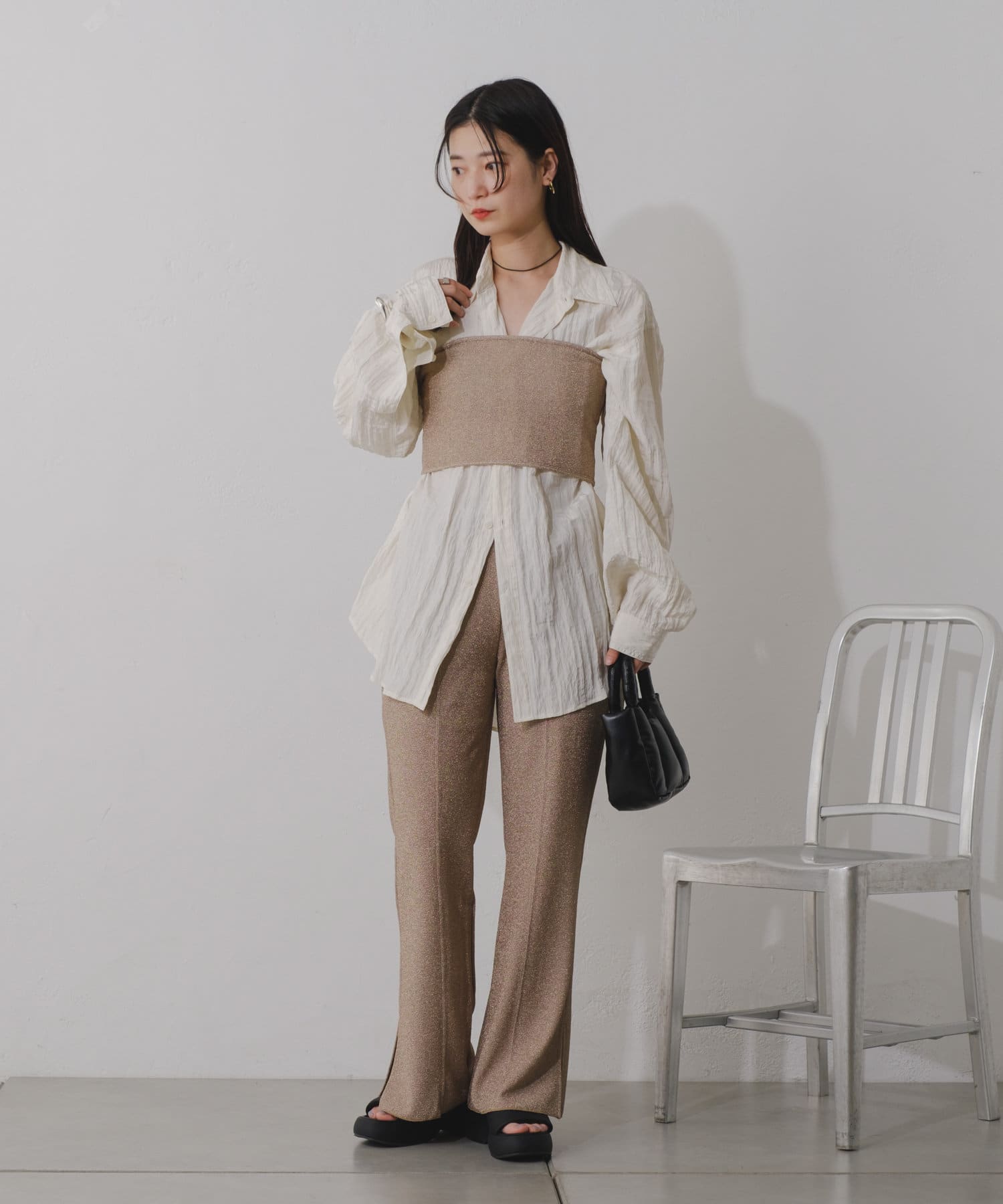 タック入りに加え、サイドにはスリットが入っており、抜け感を出すことのできる