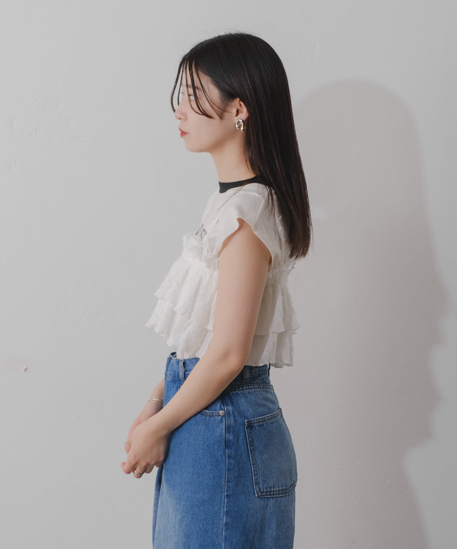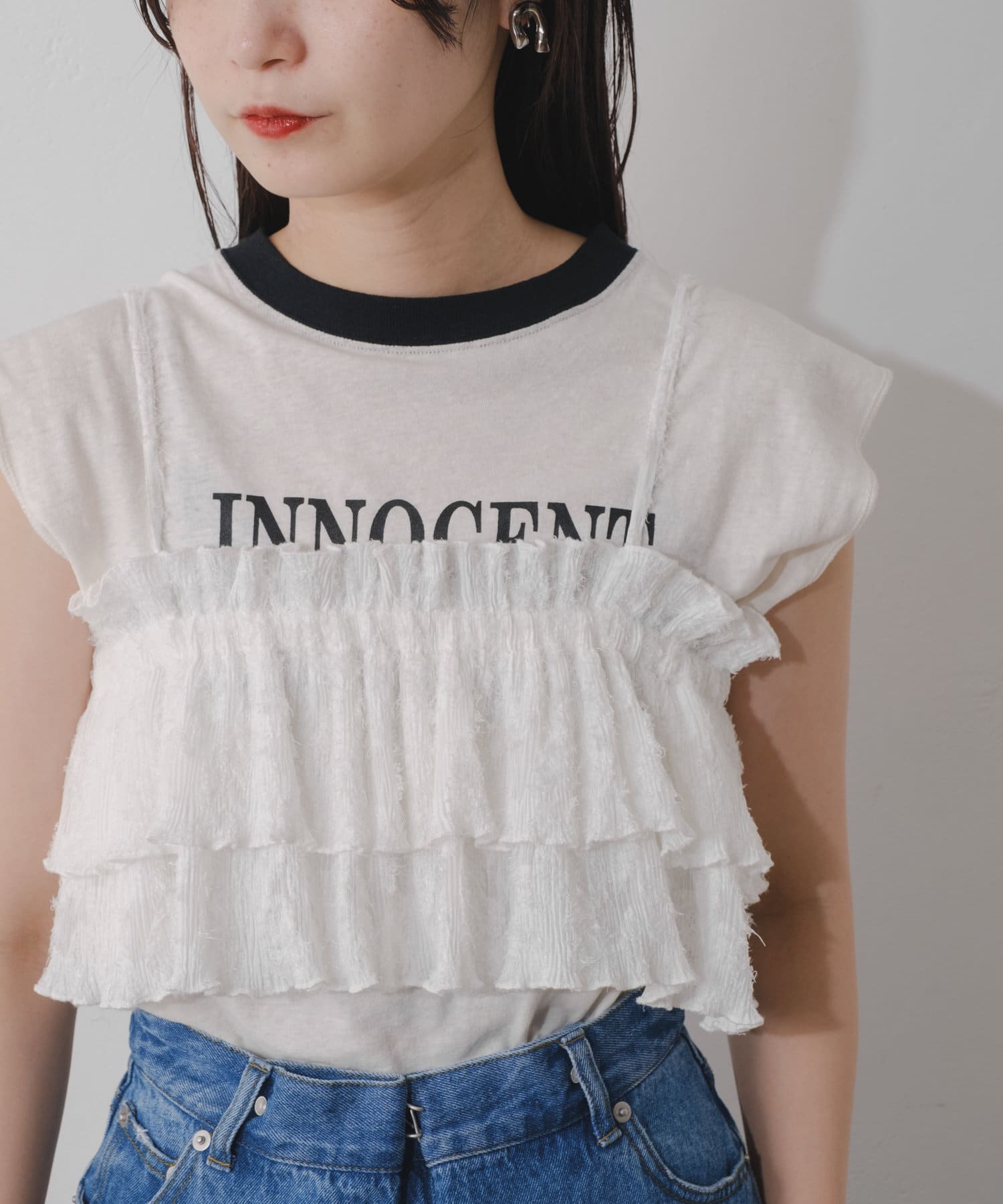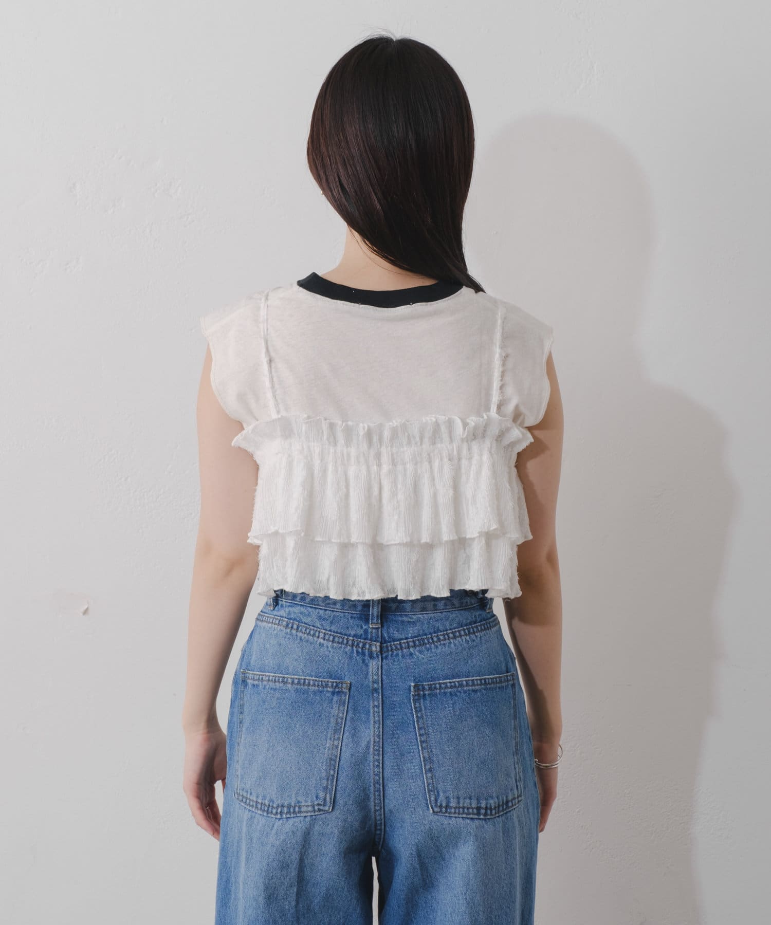 カジュアルに着られるフリルビスチェ
