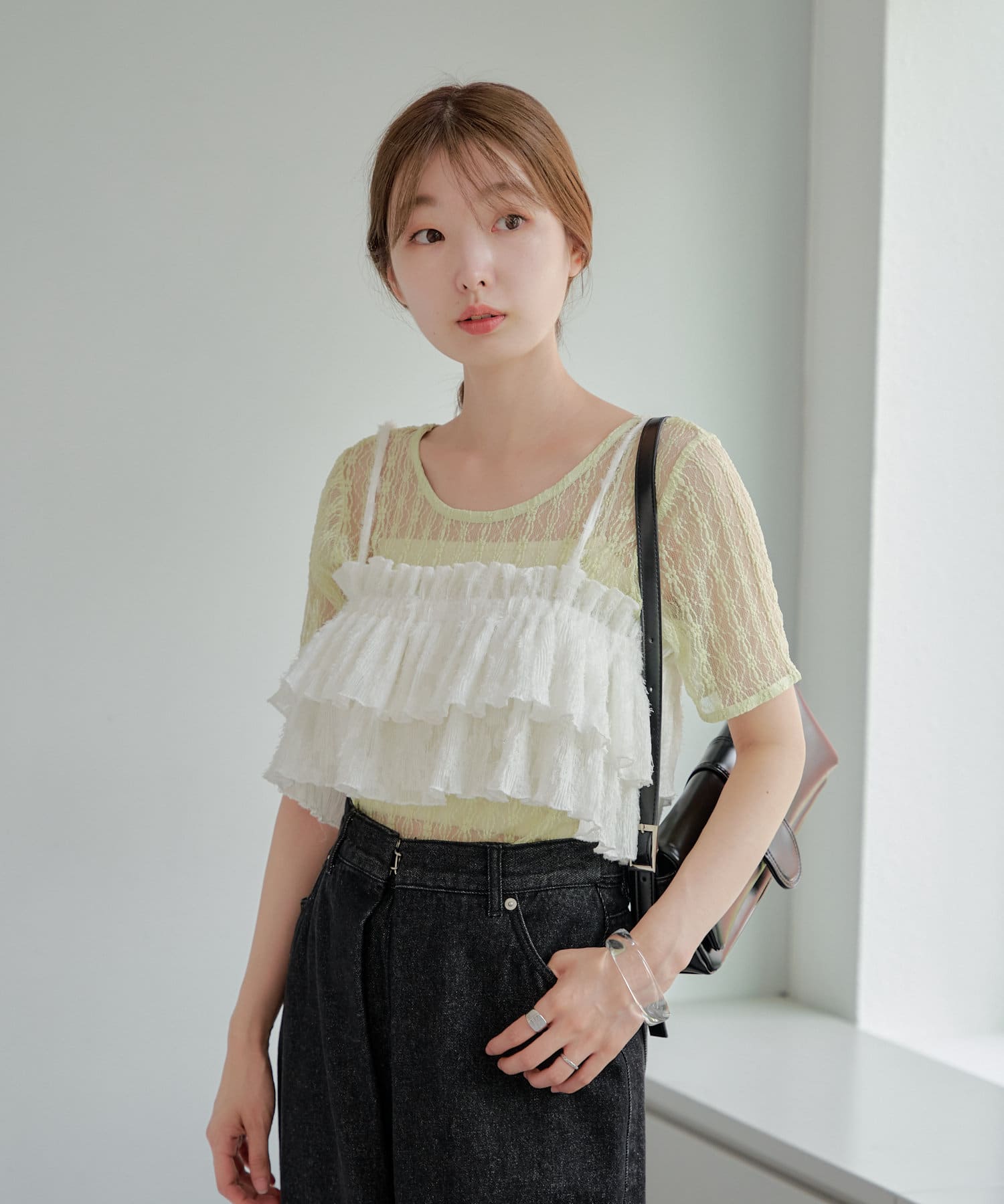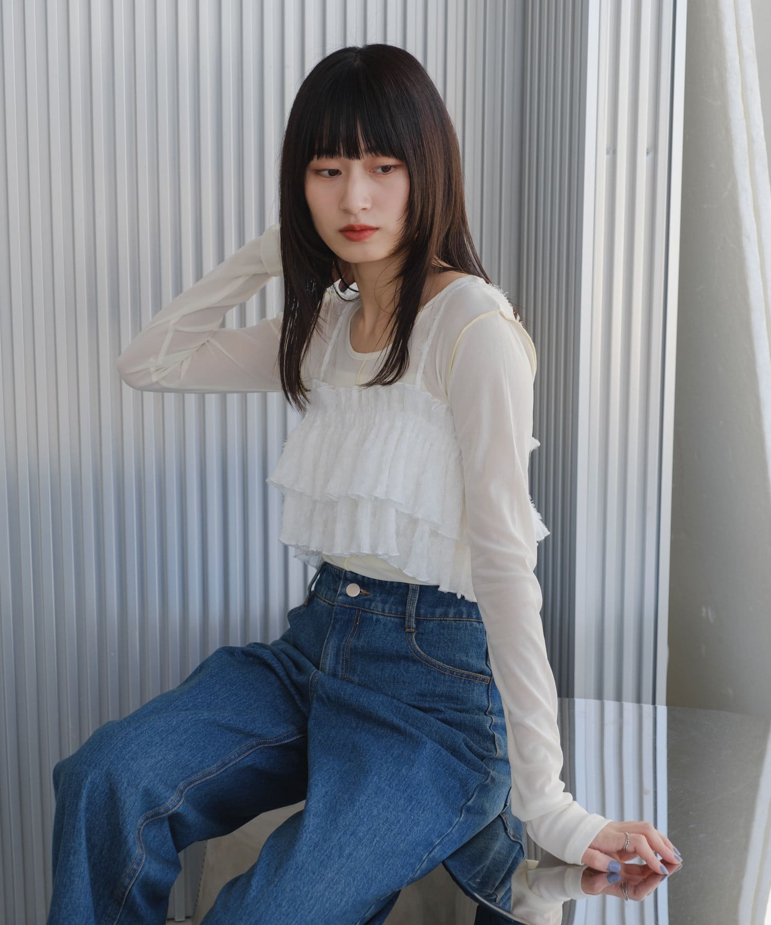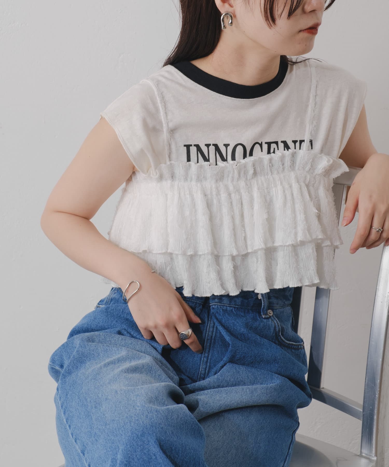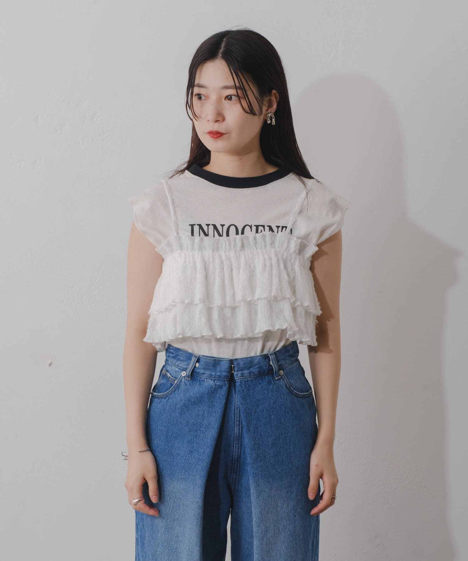カジュアルに着られるフリルビスチェ