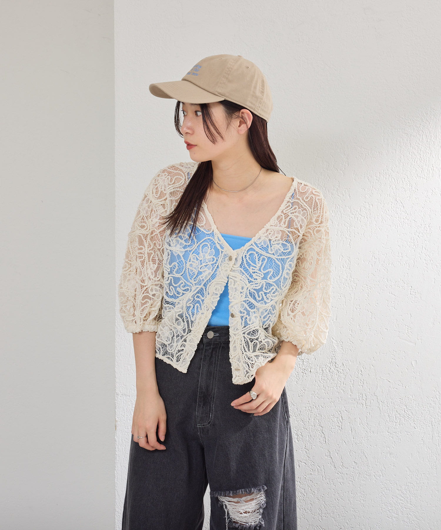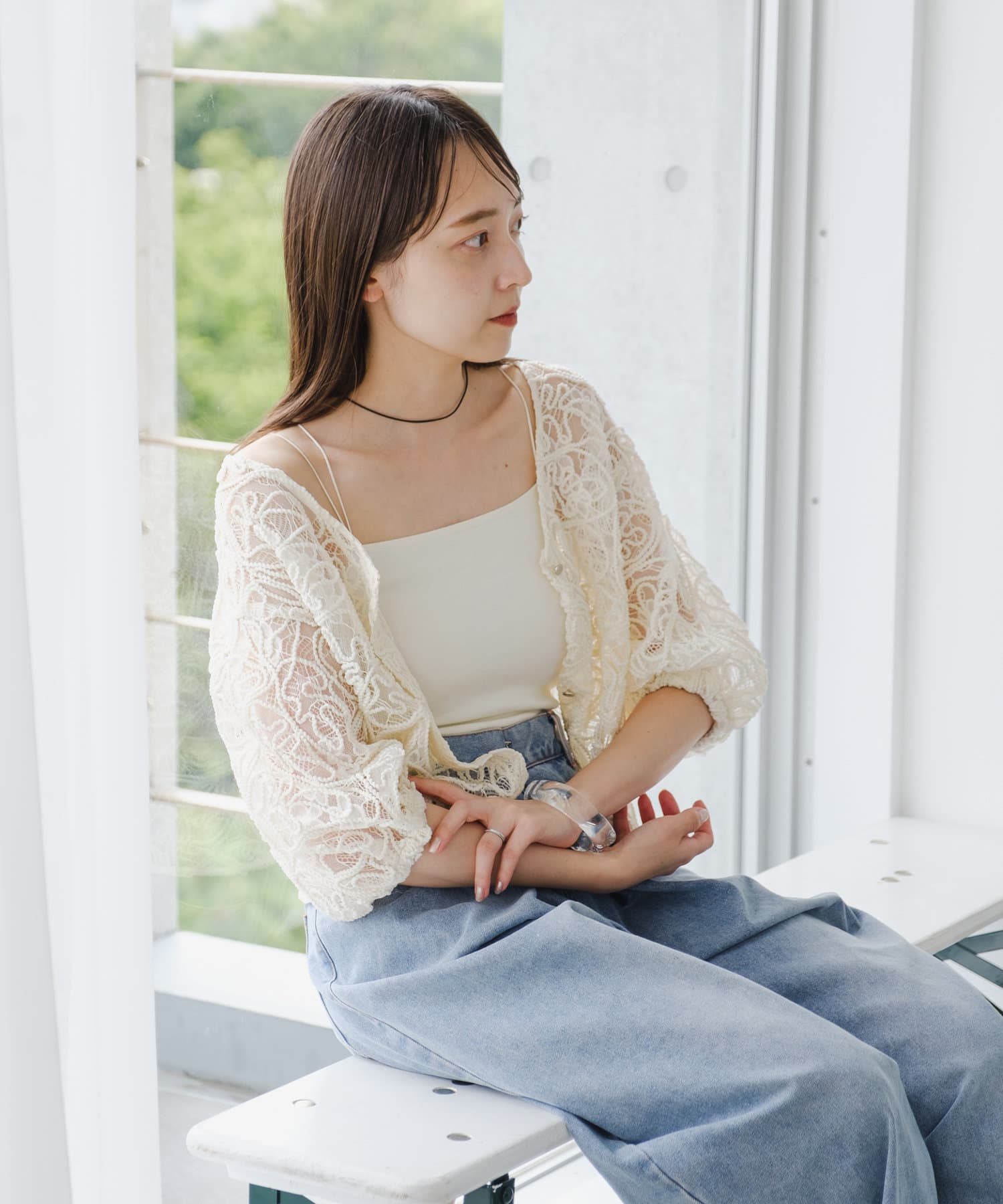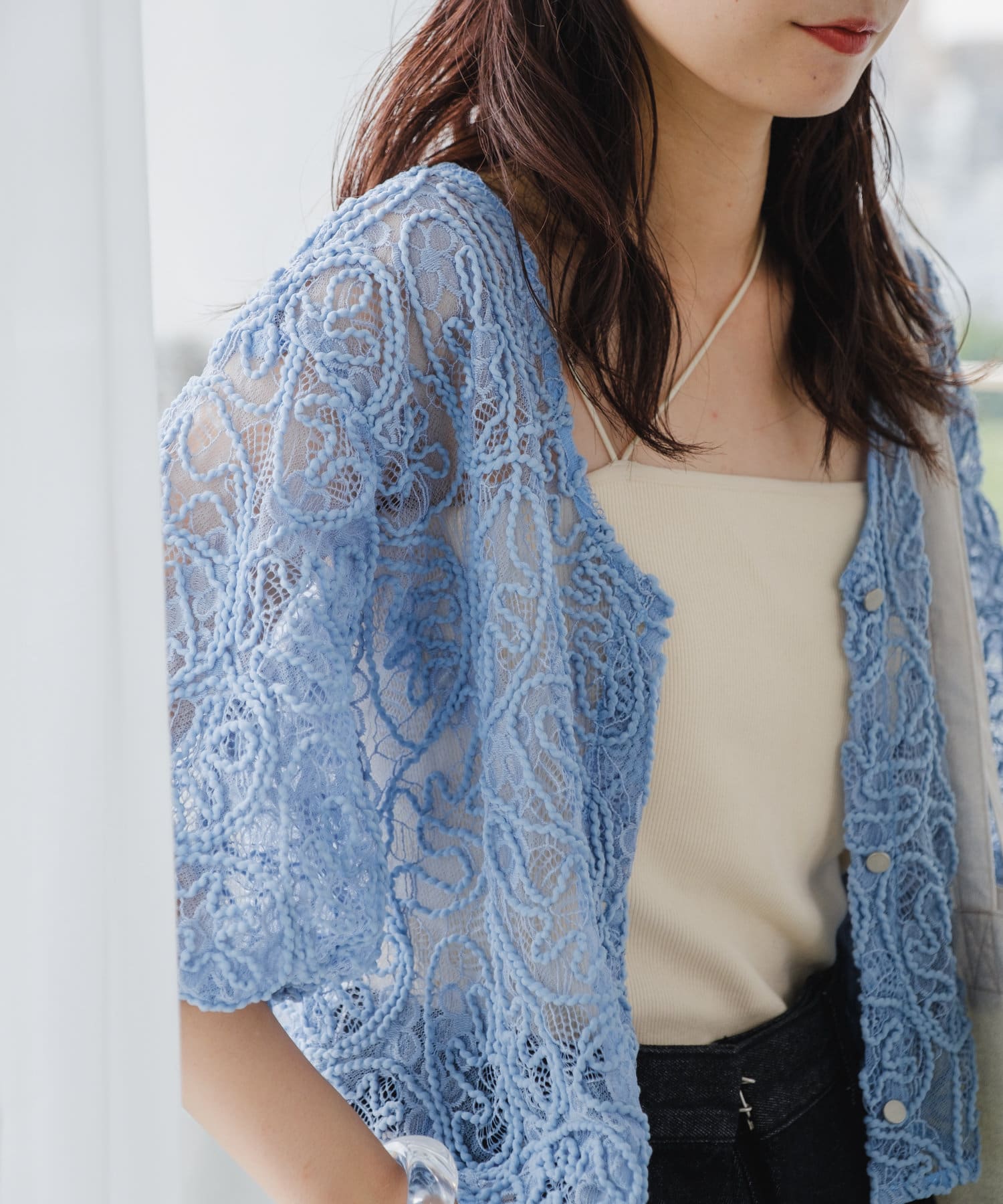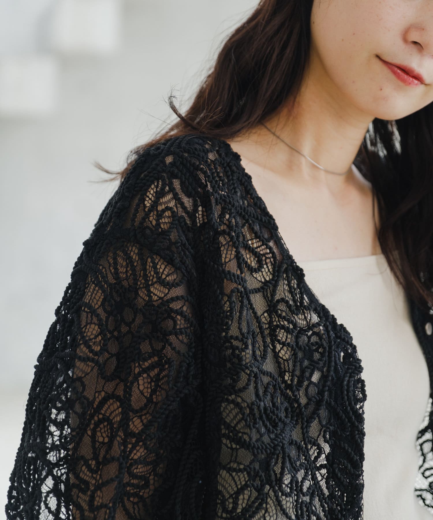 程よい透け感と、レースがとってもかわいいです!トップスとしてもカーディガンとしても使えるのでいろいろ着回しできます。
