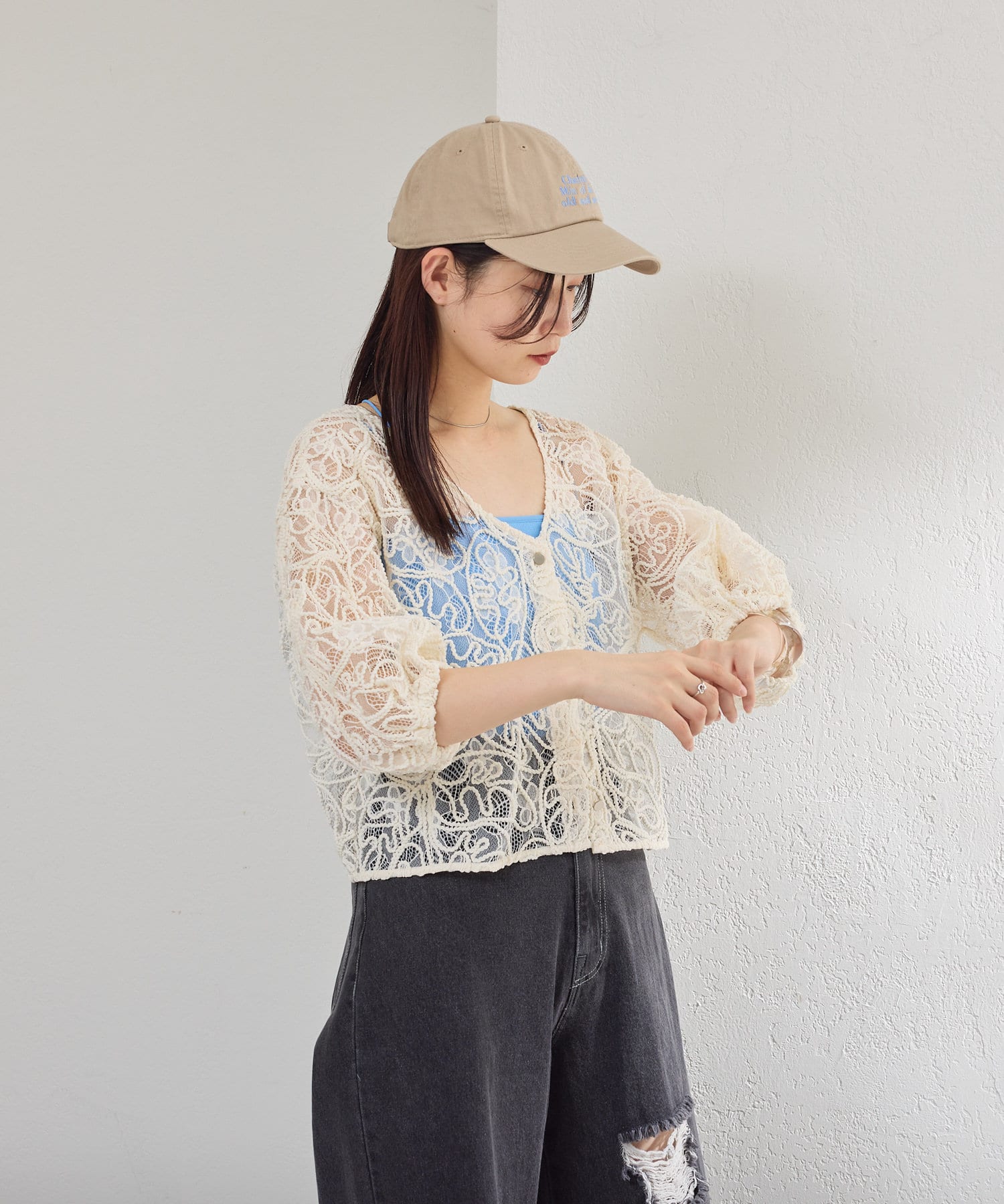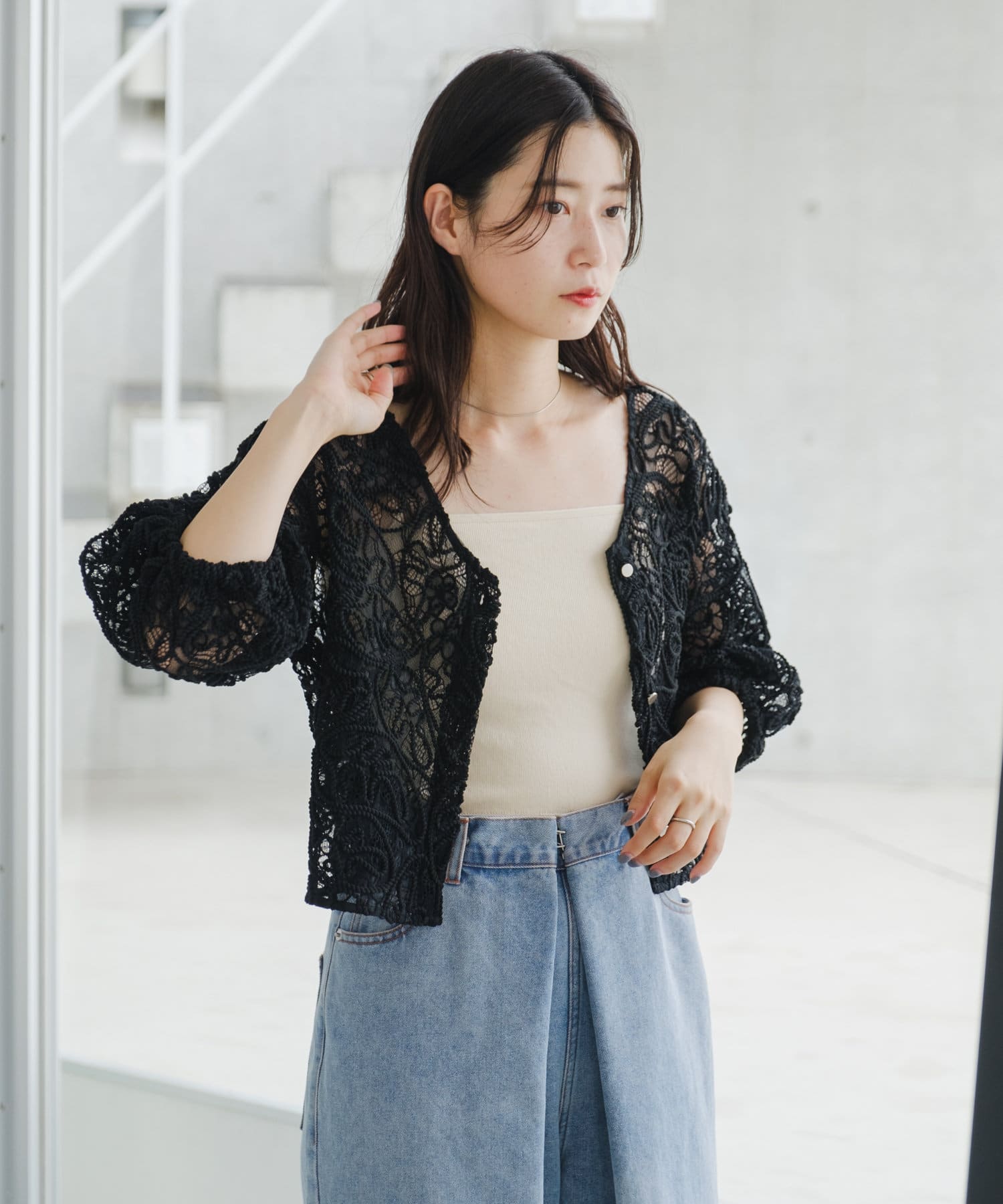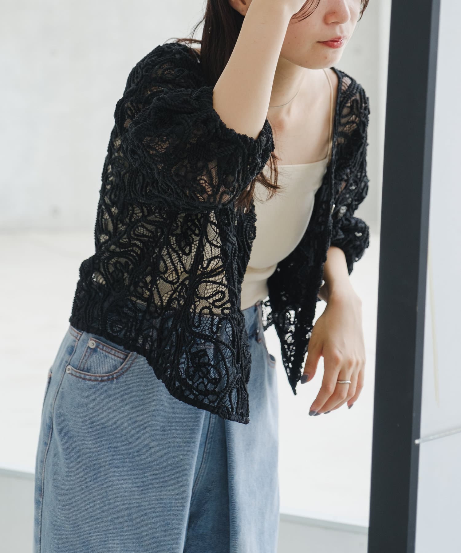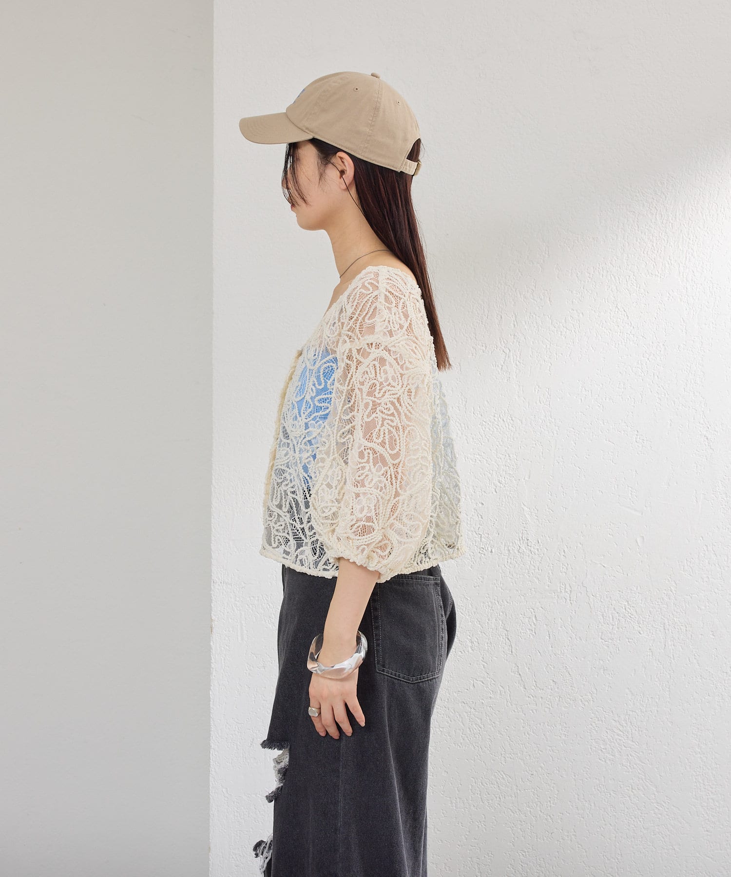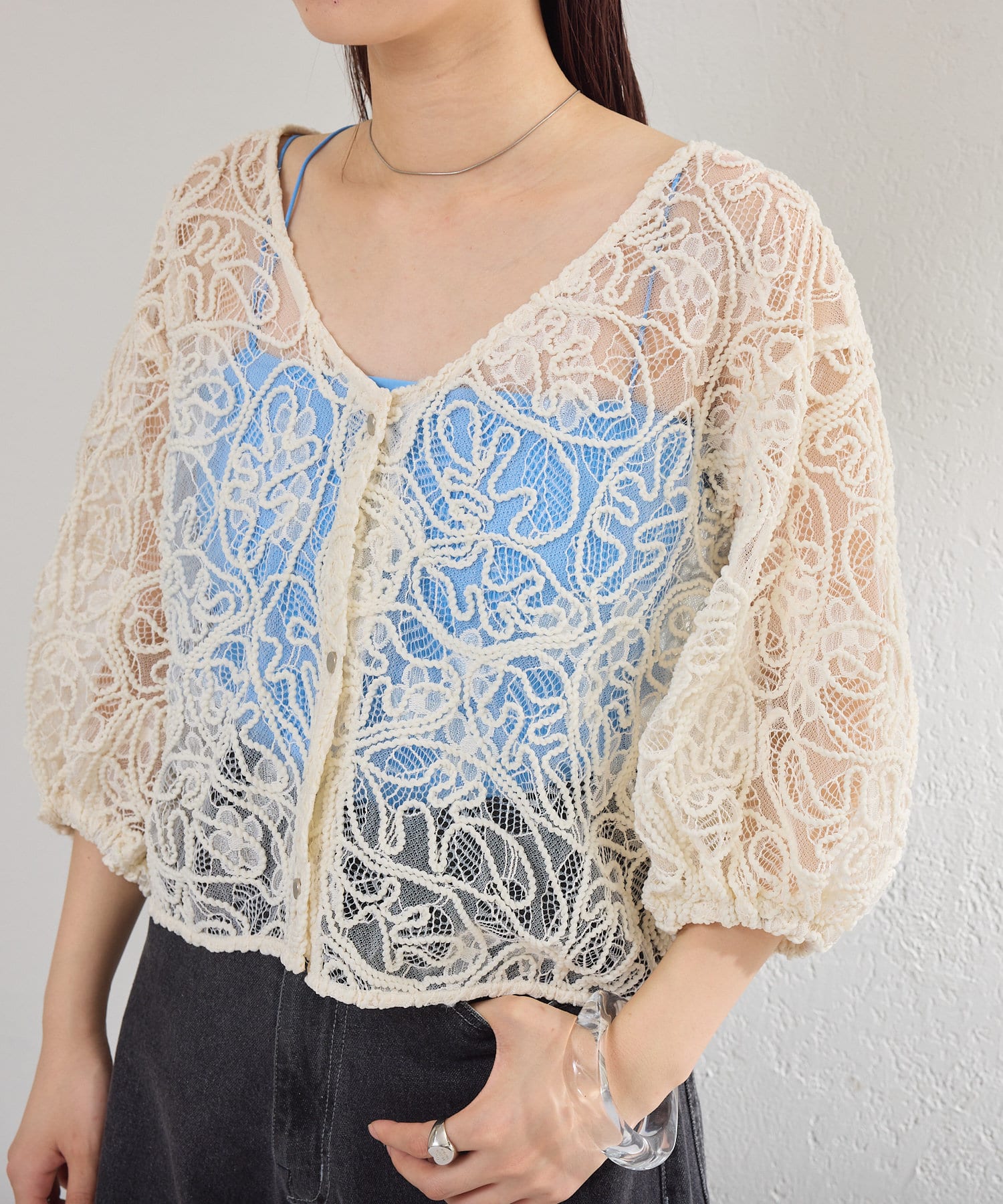 程よい透け感と、レースがとってもかわいいです!トップスとしてもカーディガンとしても使えるのでいろいろ着回しできます。