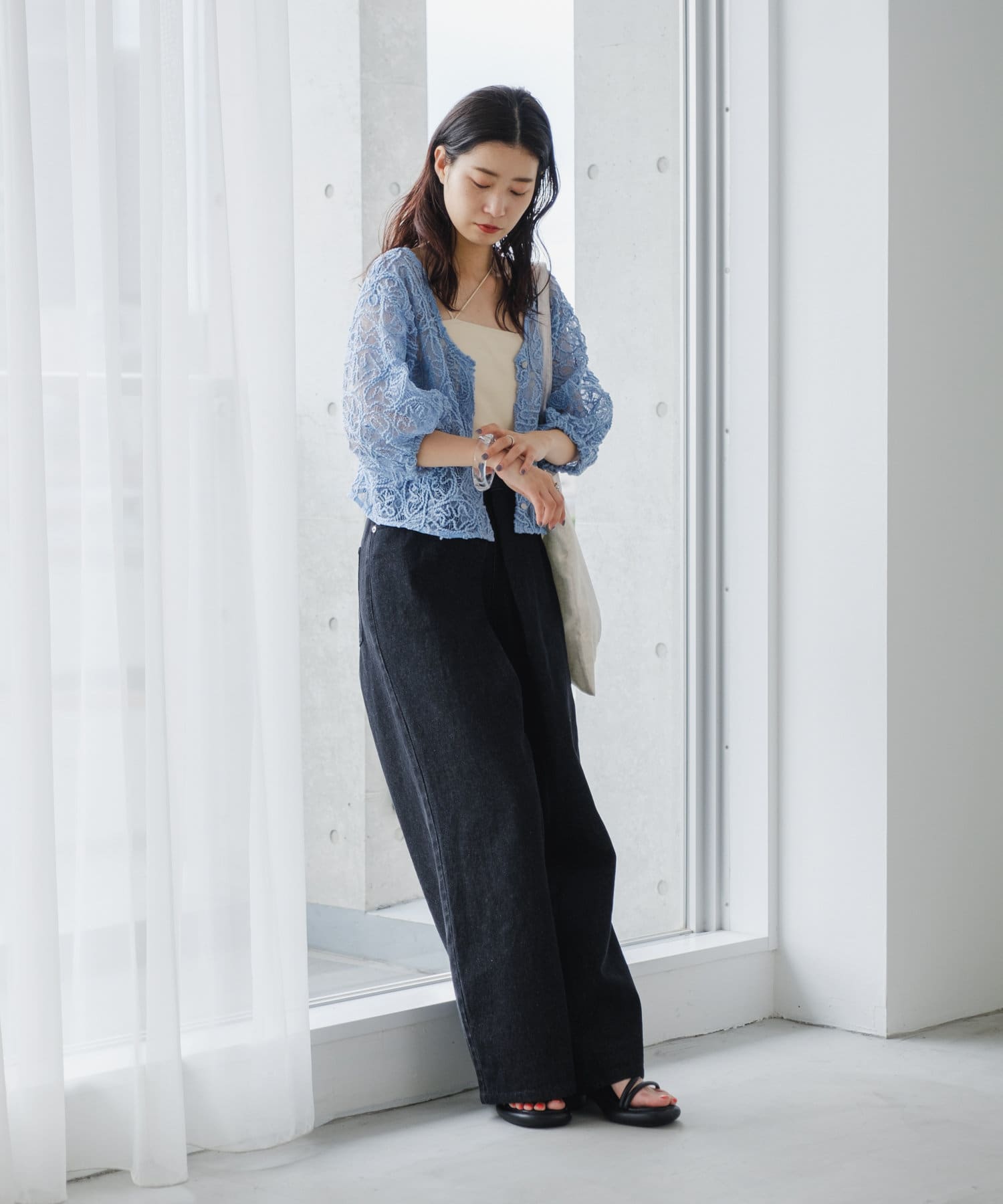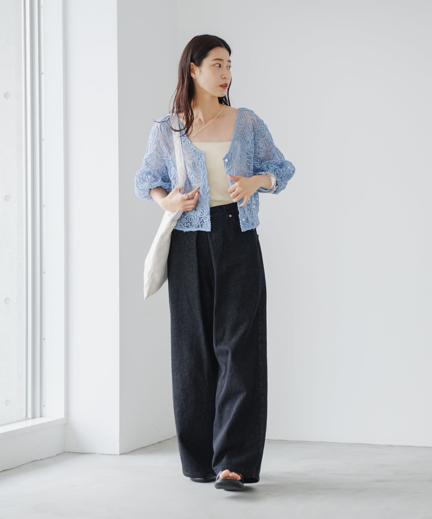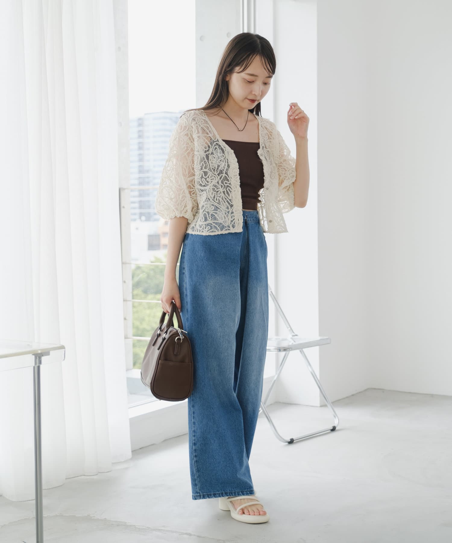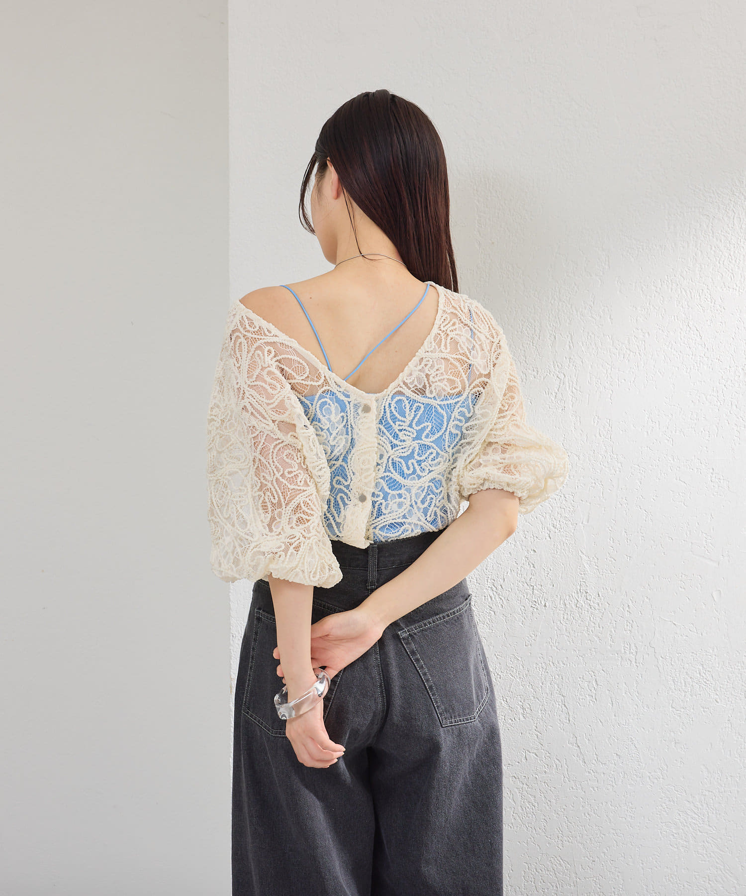 程よい透け感と、レースがとってもかわいいです!トップスとしてもカーディガンとしても使えるのでいろいろ着回しできます。