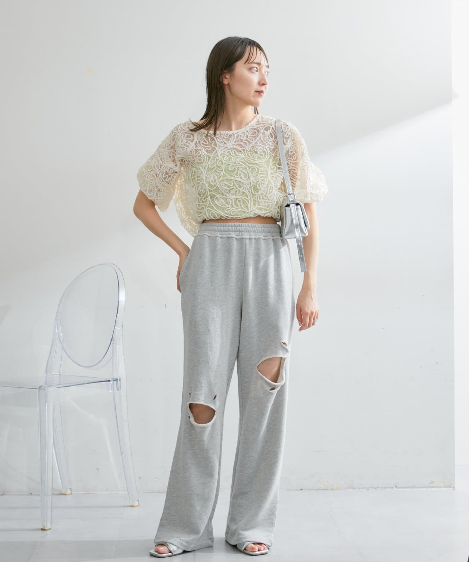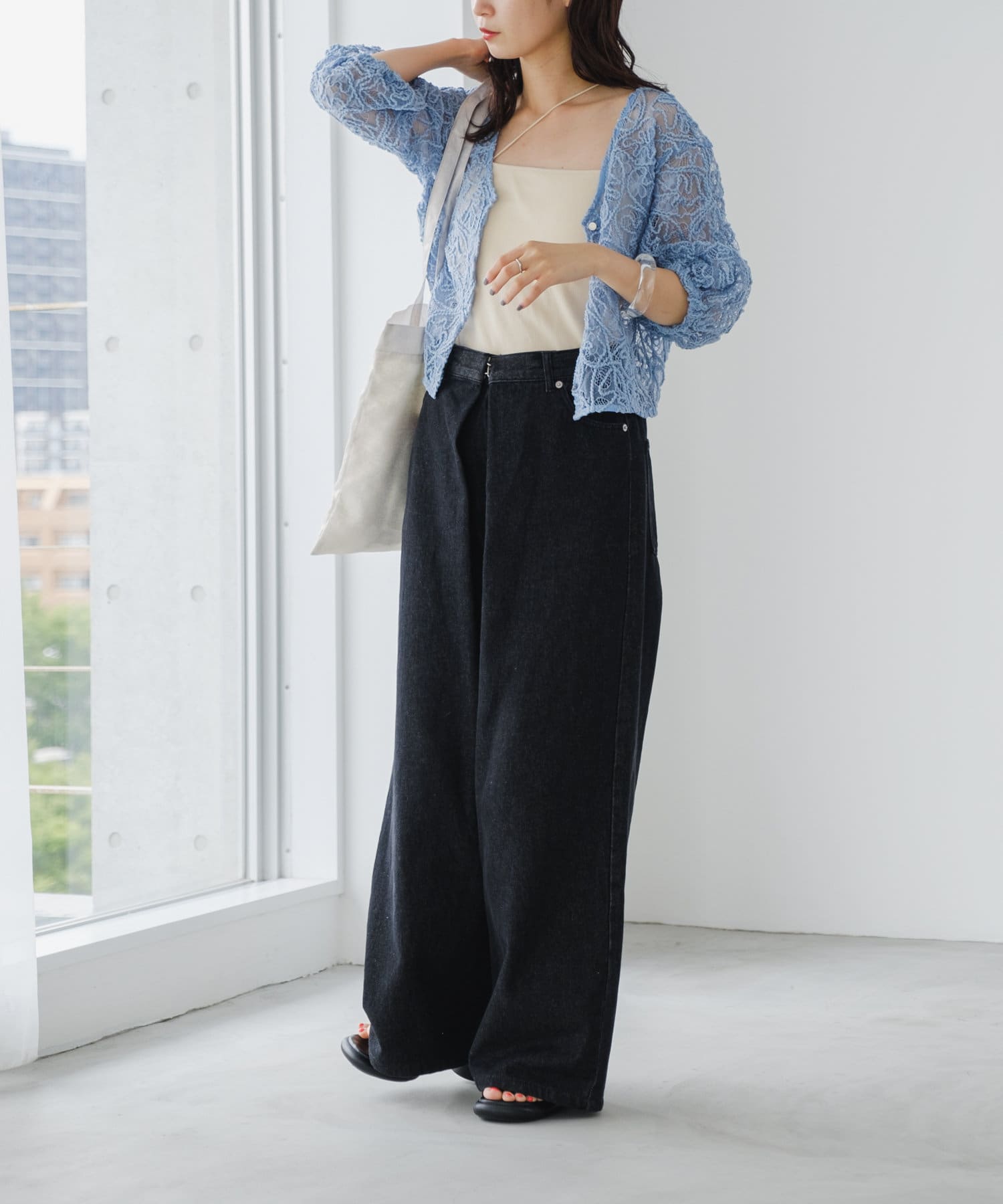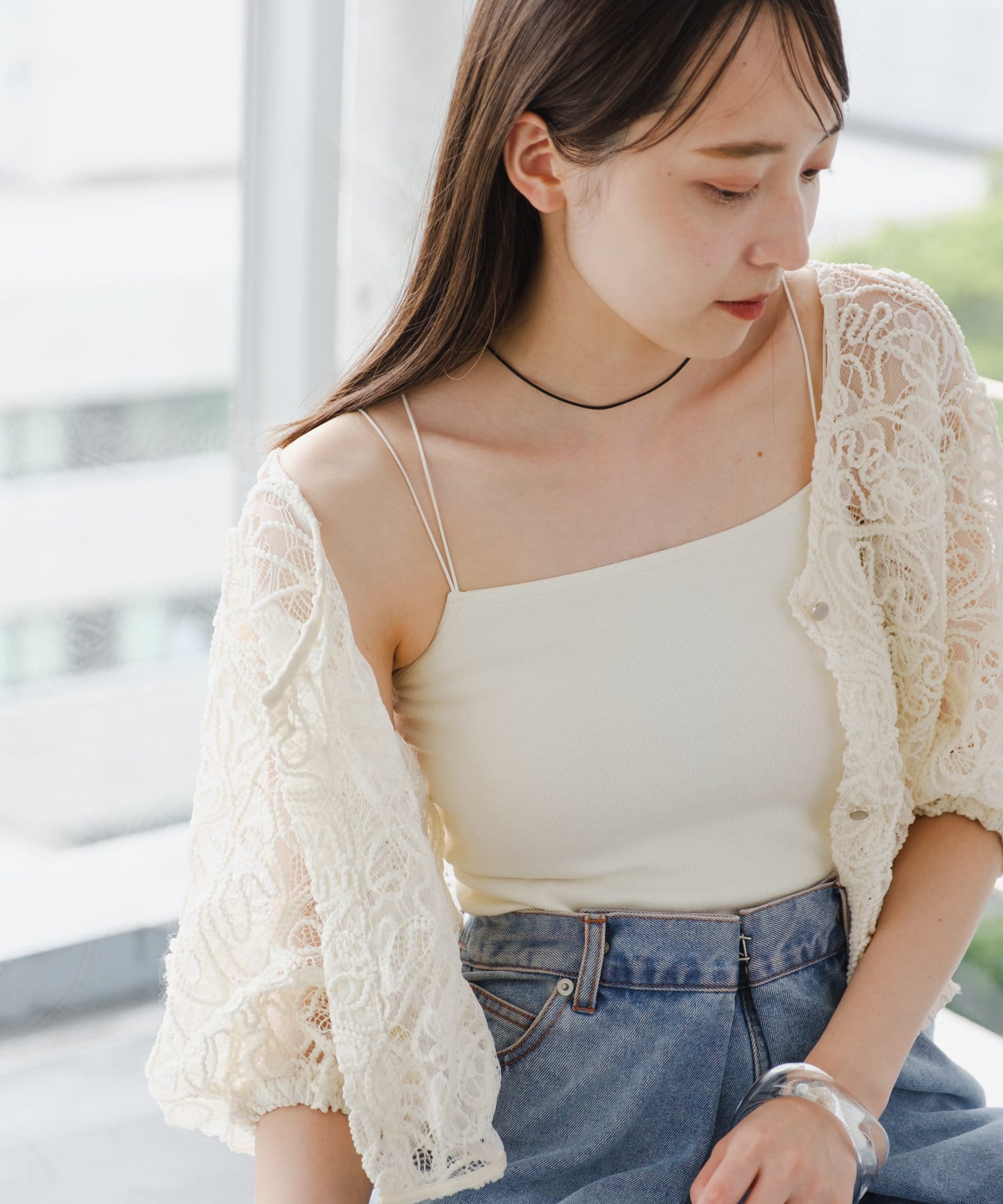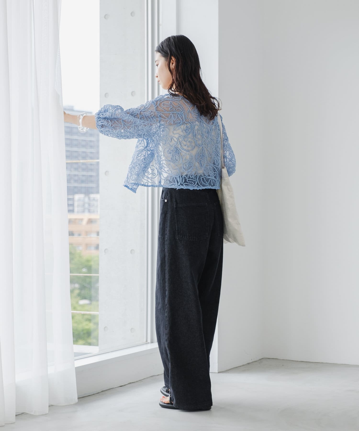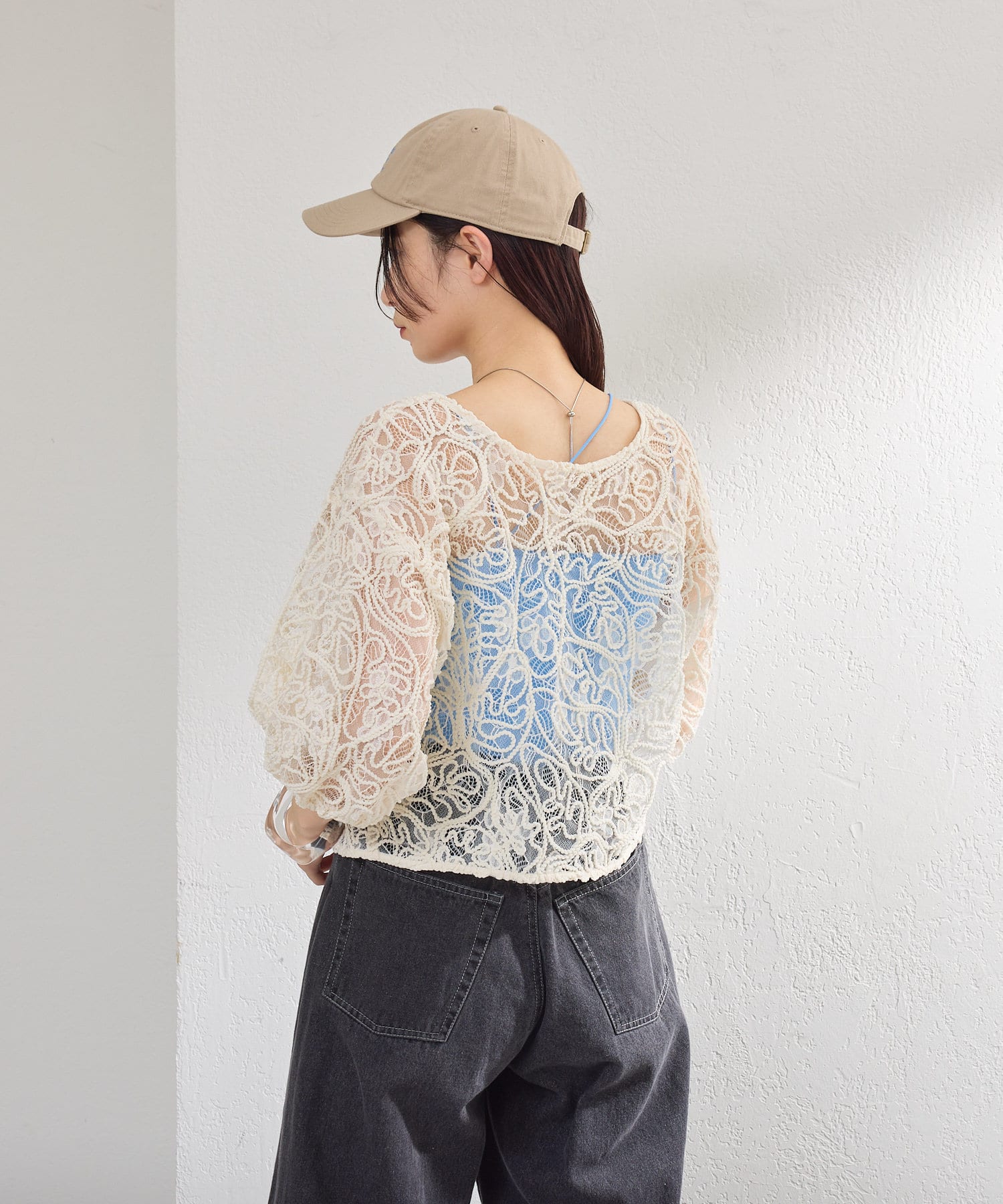 程よい透け感と、レースがとってもかわいいです!トップスとしてもカーディガンとしても使えるのでいろいろ着回しできます。