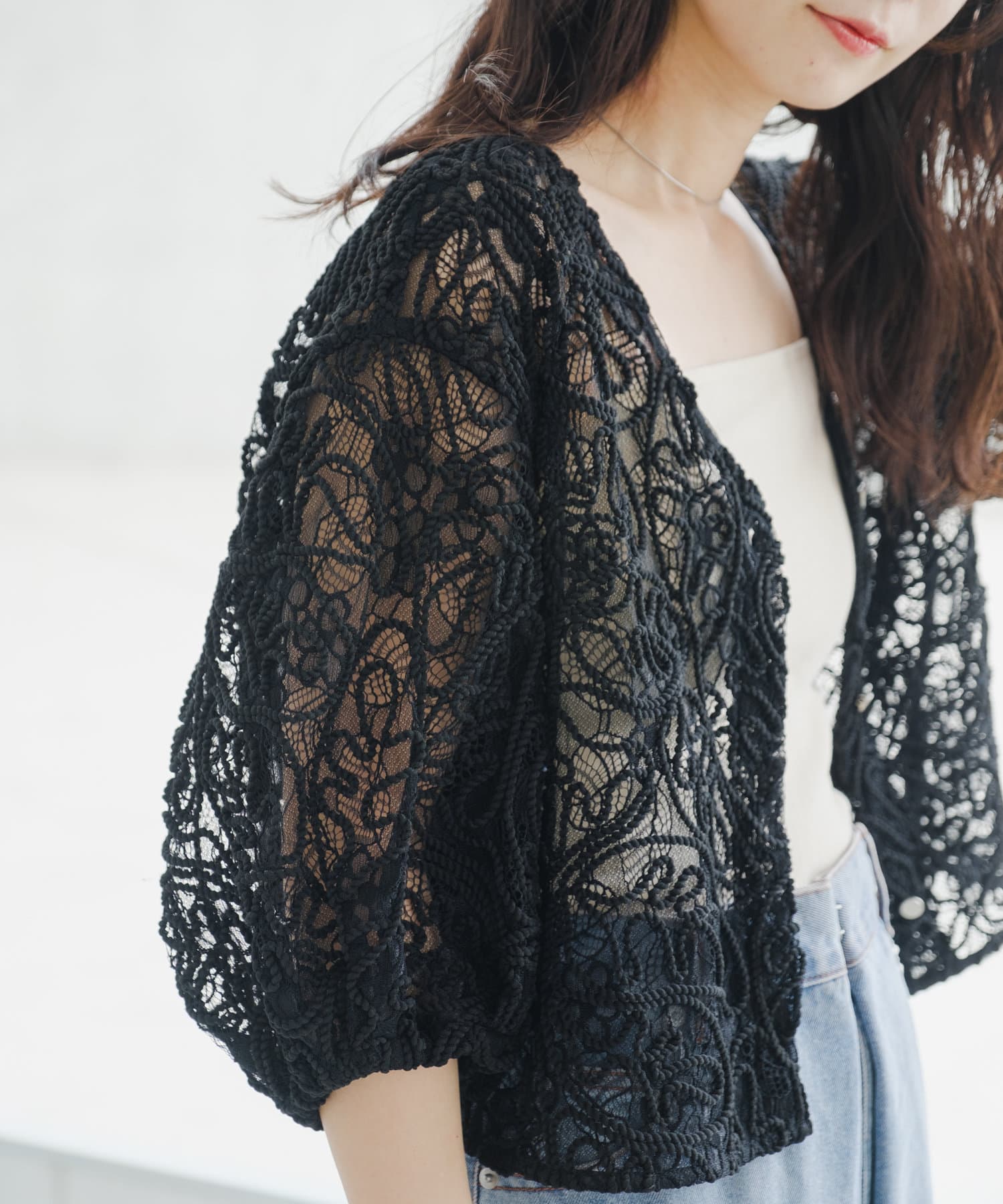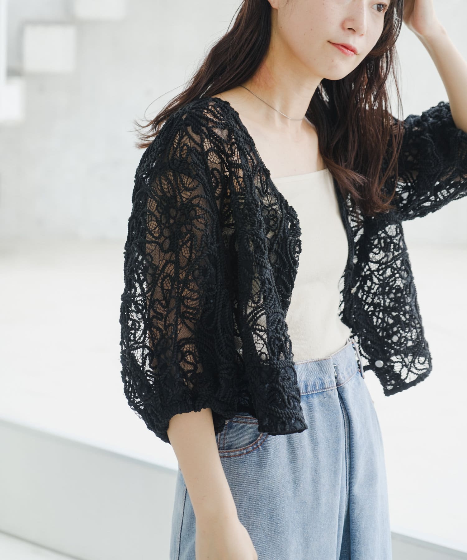 【新色追加/前後2WAY】シアーレース5分袖カーディガン