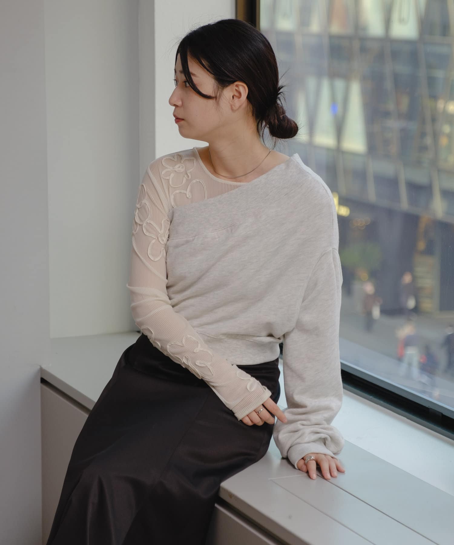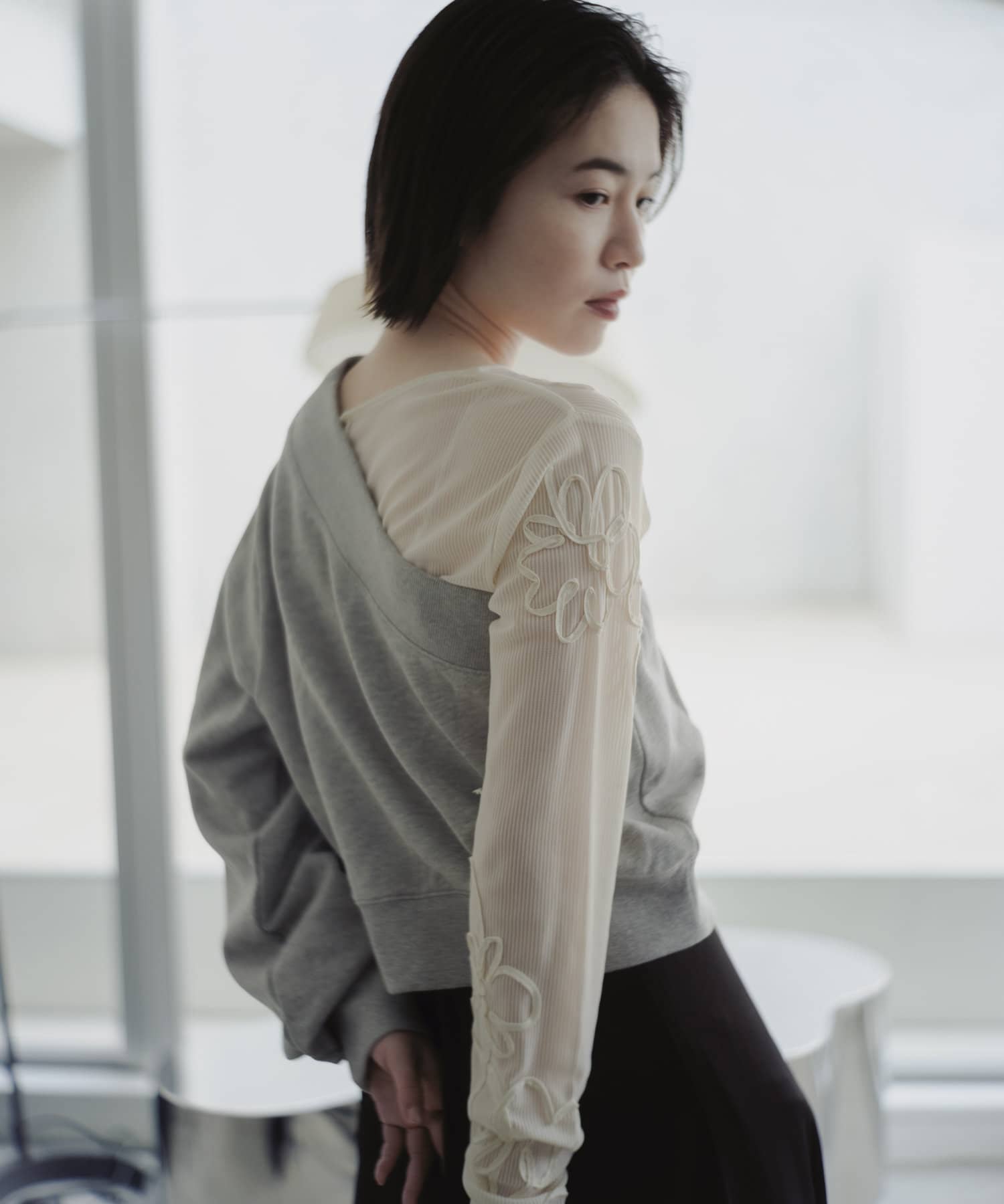 袖のリブが長めなので、スウェットでもすっきり見せして着ていただけます。