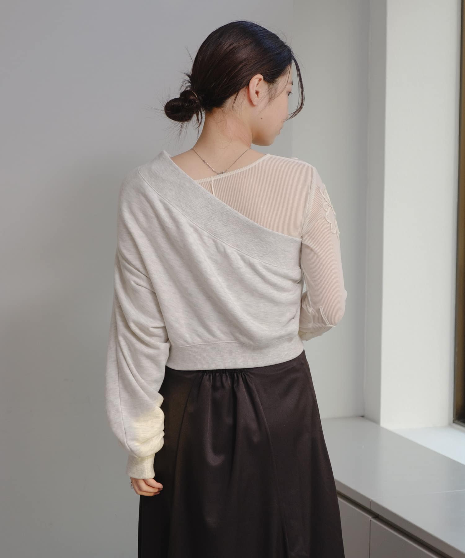 カラーや柄のインナーを中に合わせたりすると肩の露出がなくなるので着回ししやすいです。