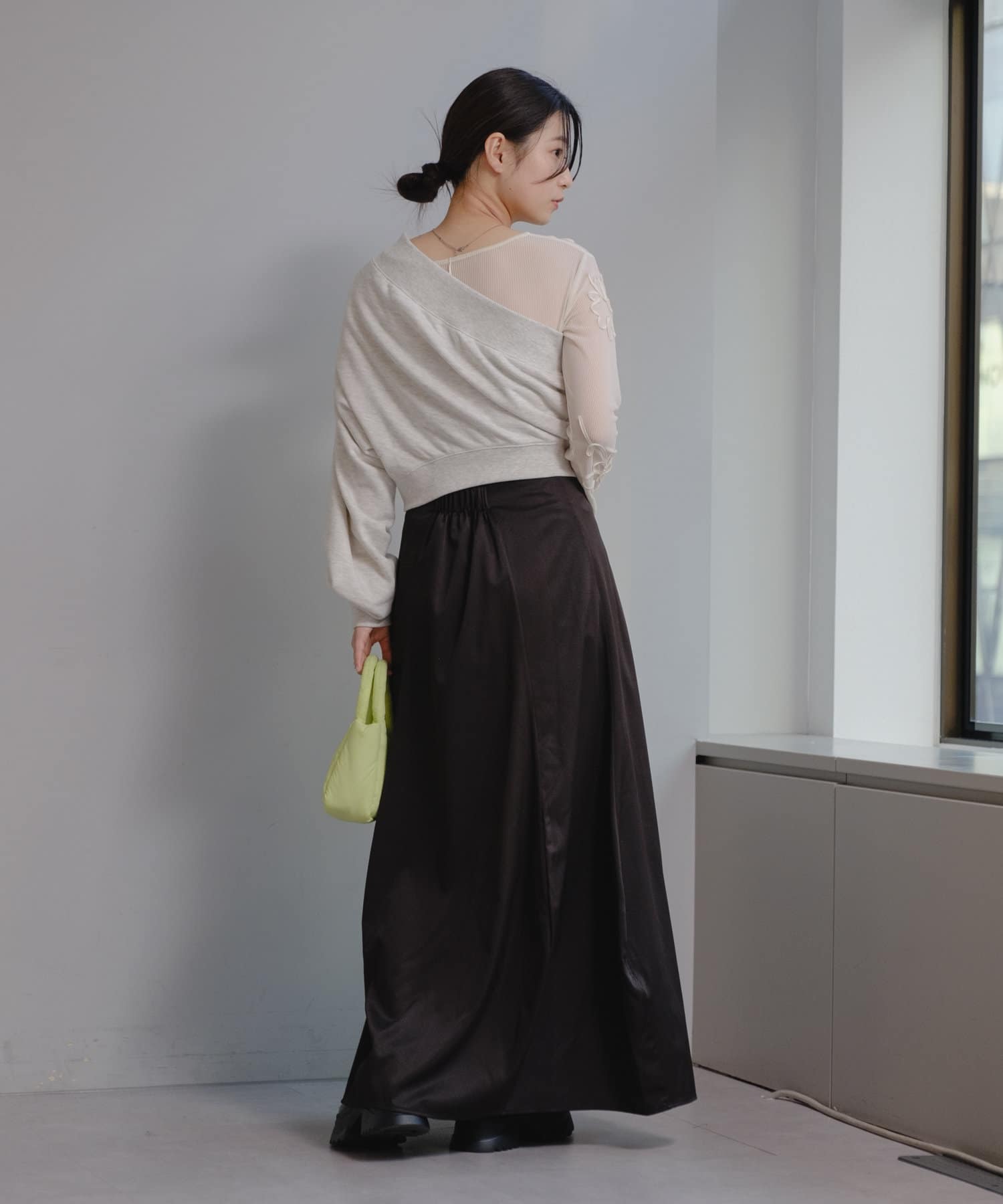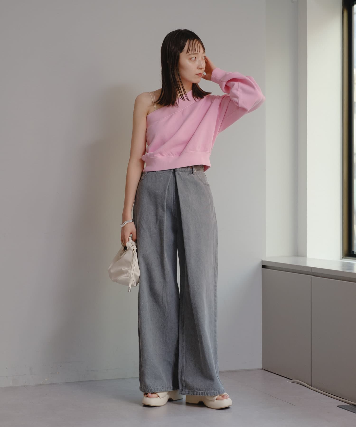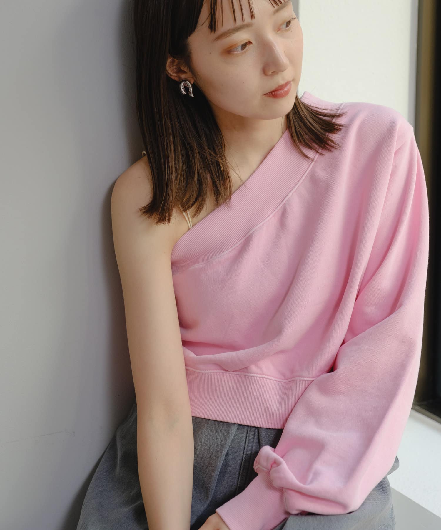 ワンショルダーのデザインなので一枚で印象付けができます。