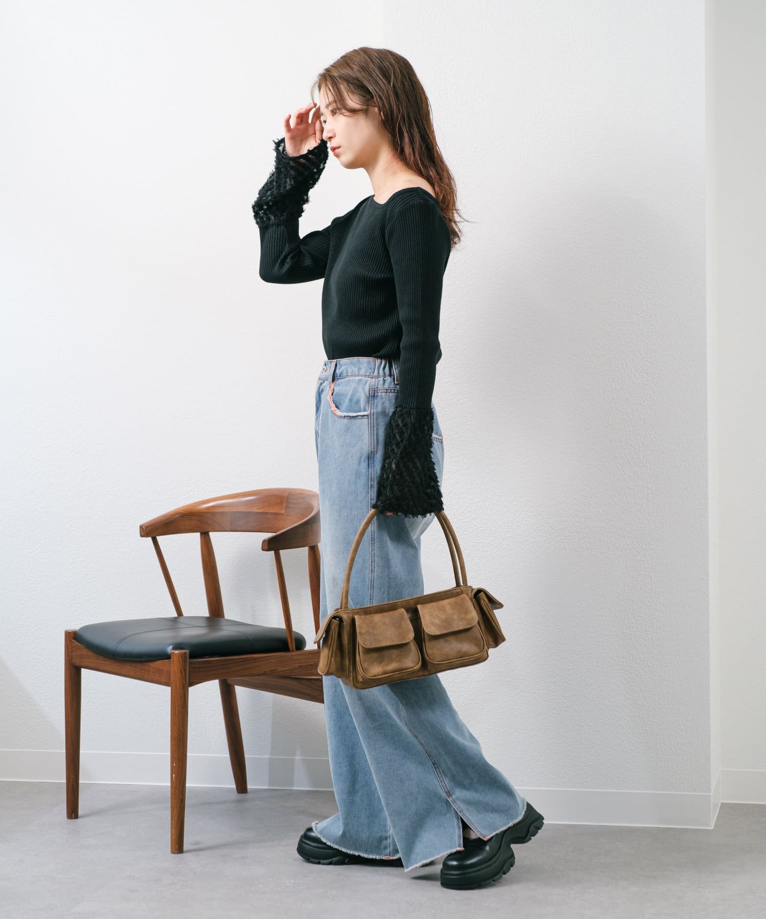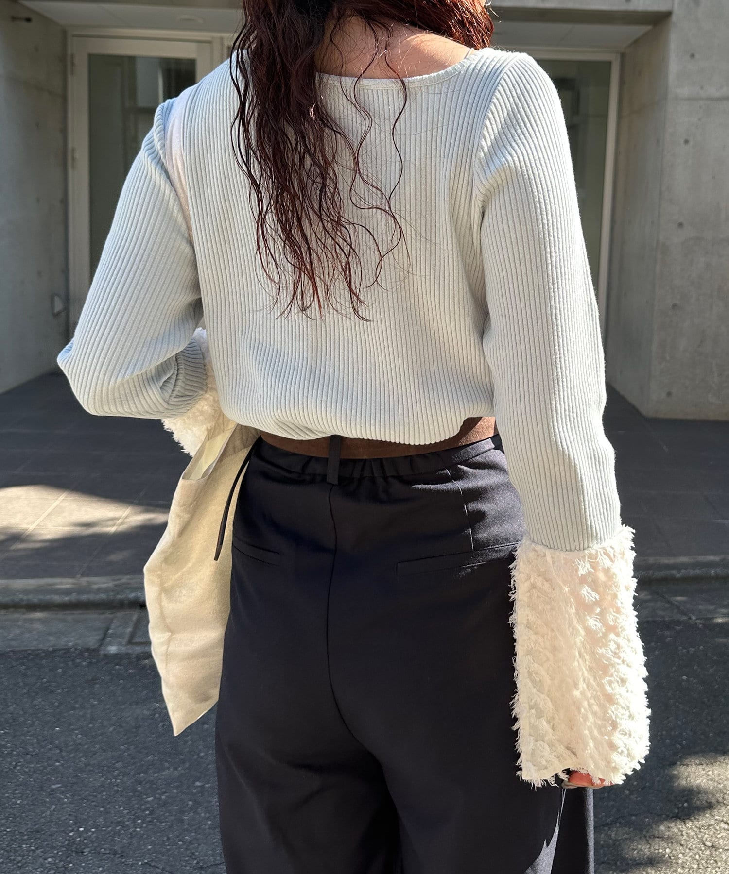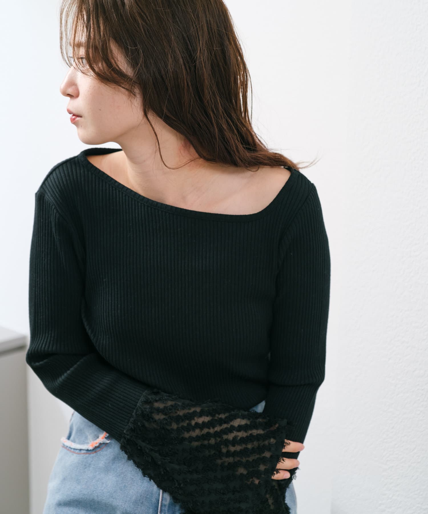 華やかな袖が目を惹くリブカットソー