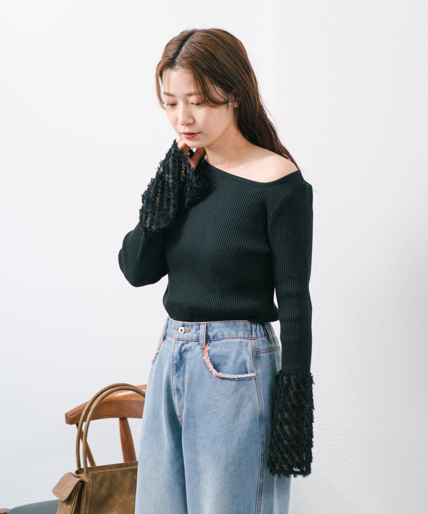 袖部分のフェザーがアクセントになり女性らしさとトレンド感を叶えます。