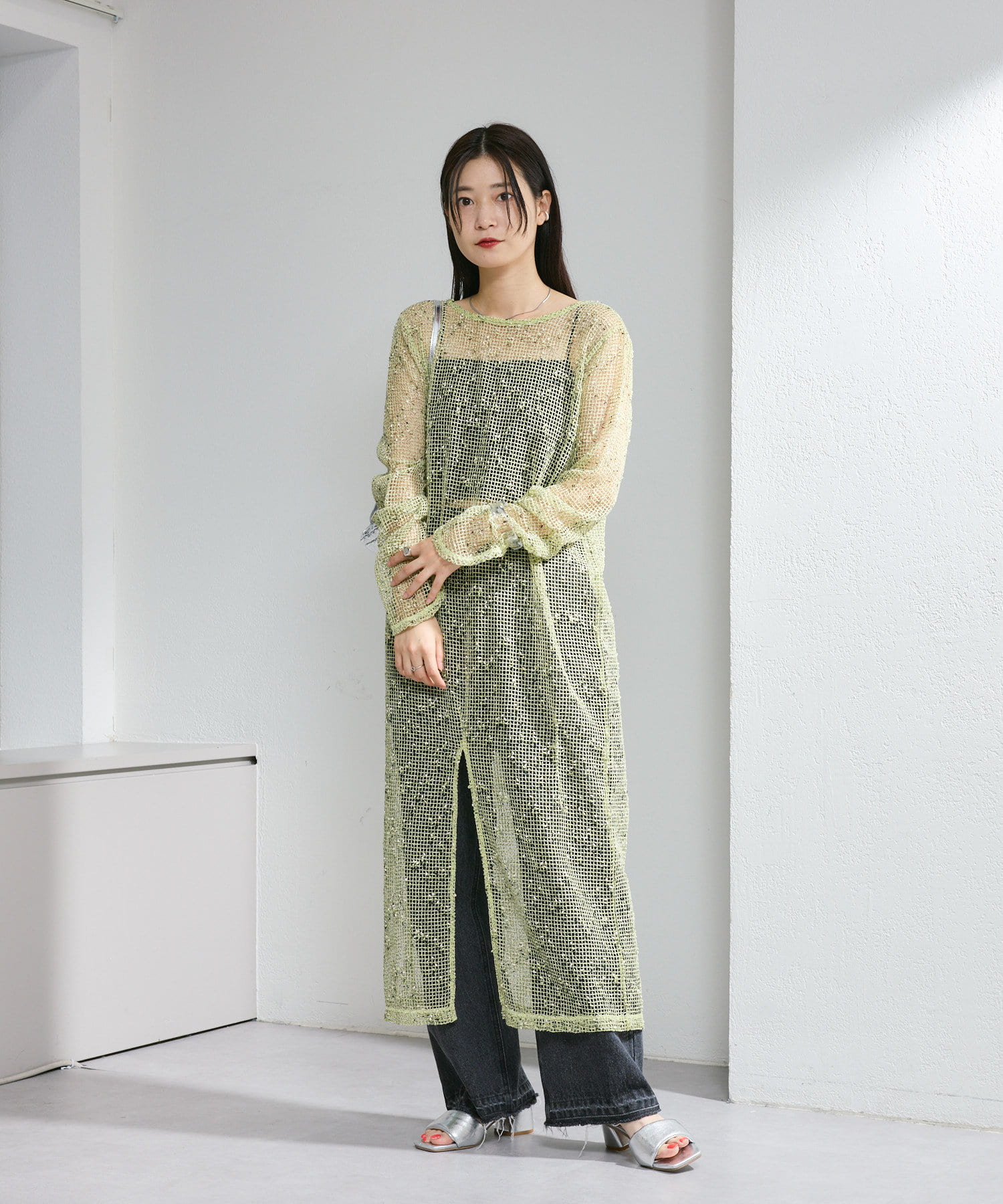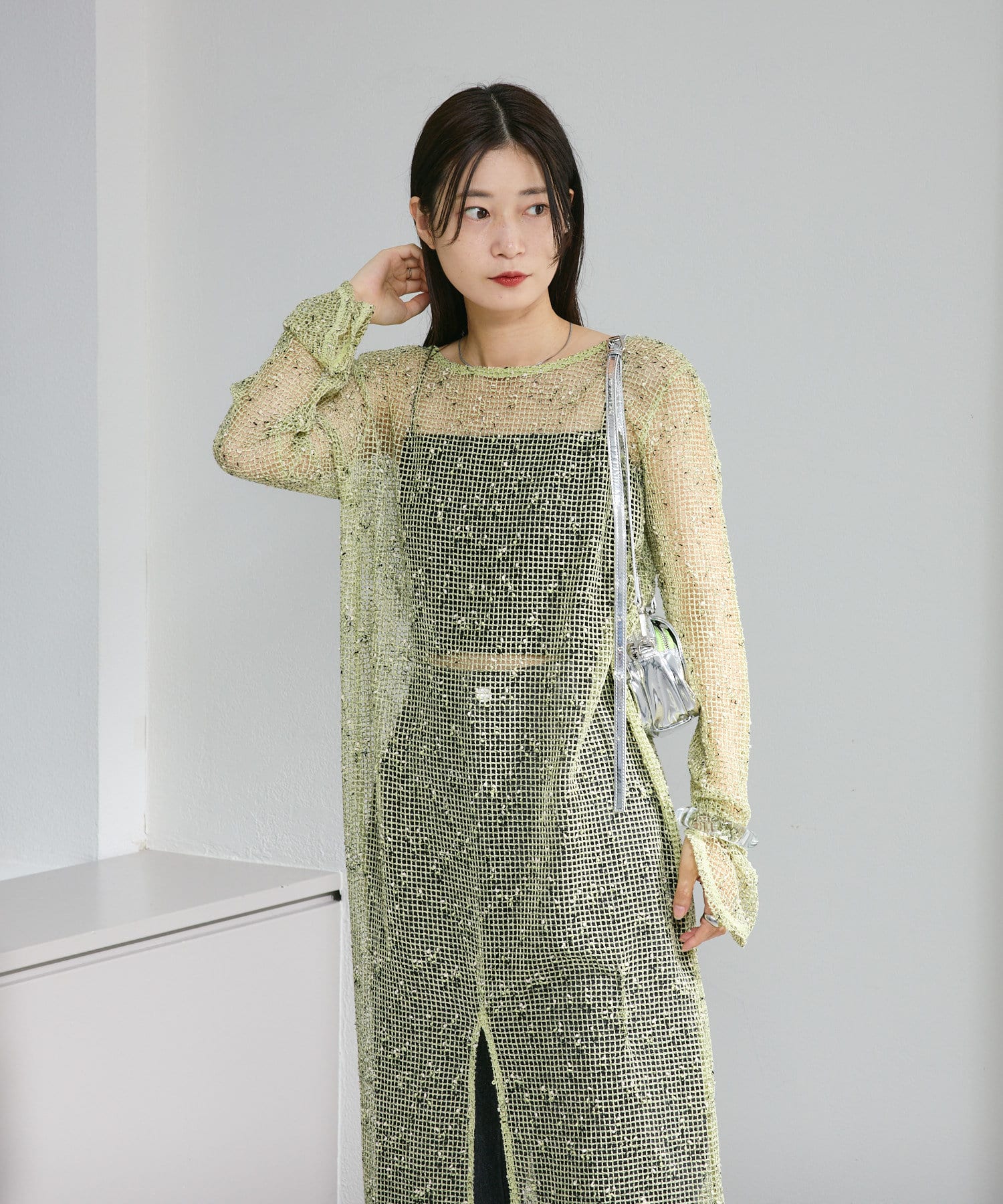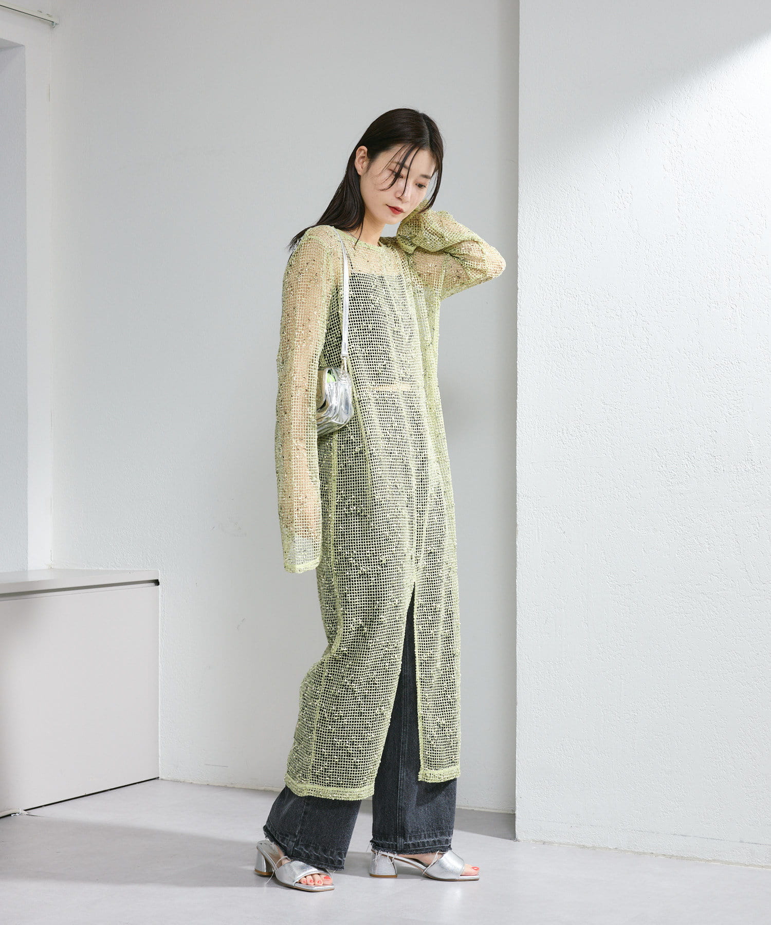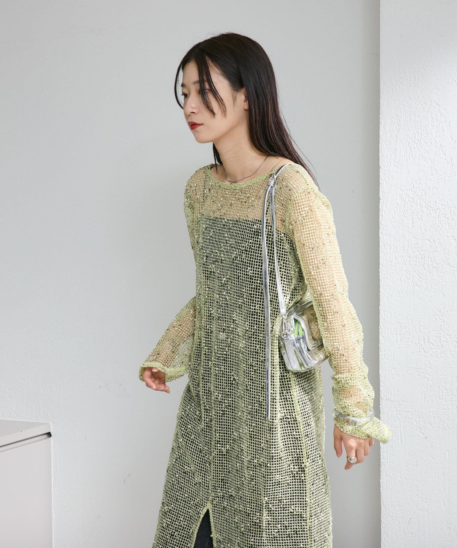 上級者なレイヤードスタイルが完成するメッシュワンピース