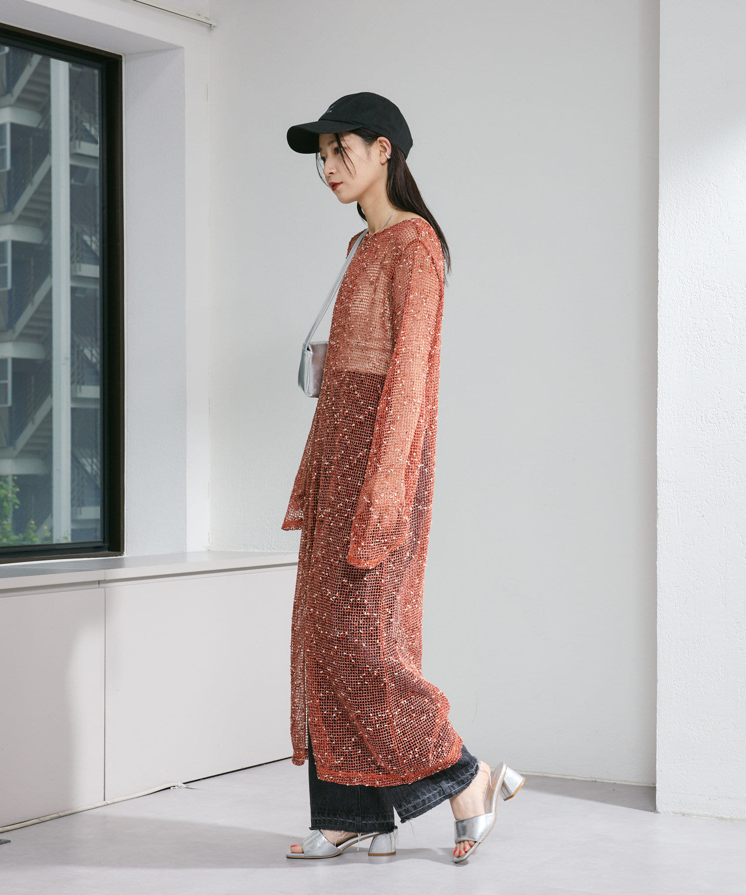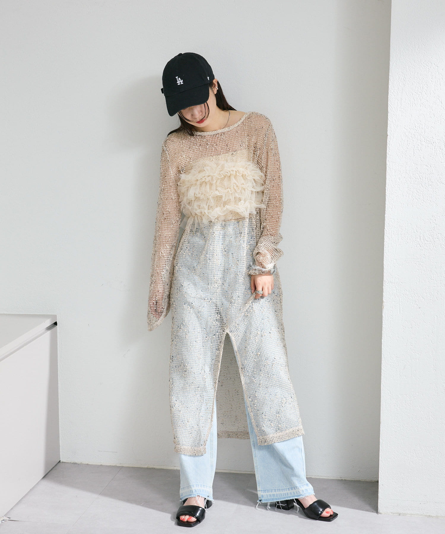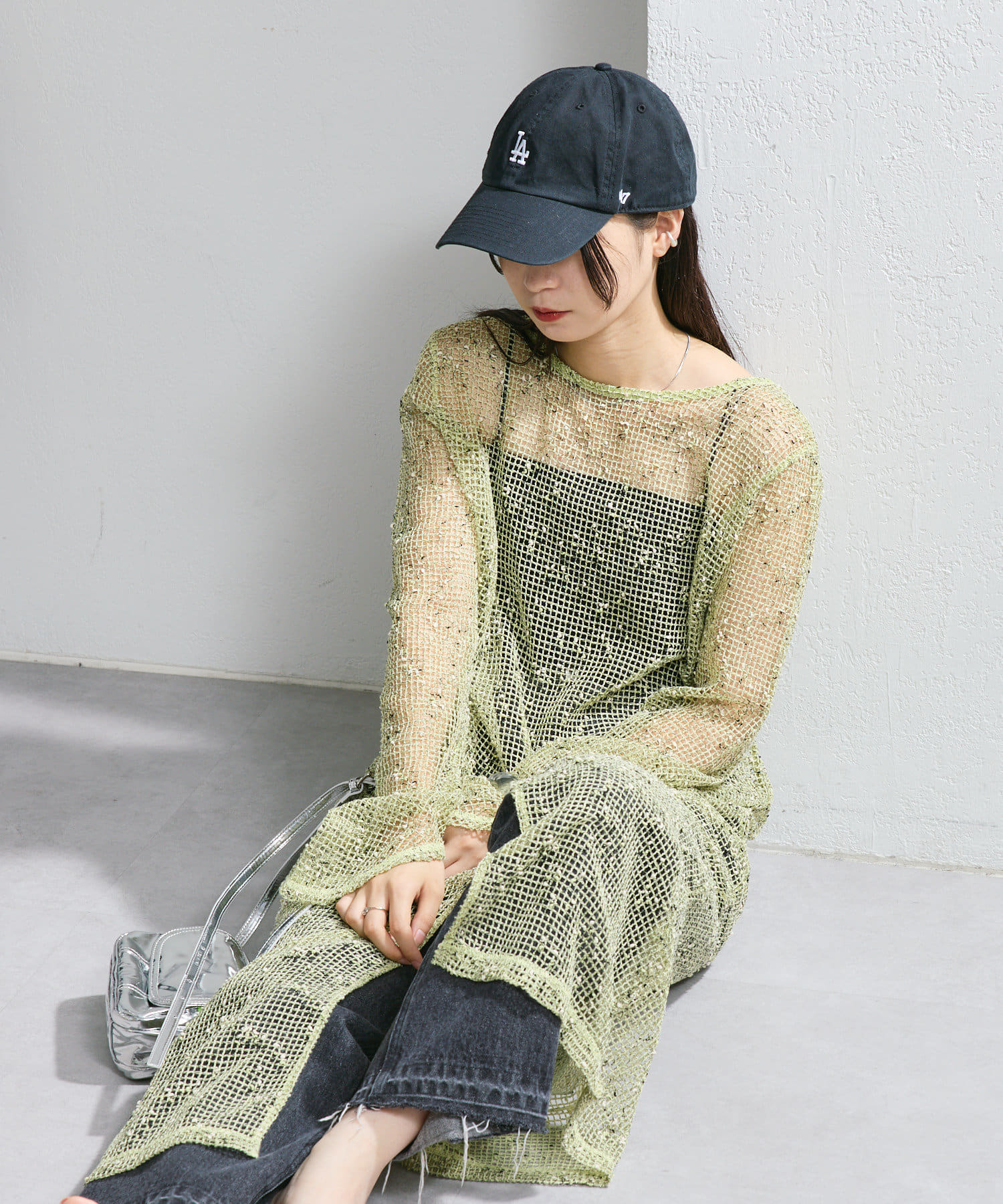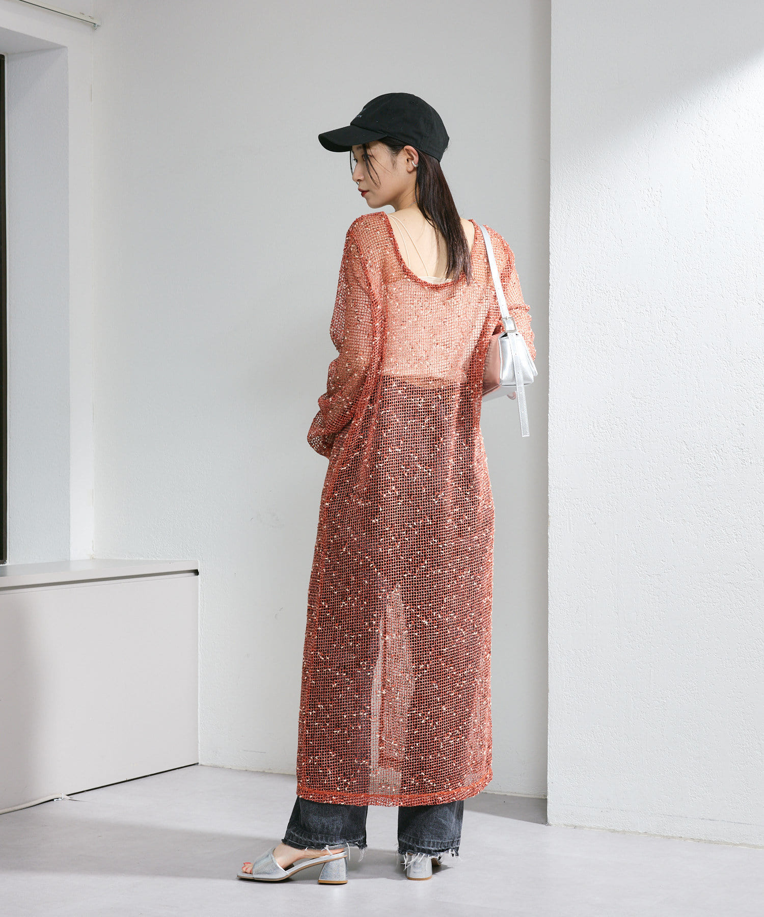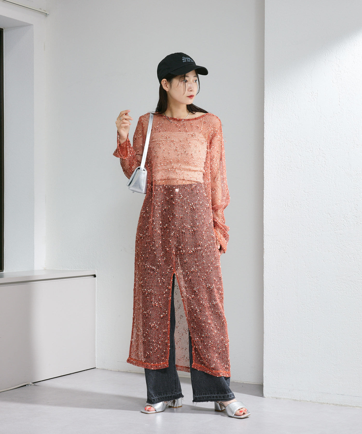 上級者なレイヤードスタイルが完成するメッシュワンピース