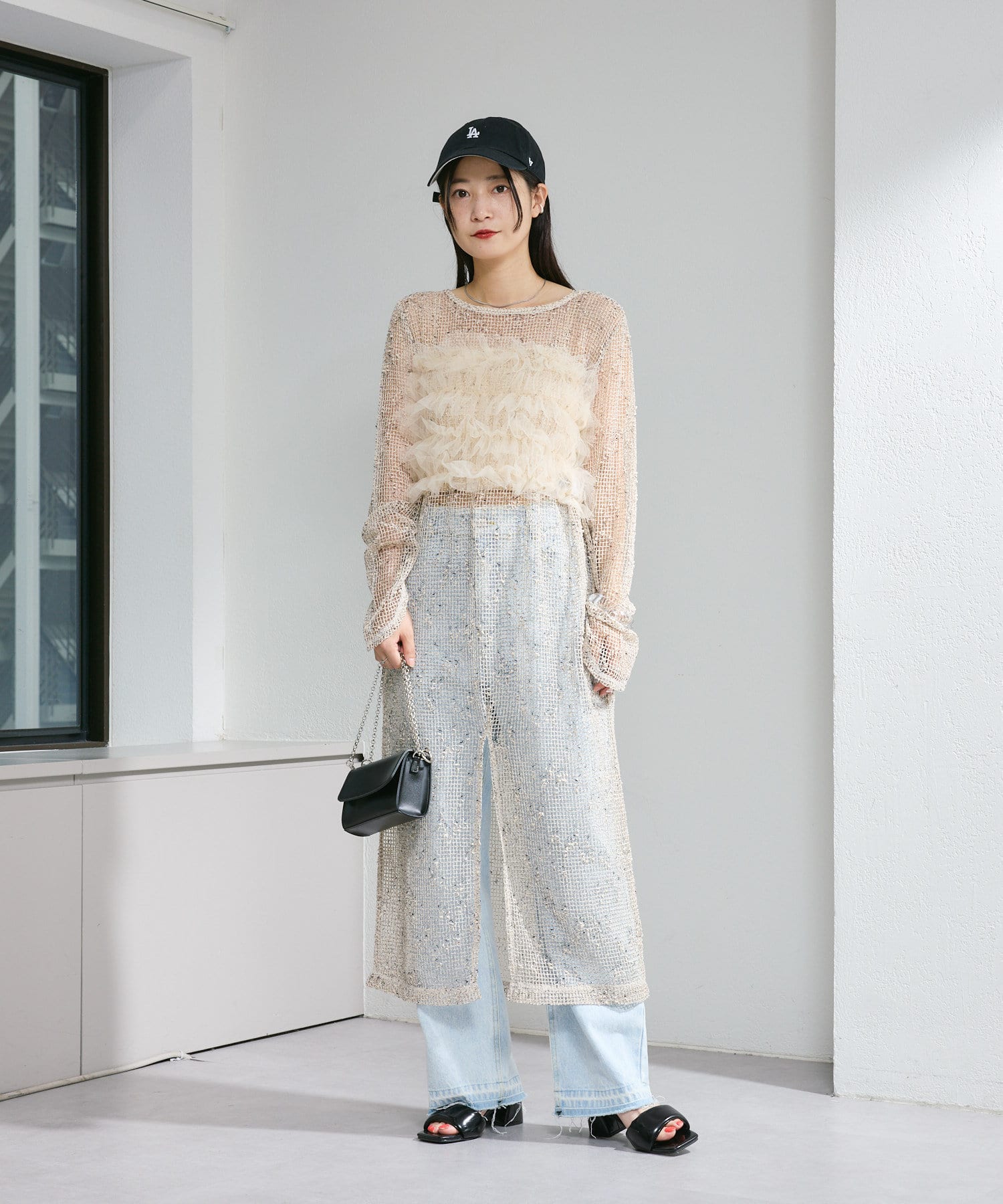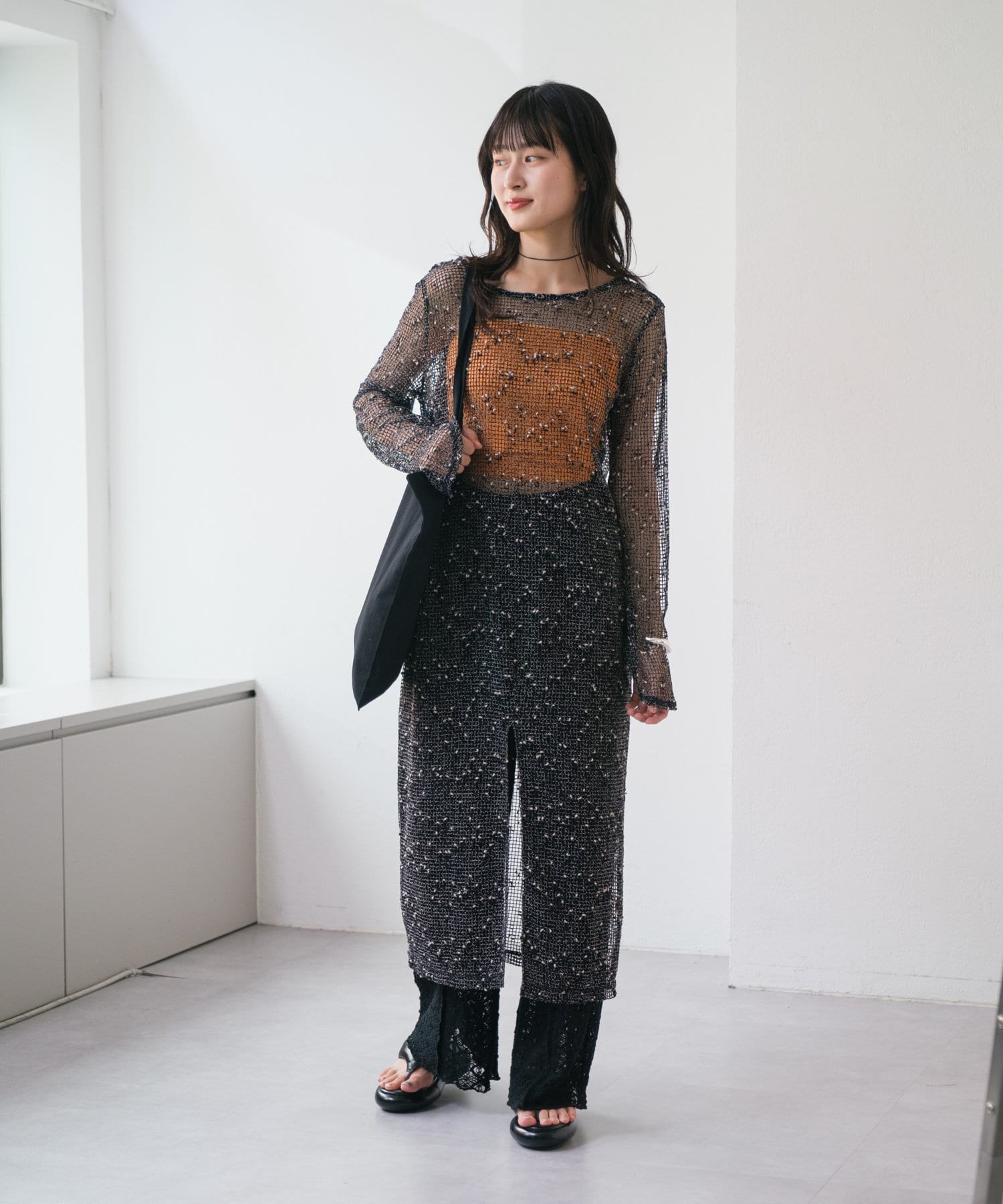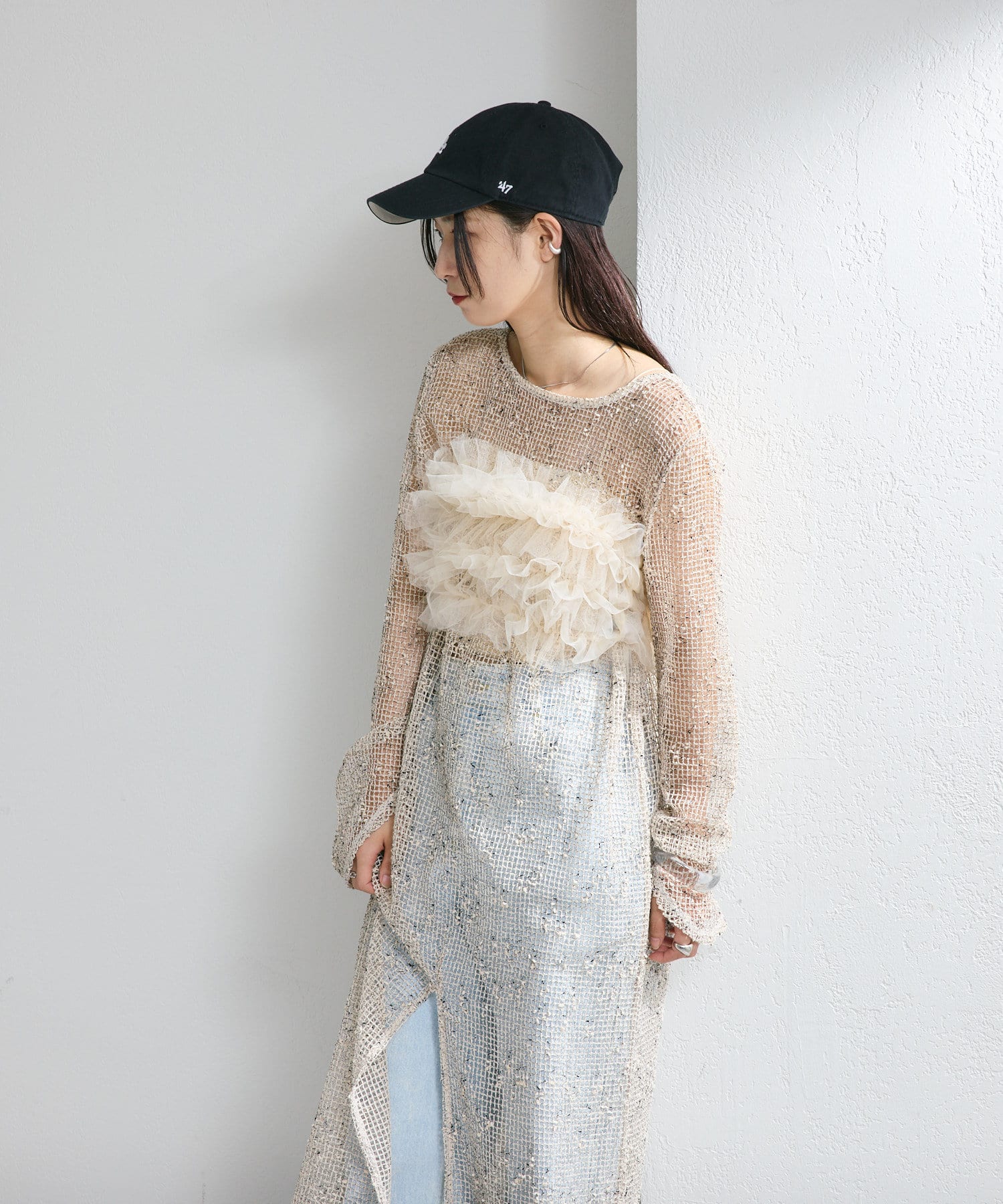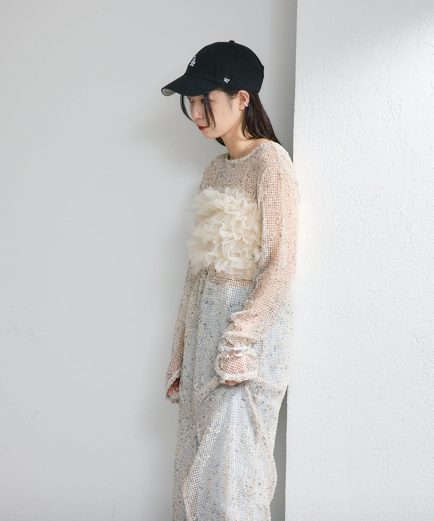 上級者なレイヤードスタイルが完成するメッシュワンピース