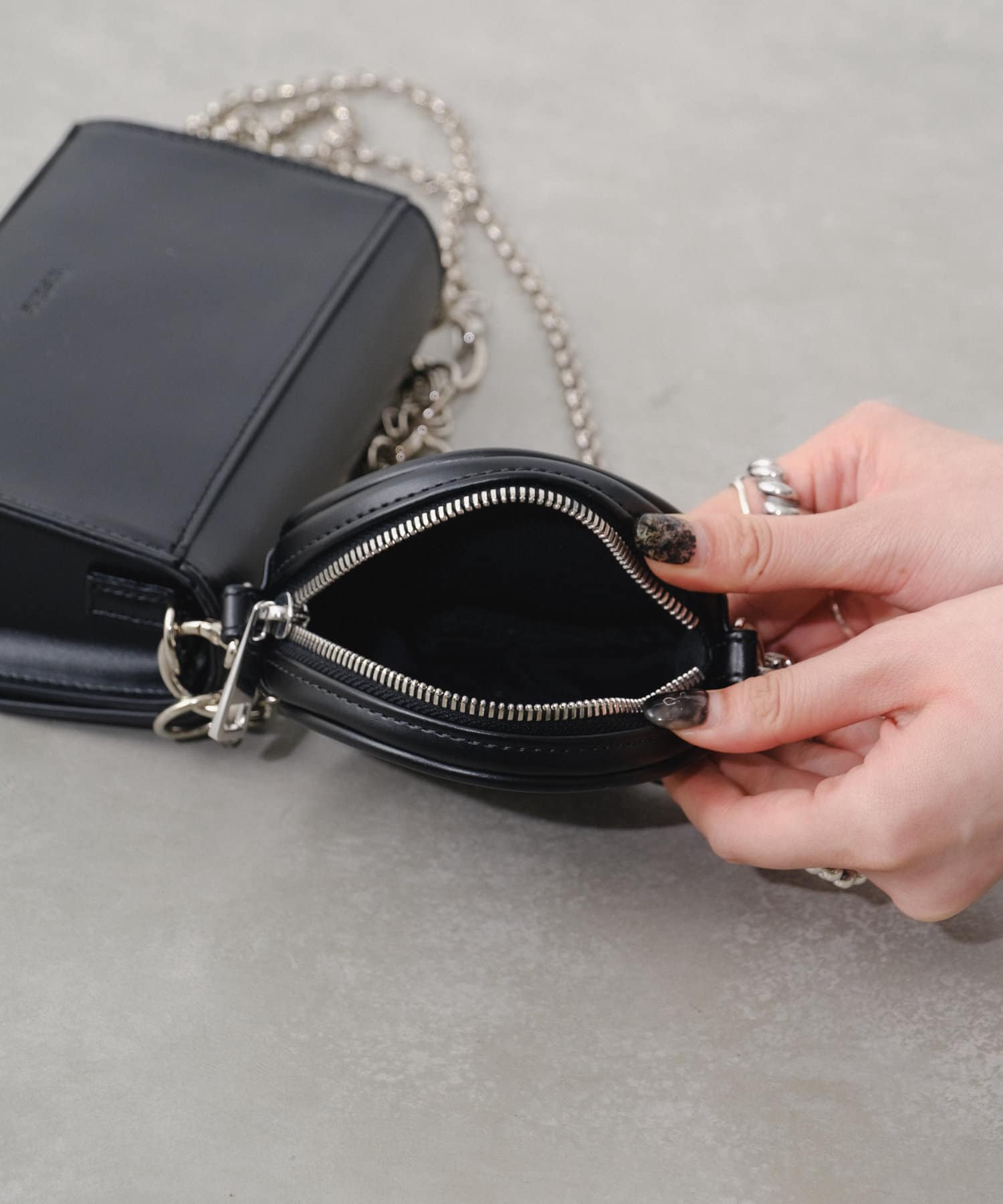 サイズ 縦 横 マチ F 11(ボックス型)/10(丸ポーチ型) 18(ボックス型)/10(丸ポーチ型) 5(ボックス型)/3.5(丸ポーチ型) 付属チェーンあり