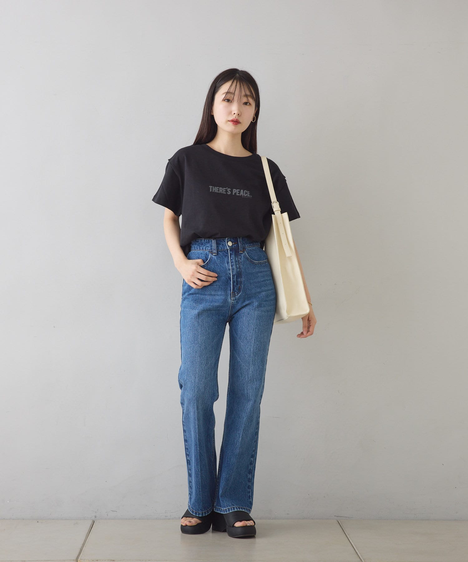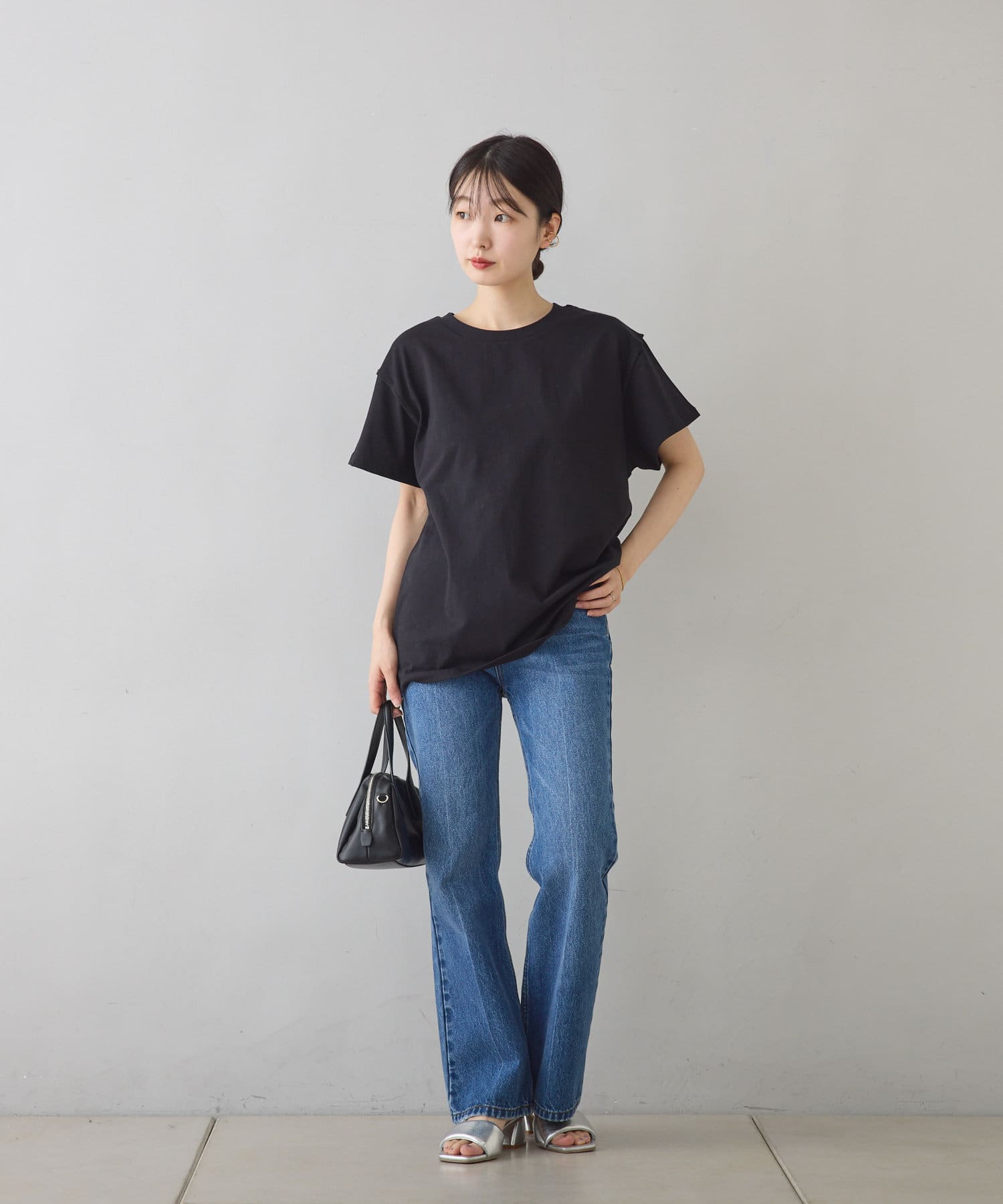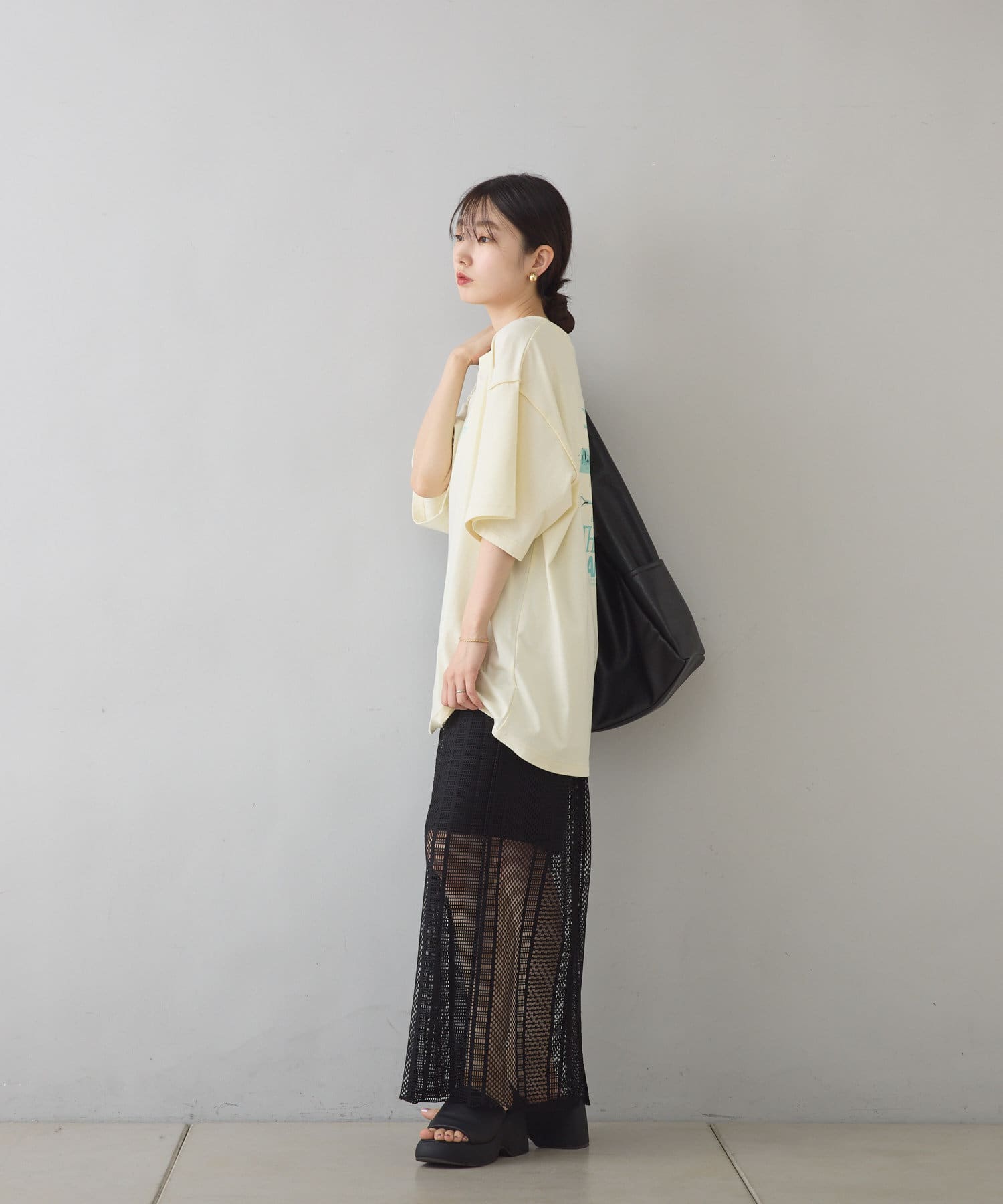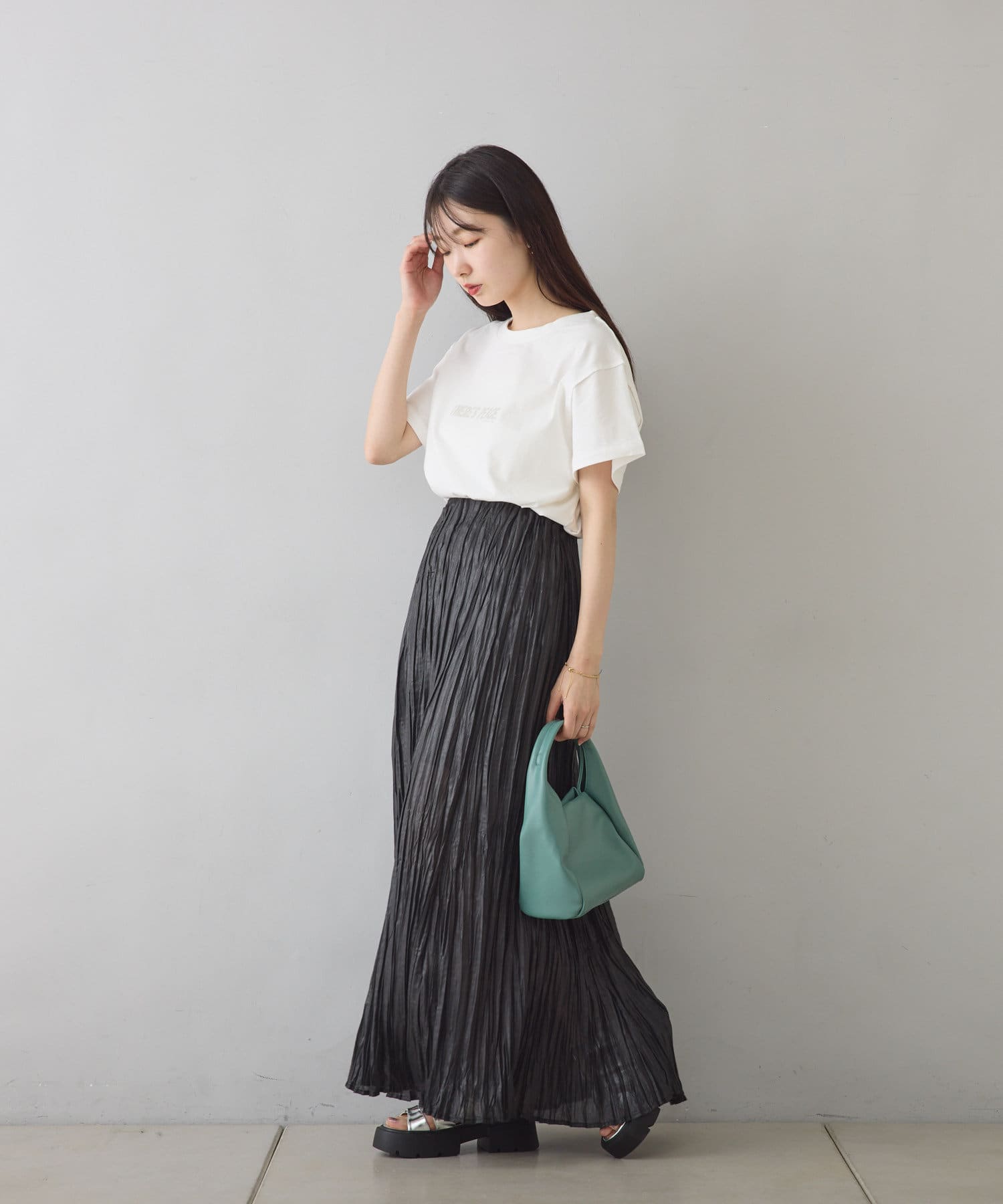 デニムやフレアスカートにインスタイルで、Iラインスカートにアウトスタイルなど