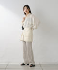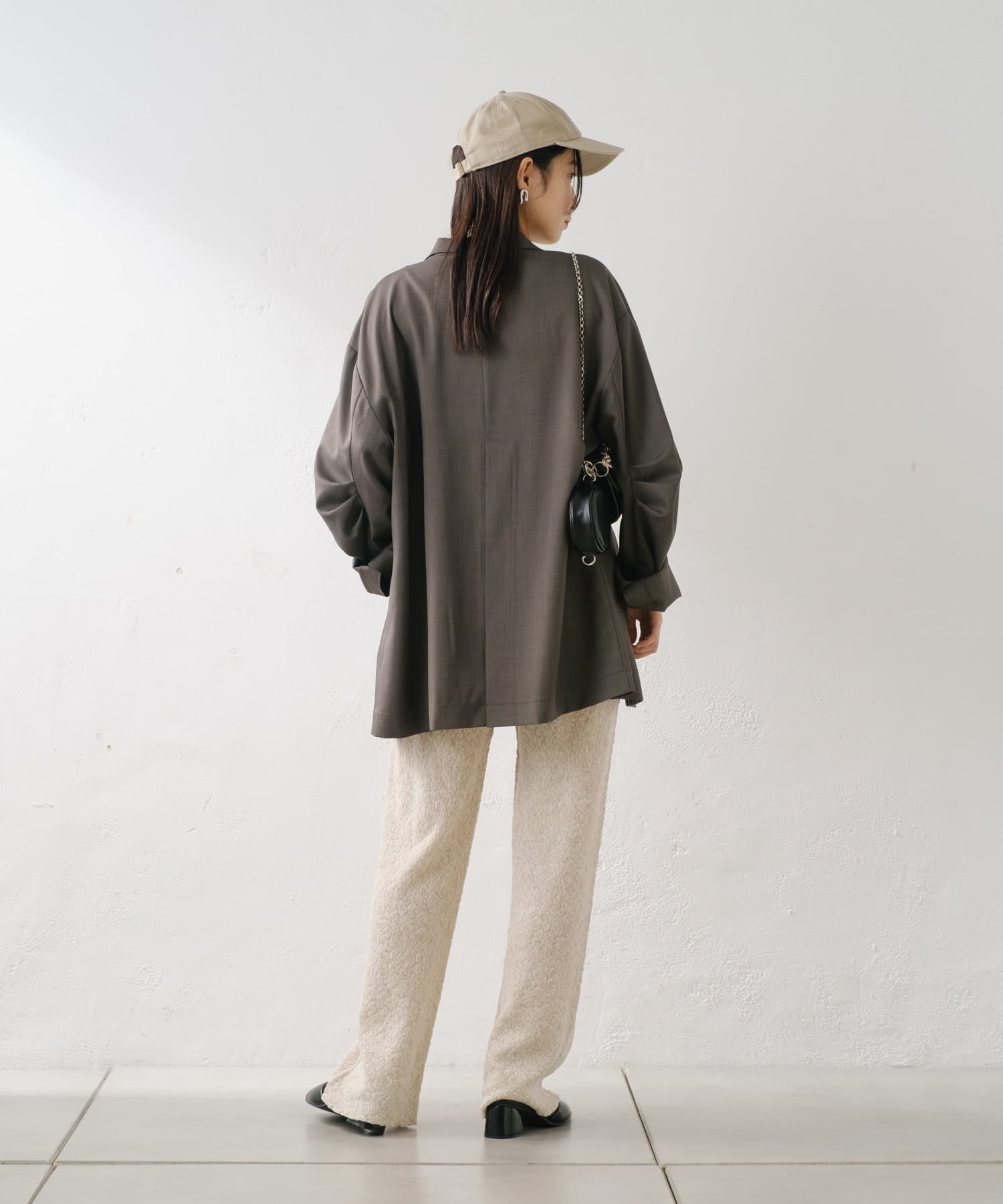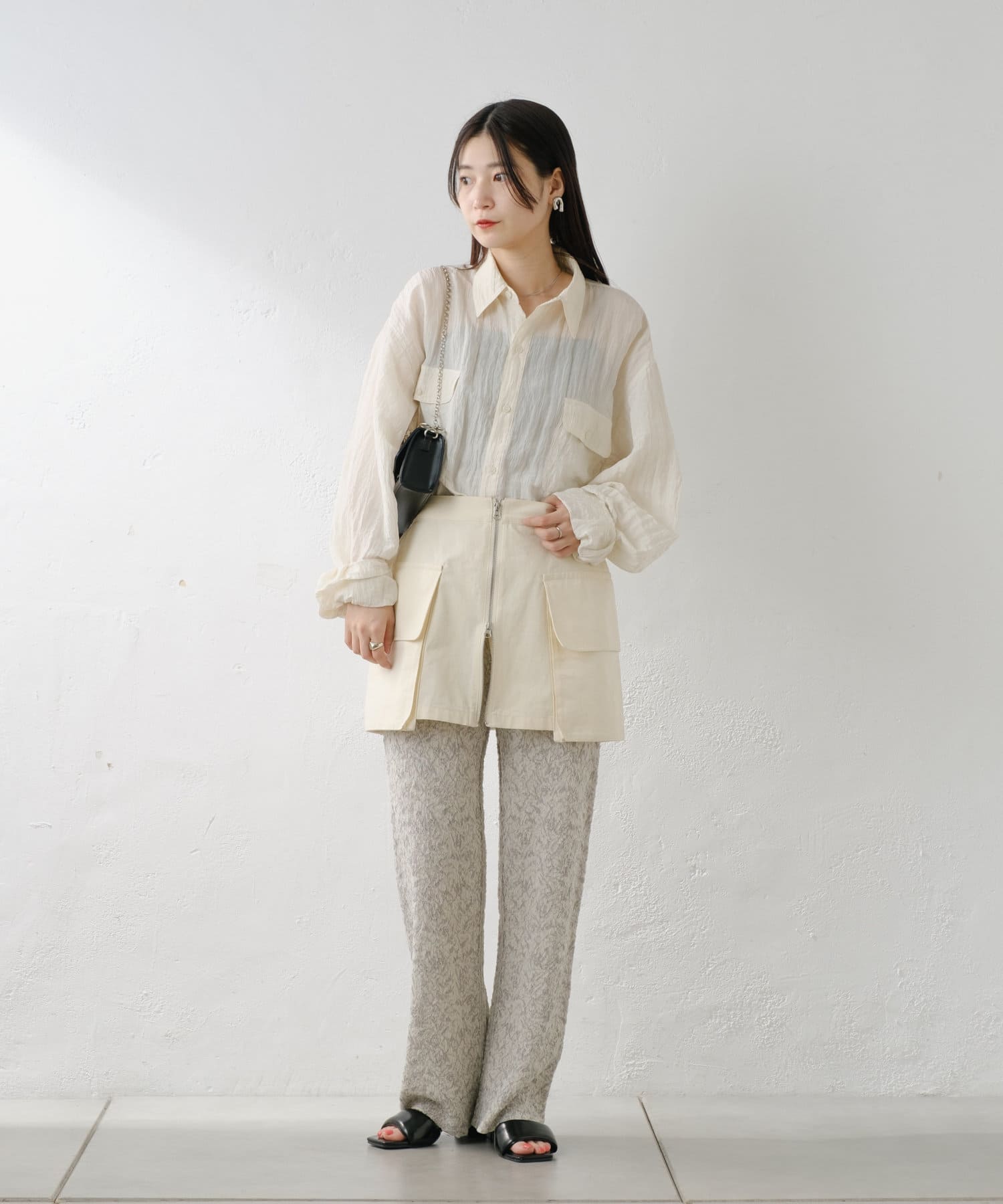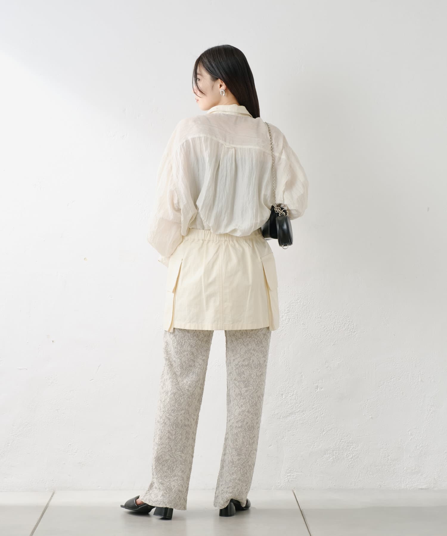 ロゴTeeなどコンパクトなトップスの際は、インしてジャケットやシアーシャツを羽織っていただくととで