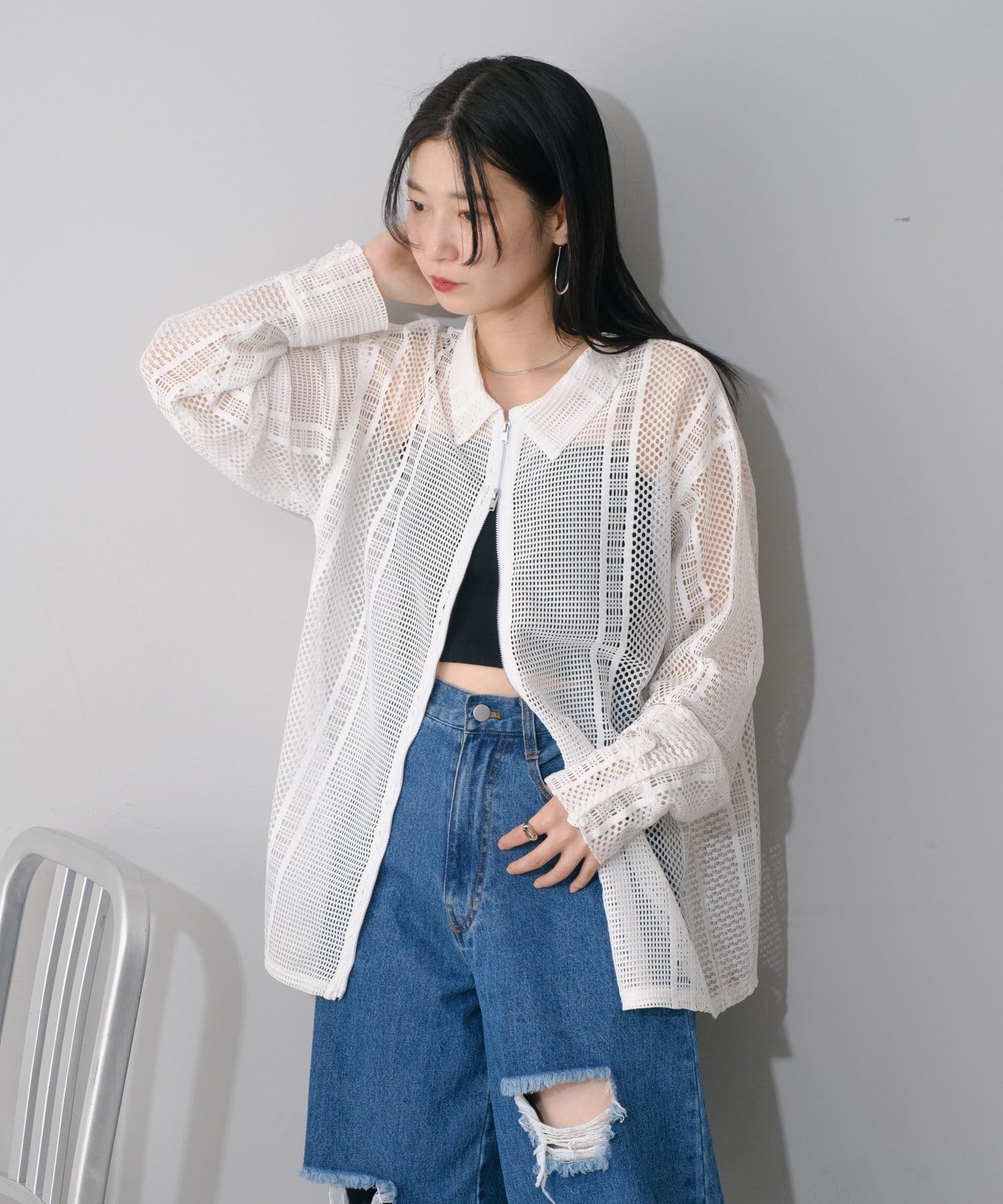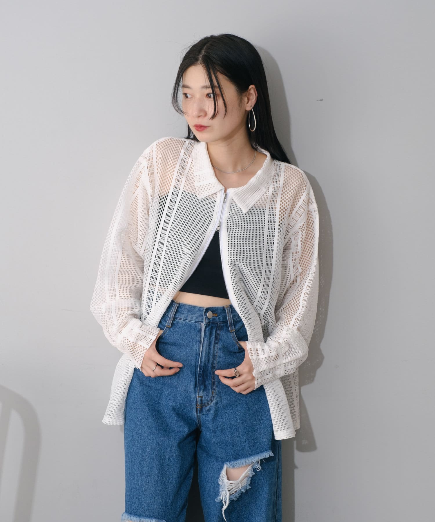 【Kastane】ハシゴレースシアーZIPシャツ