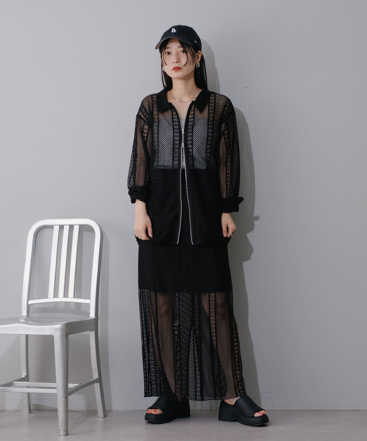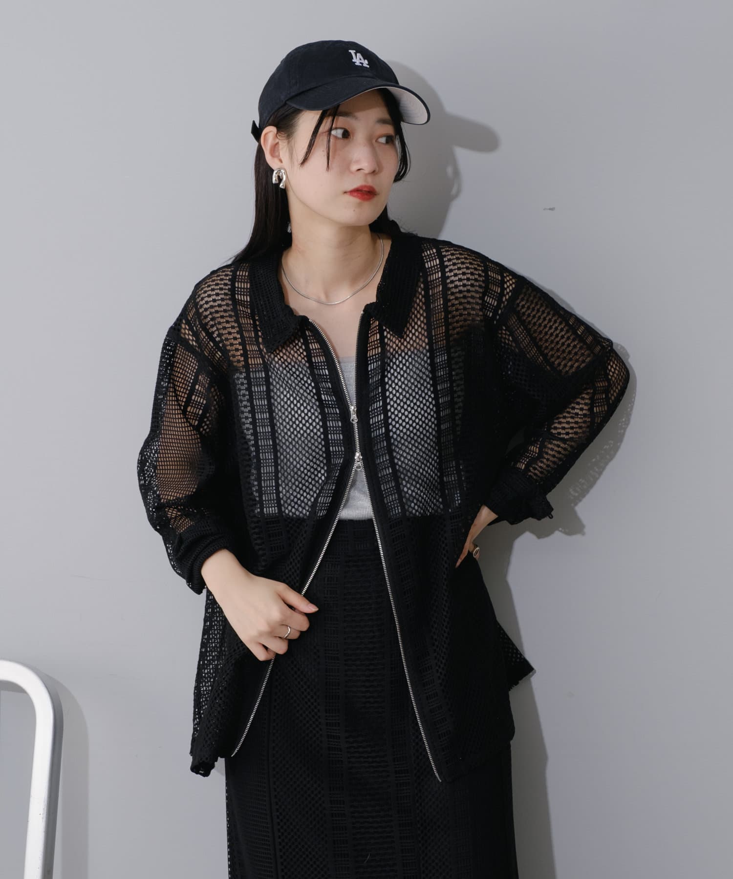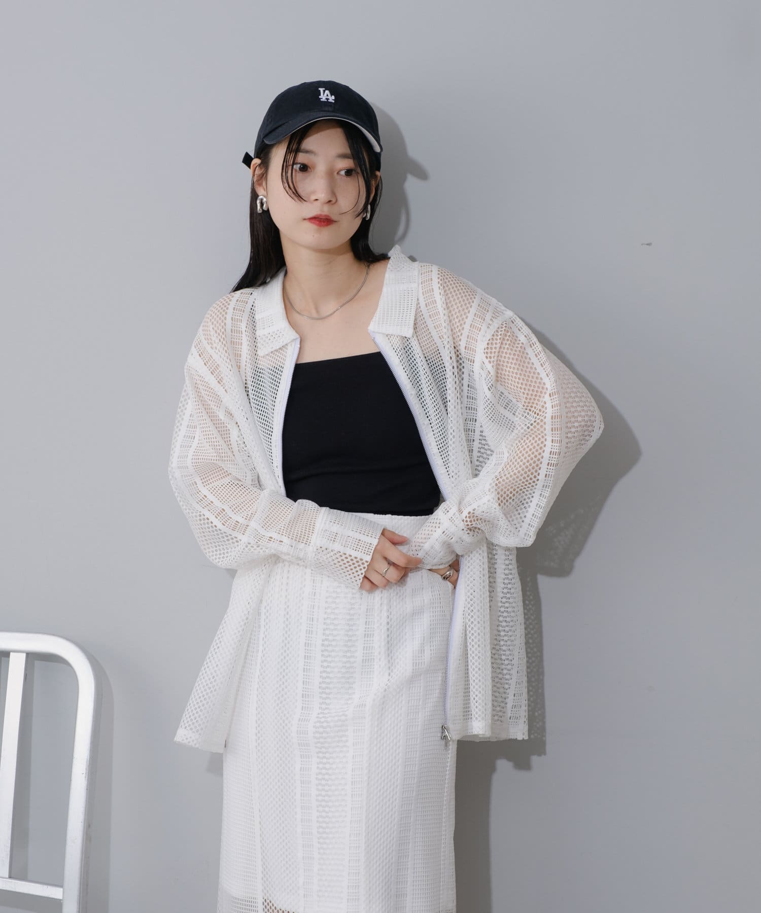 セットアップのスカートと合わせて頂くとトレンド感溢れる上級者コーデに◎