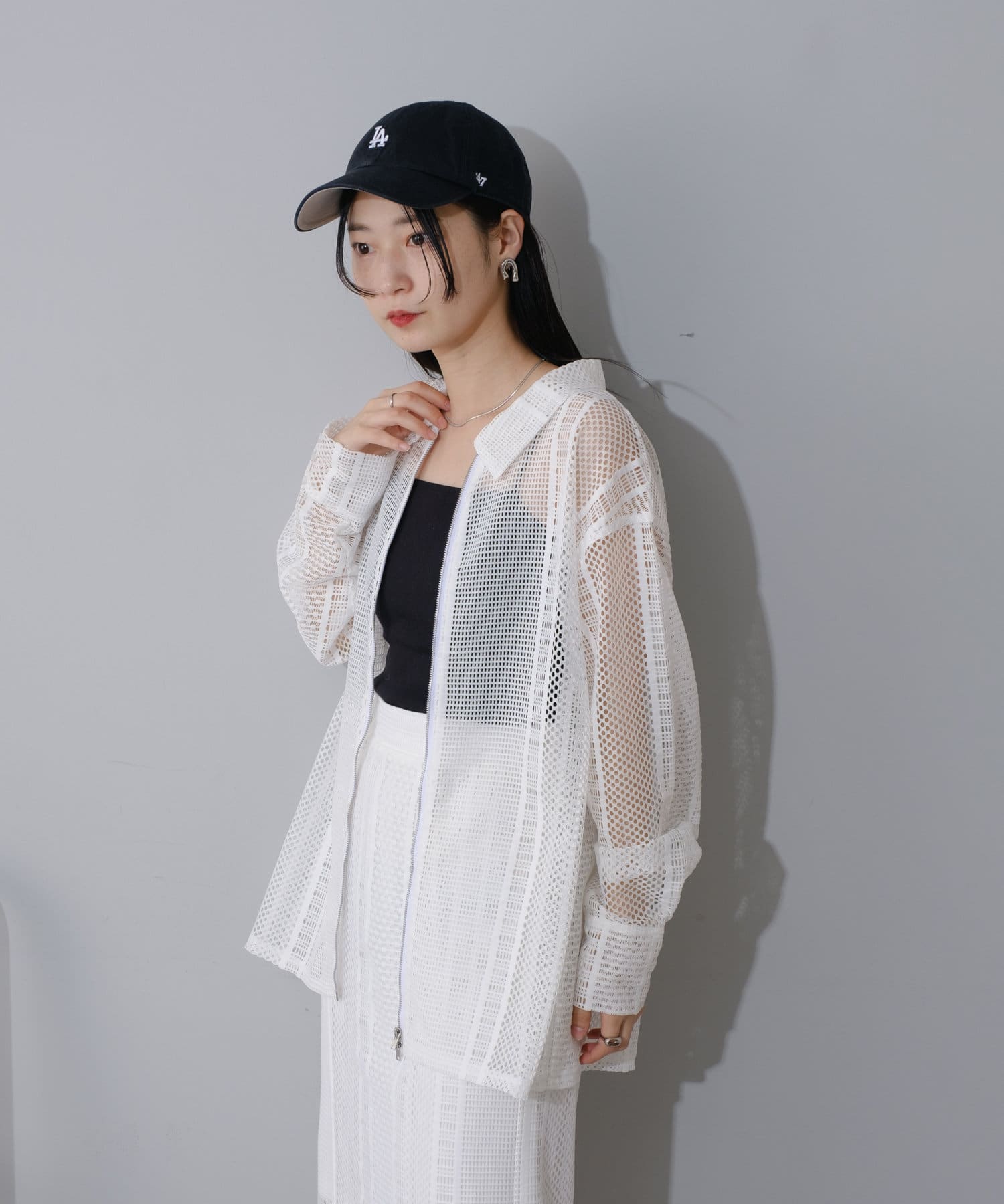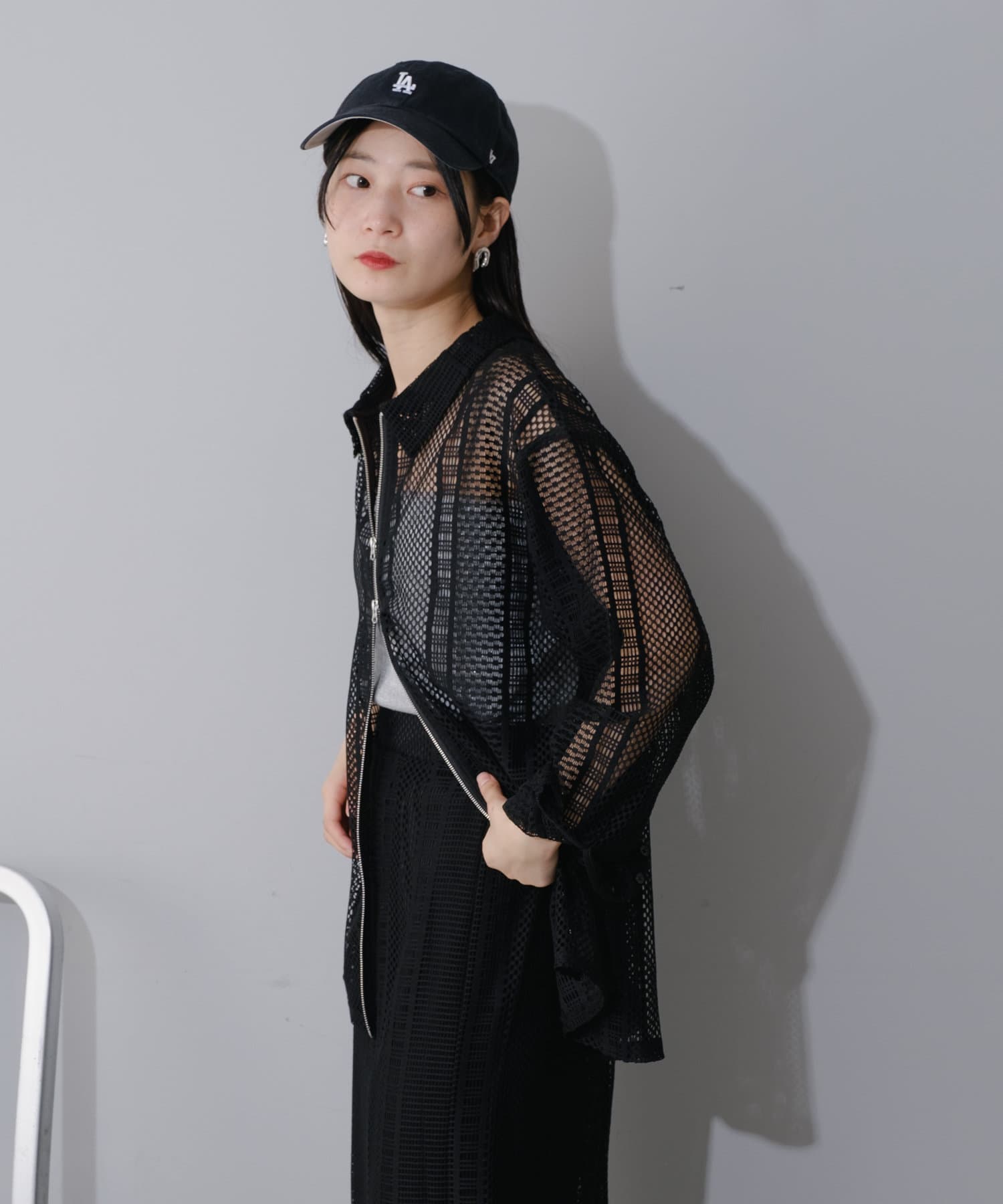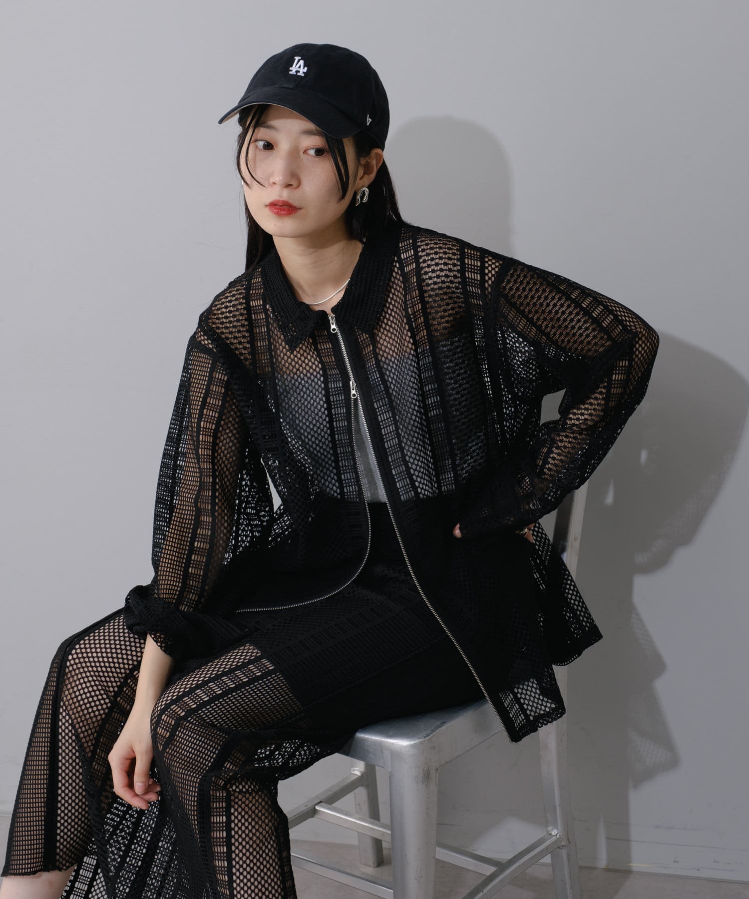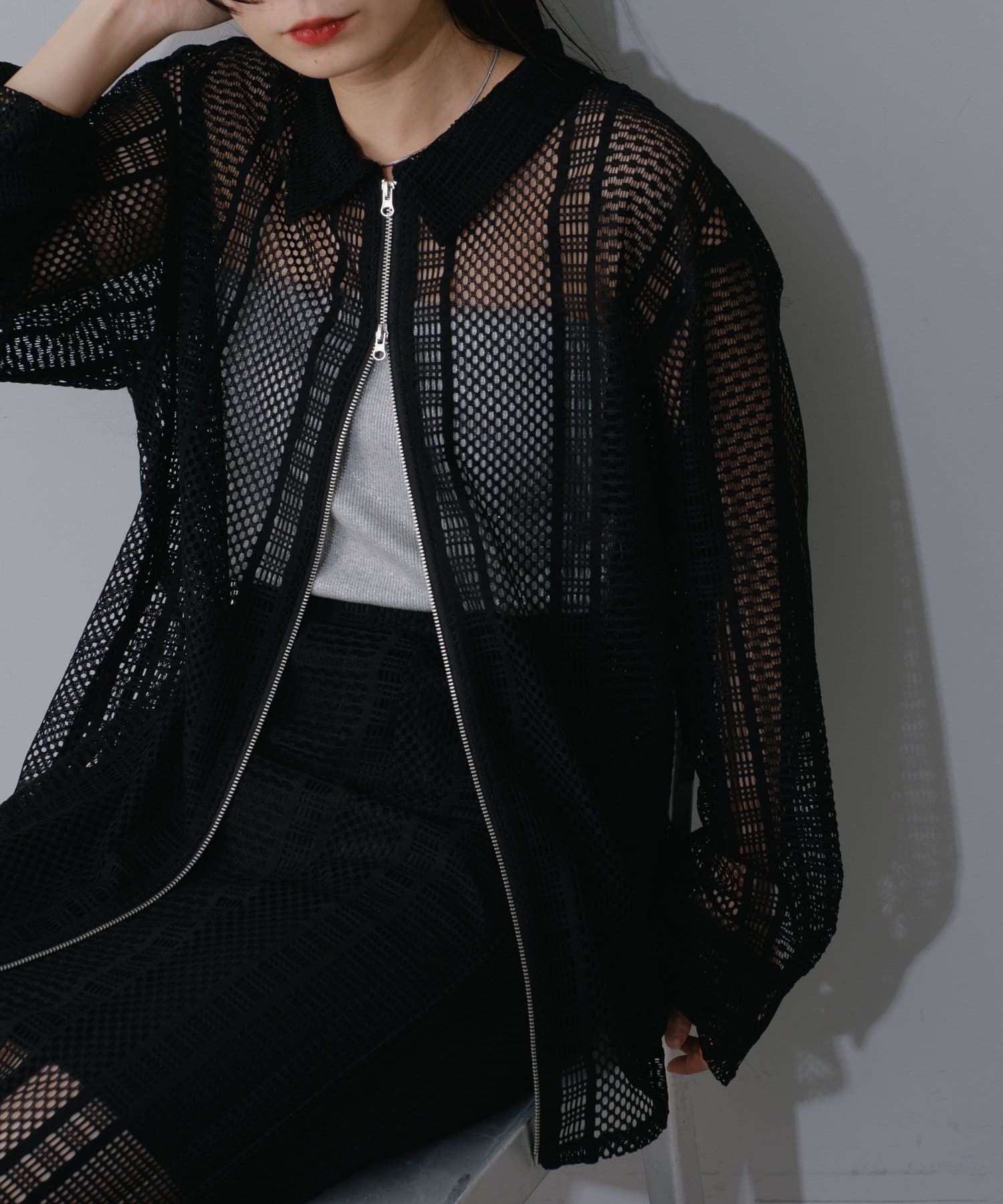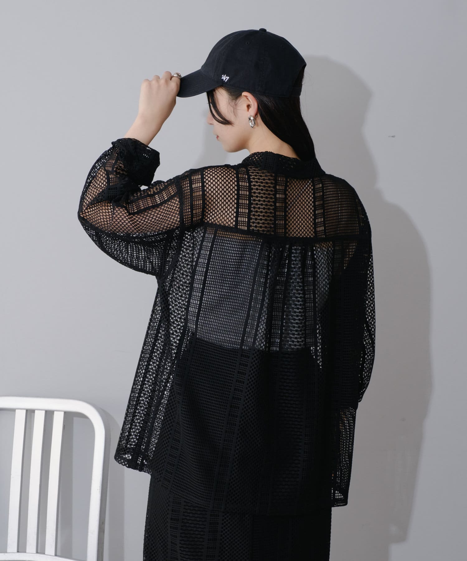 レース素材を全面に使用したシアージャケット。