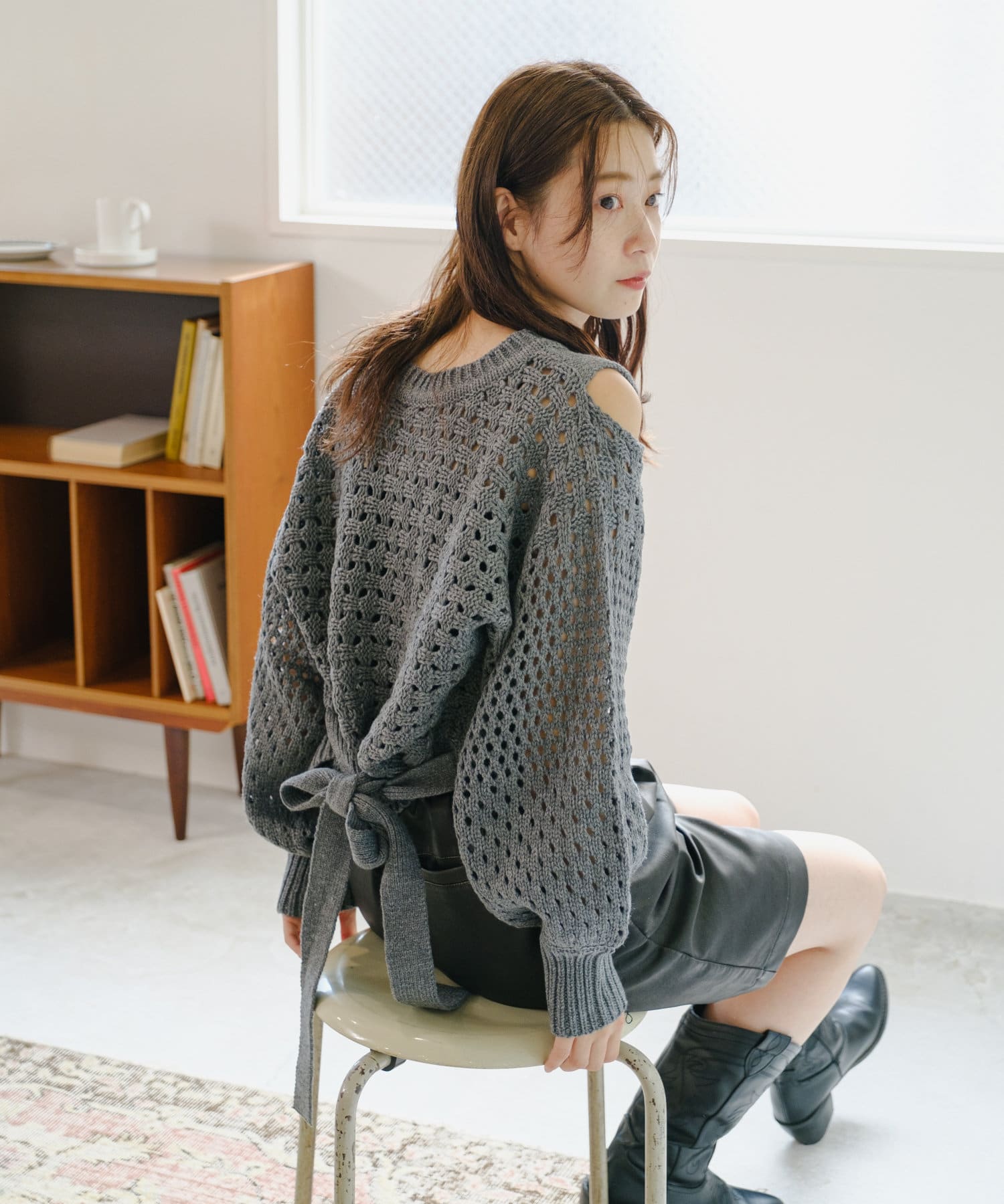 TOP > OUTLET > レディース > トップス > ニット/セーター > 【Kastane】ウエストリボンスリットニット