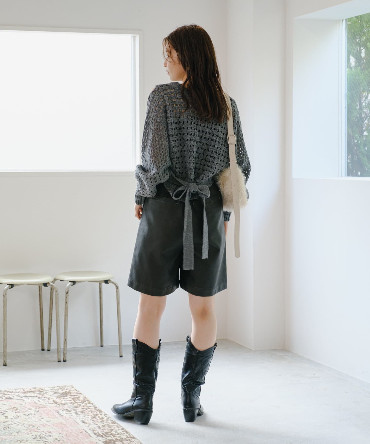 OUTLET(アウトレット) 【Kastane】ウエストリボンスリットニット