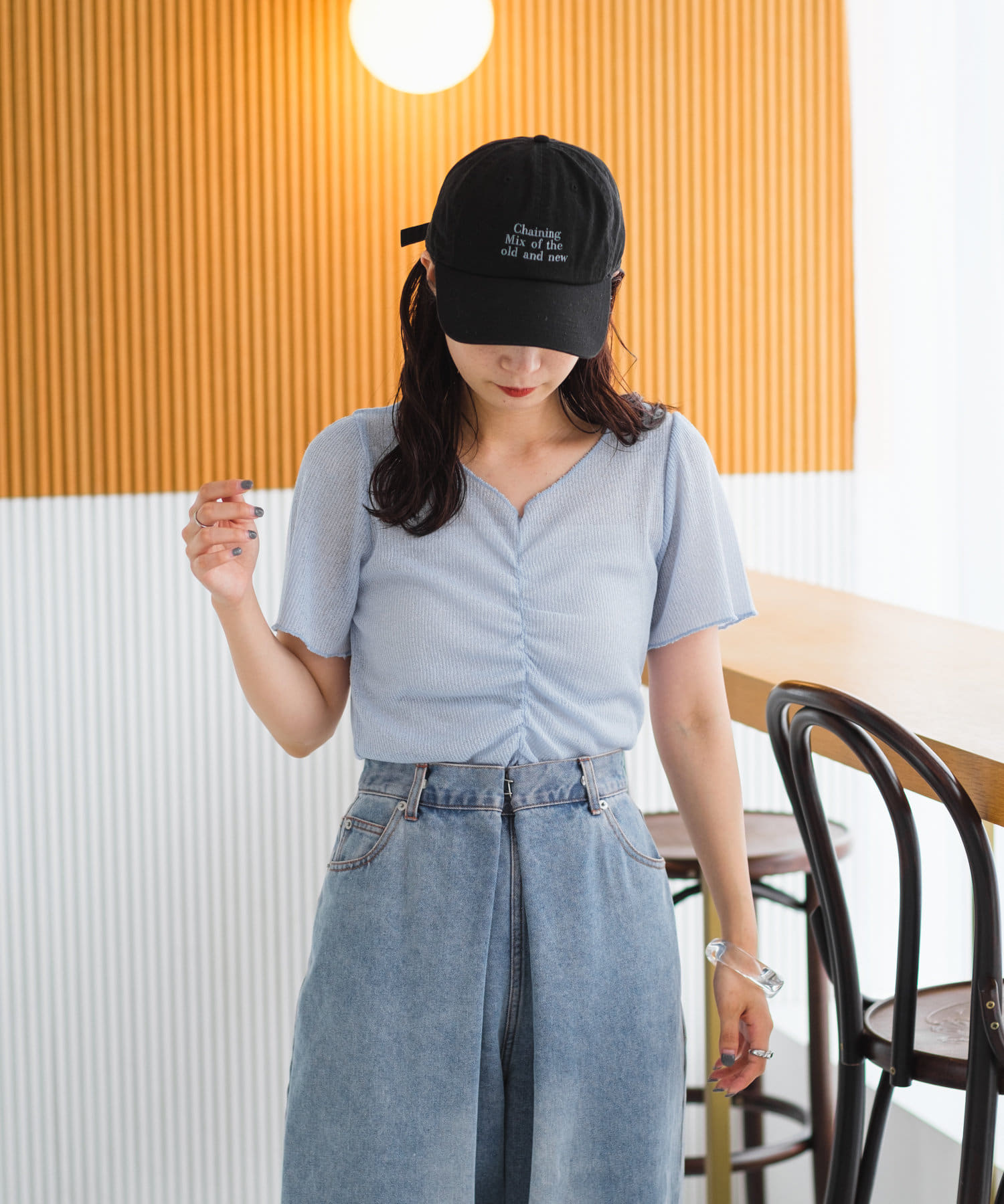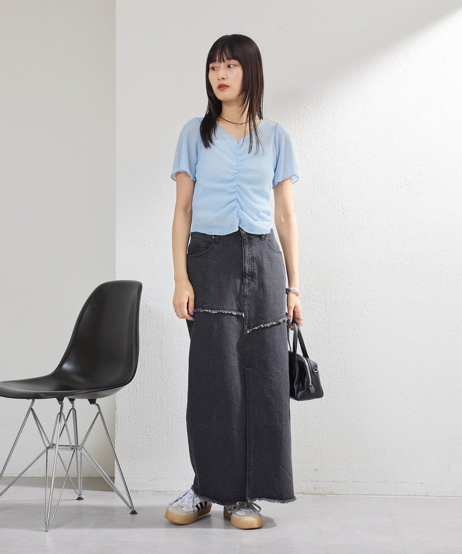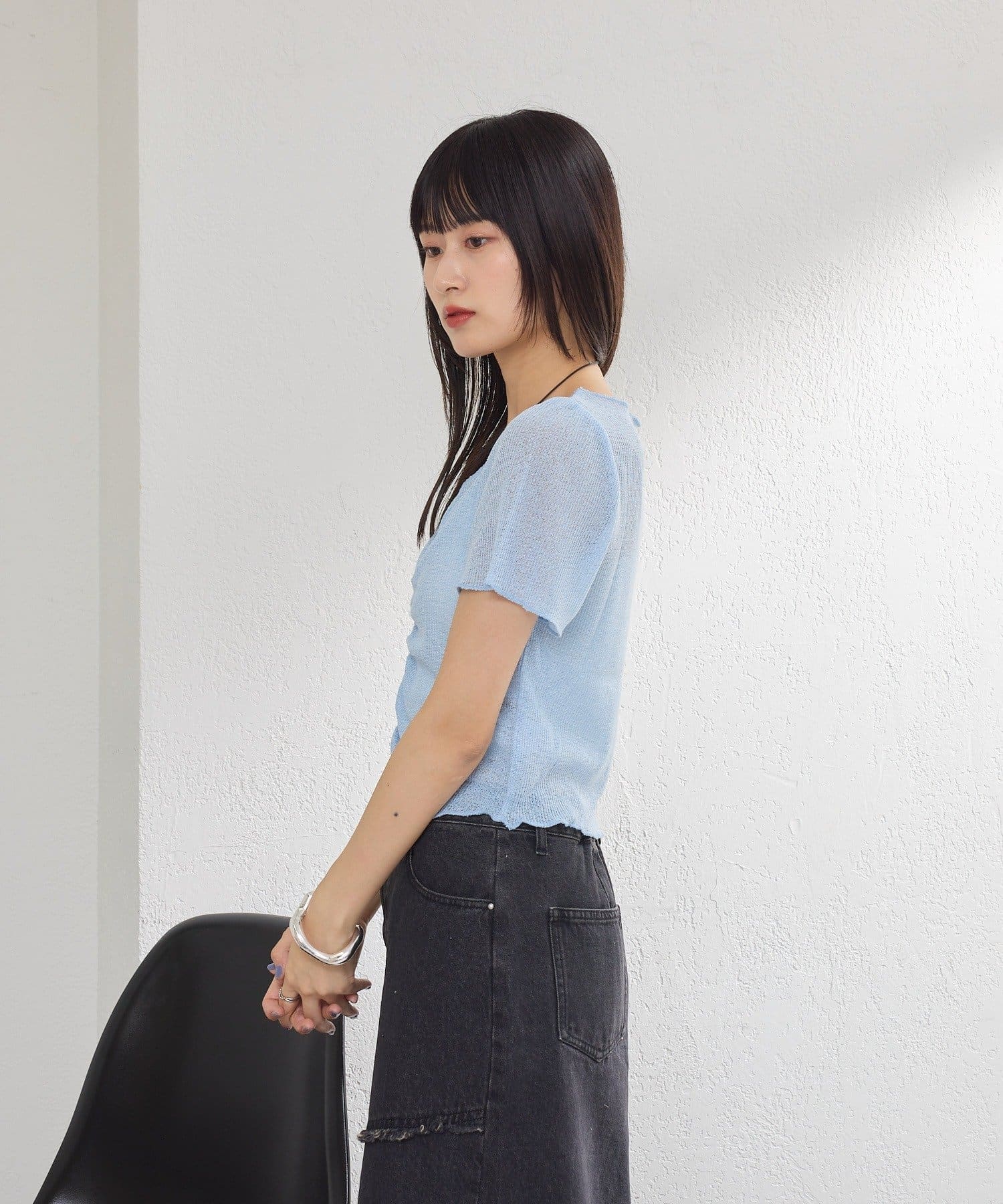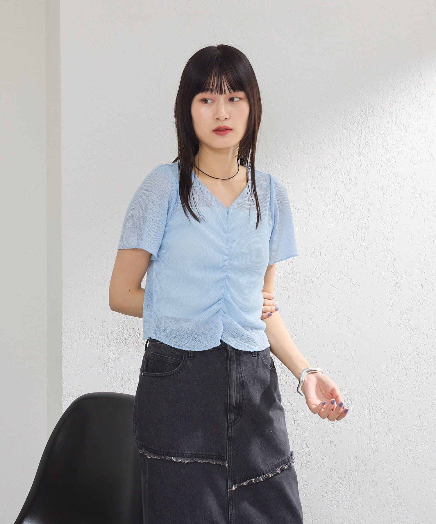 程良く透け感があり、トレンドも取り入れつつ女性らしい印象を与えてくれる一枚。