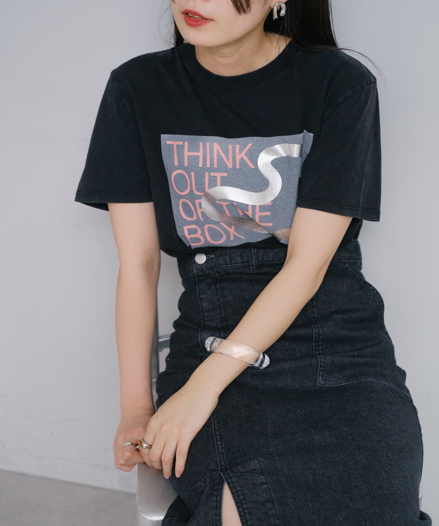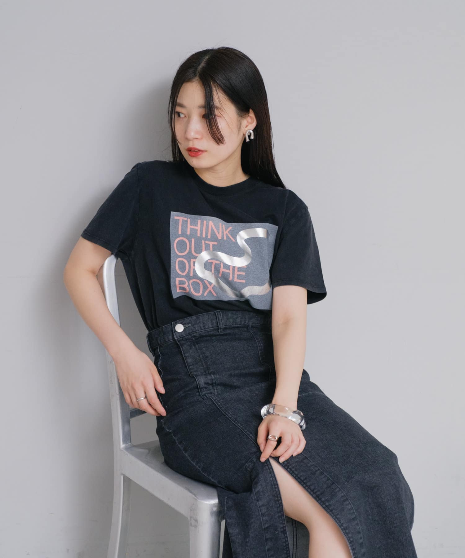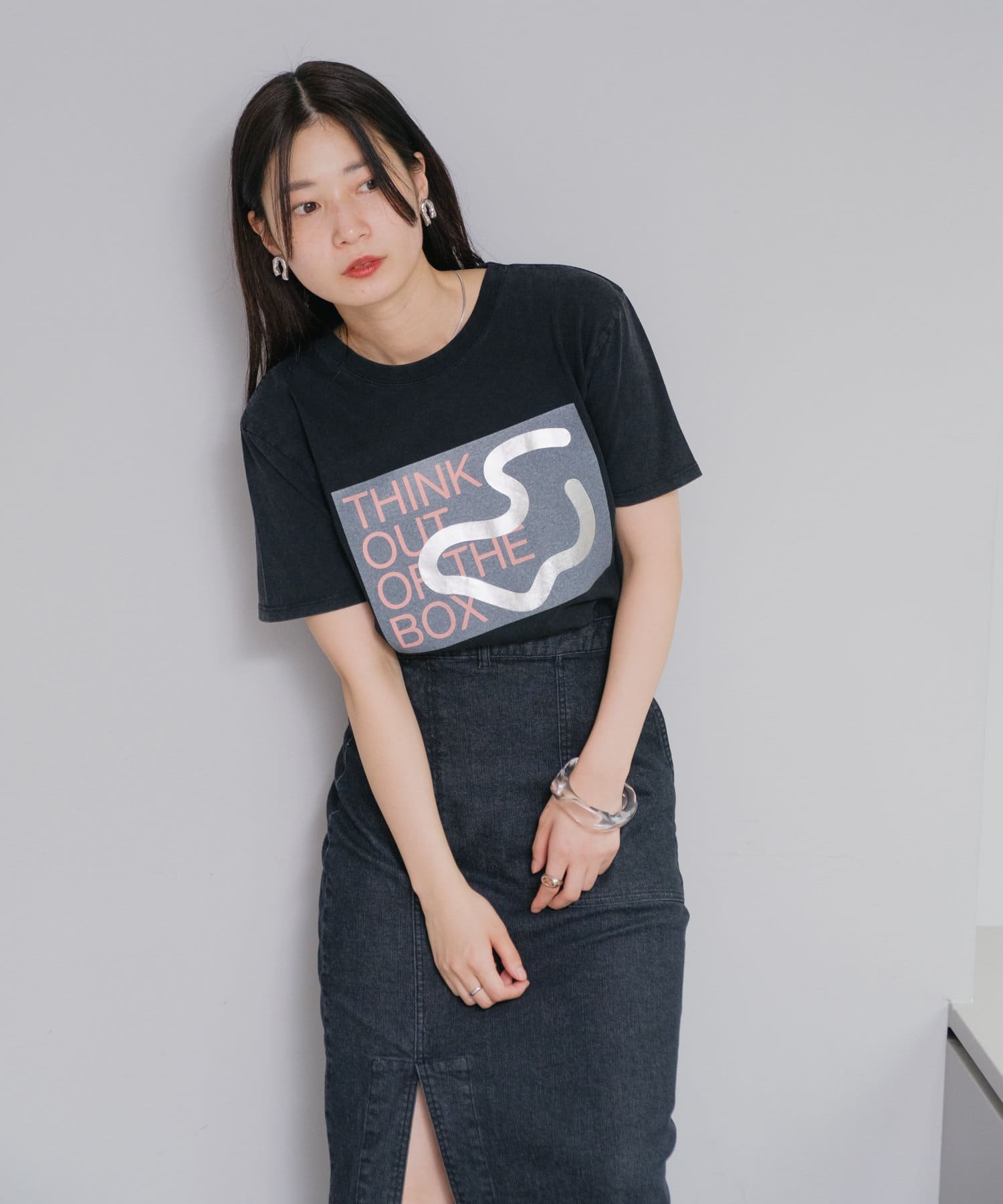中央の大きめロゴデザインがポイントのTシャツ。