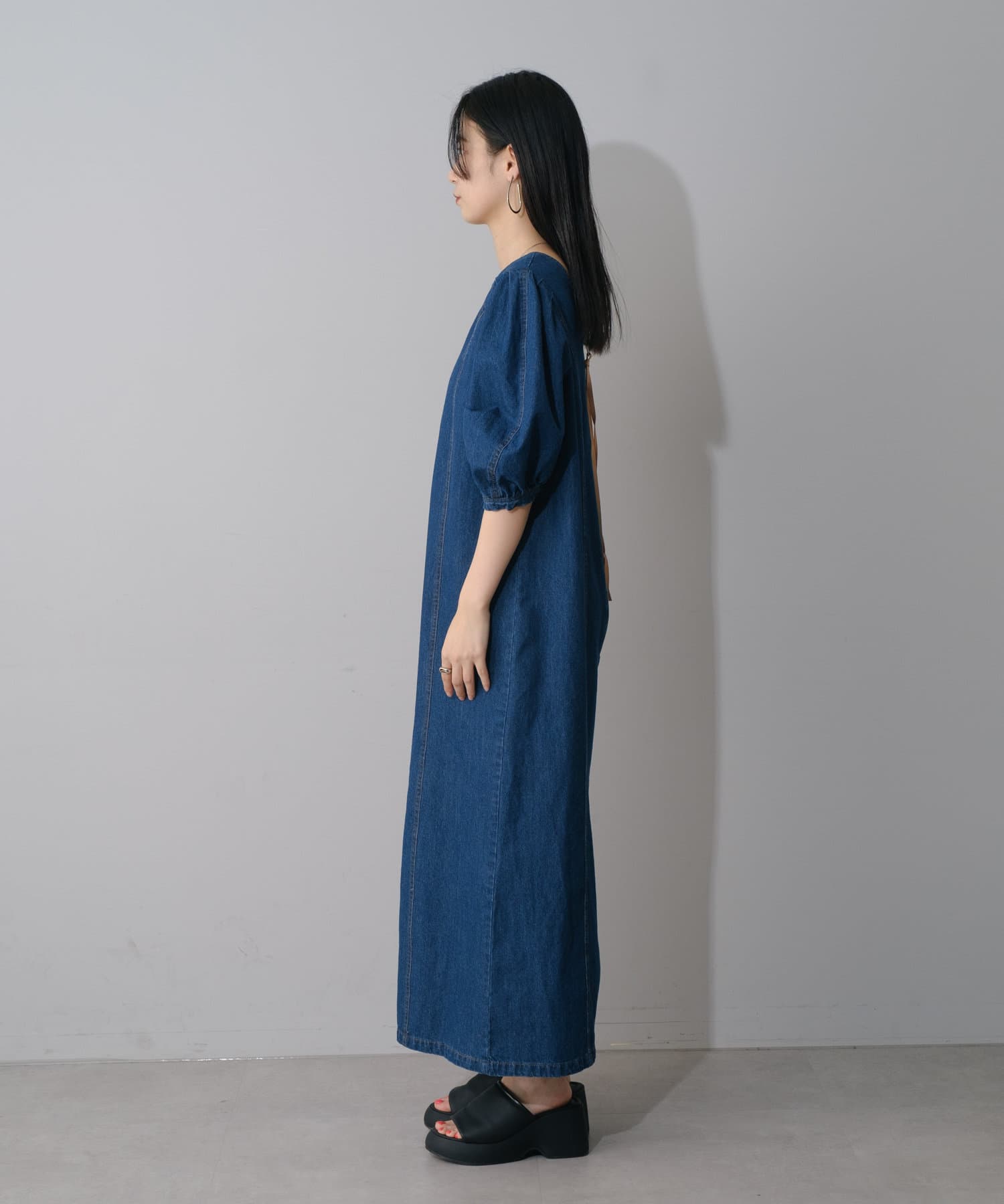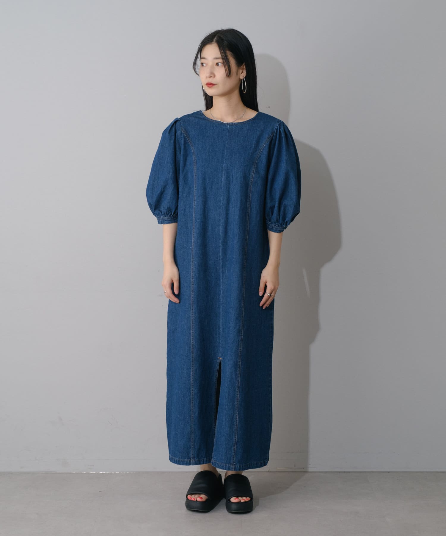 トレンドのデニムに袖のボリュームが女性らしいワンピース。