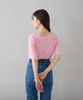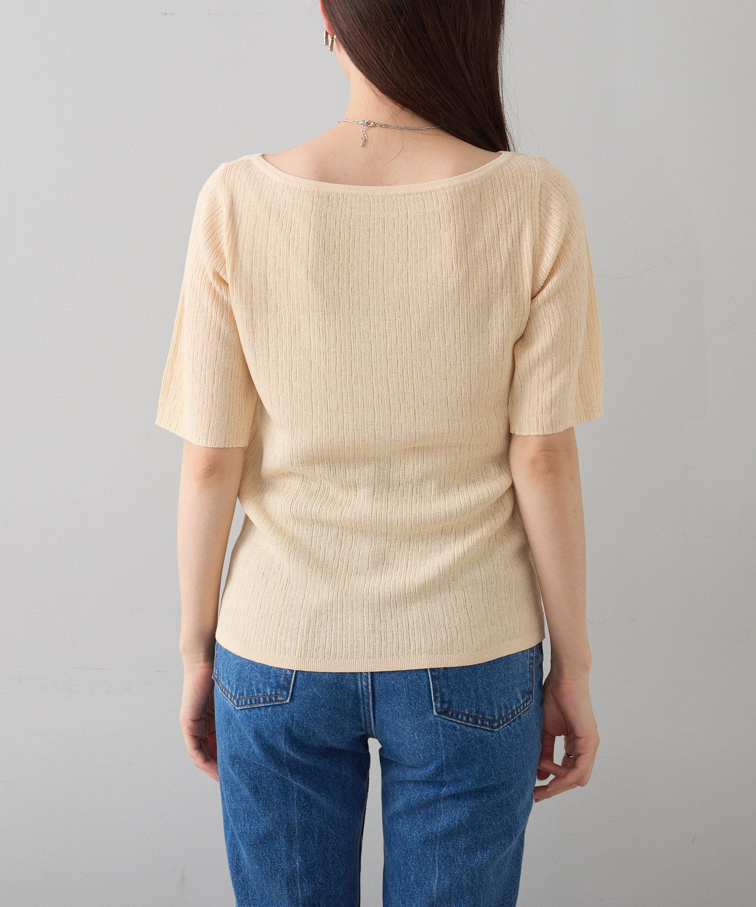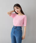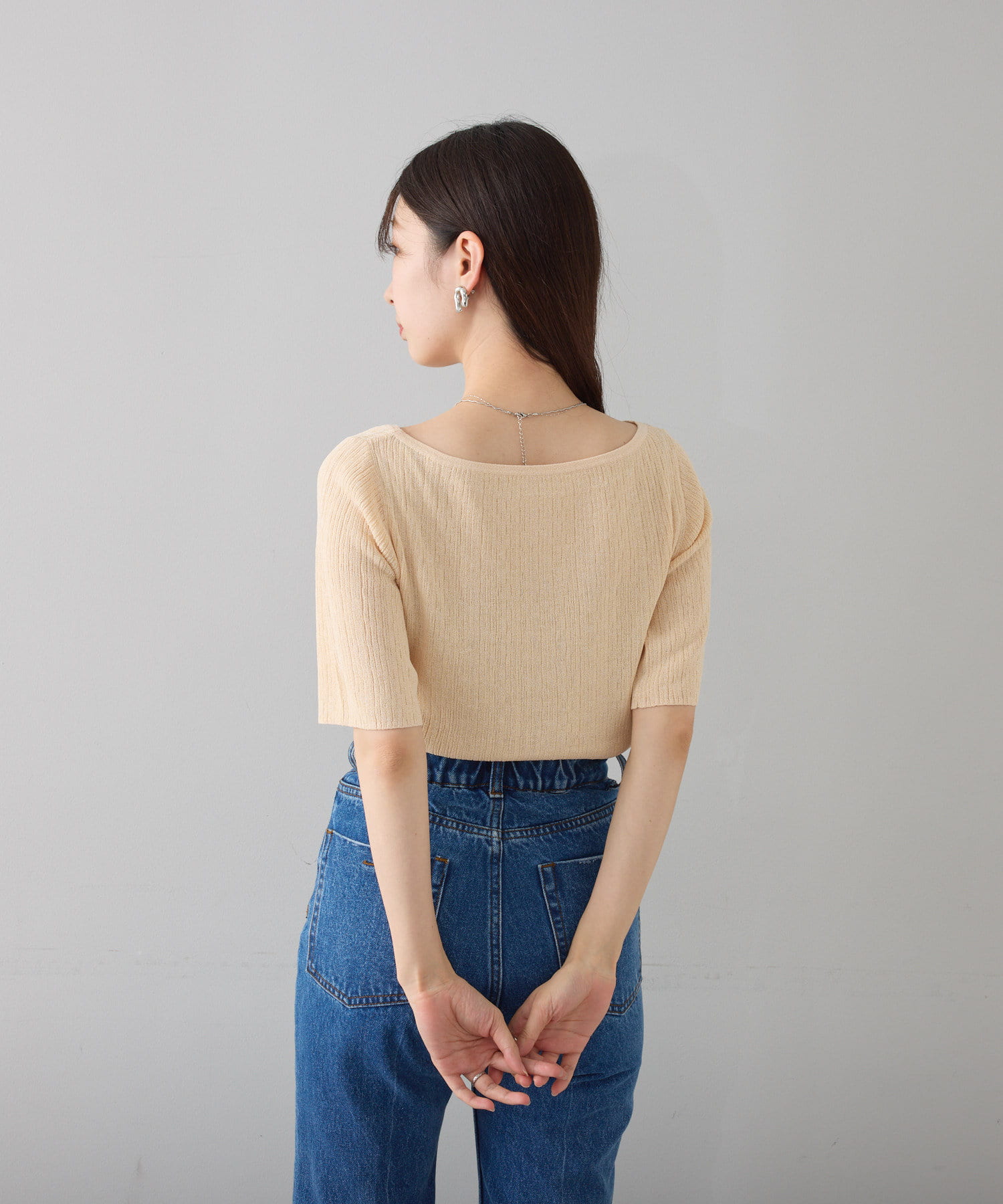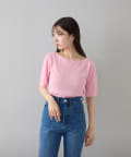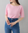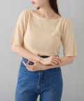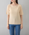 すっきりとしたボートネックが、女性らしさを引き立てます。