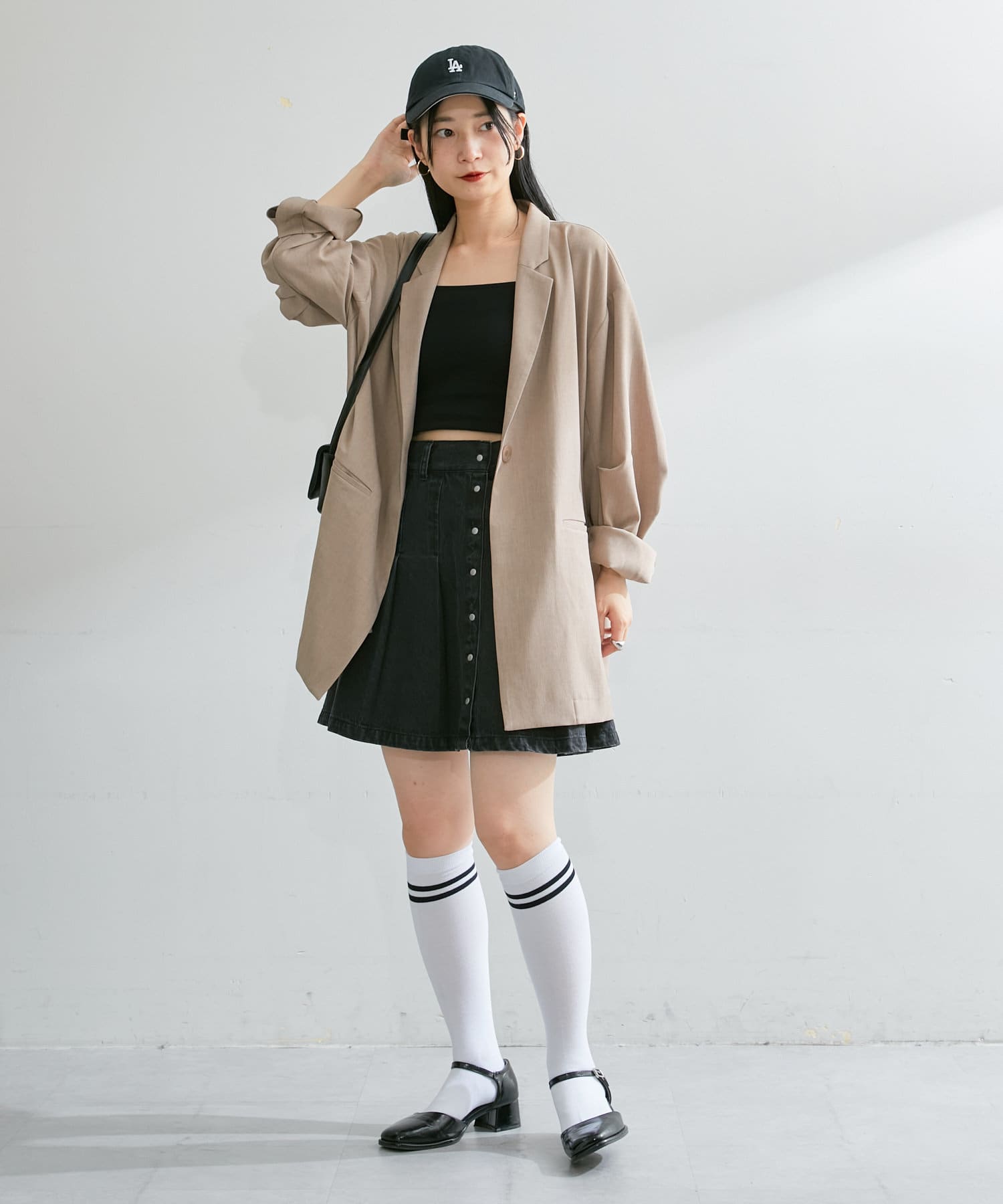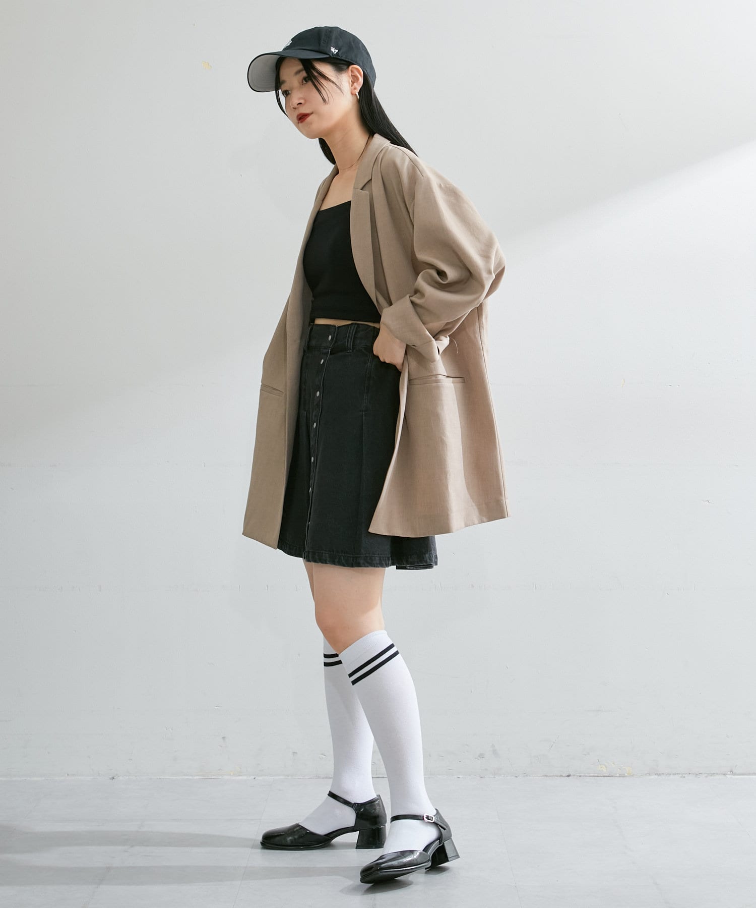 ハイウエストかつ広がり過ぎないシルエットは脚長効果もあり、ヒップラインも高めに見せてくれます。