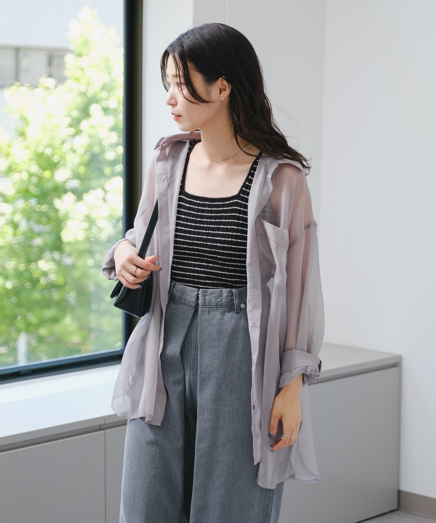 羽織としても、ボタンを締めてメイントップスとしても着用いただける夏に向けて1着はマストなアイテムです。