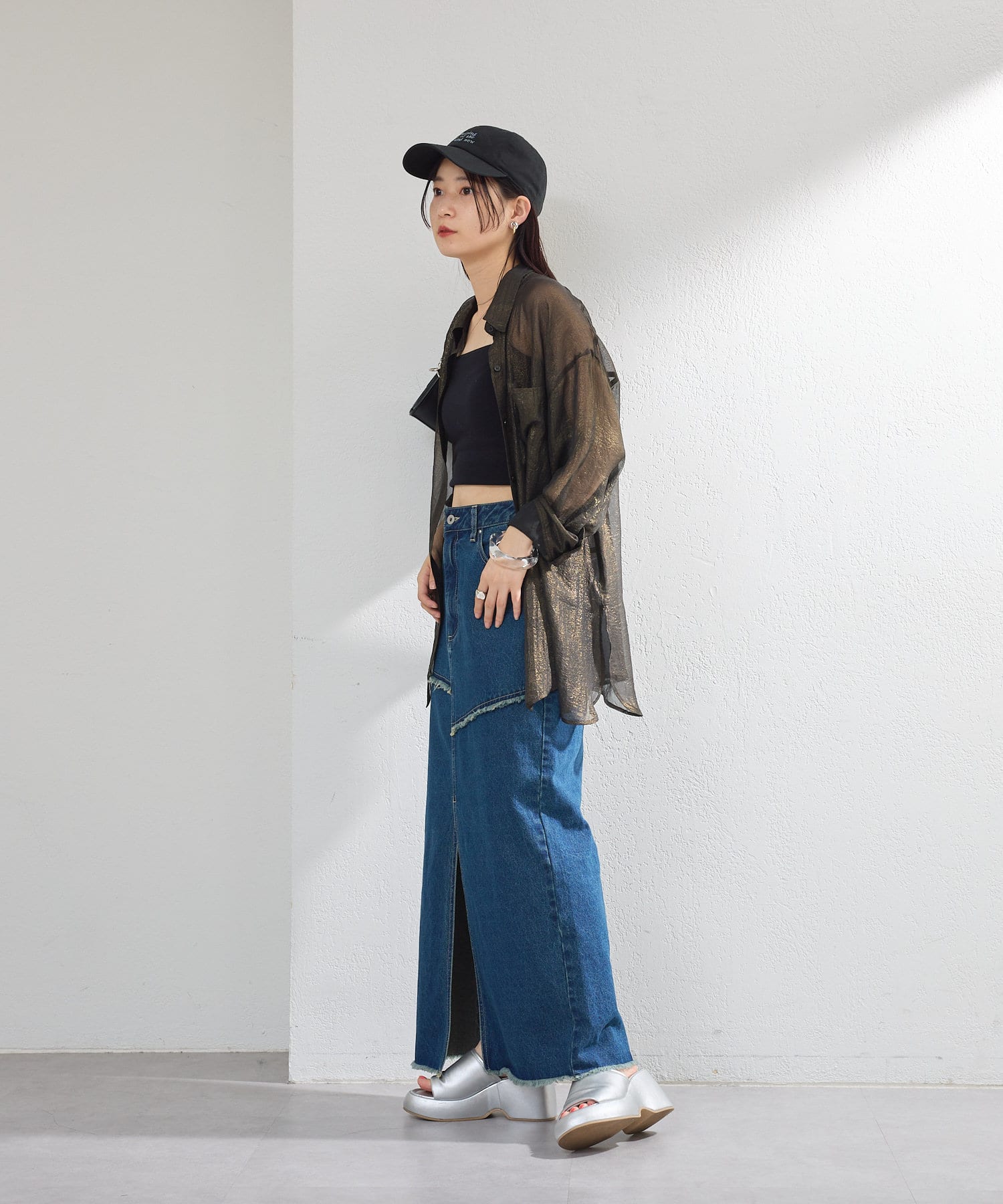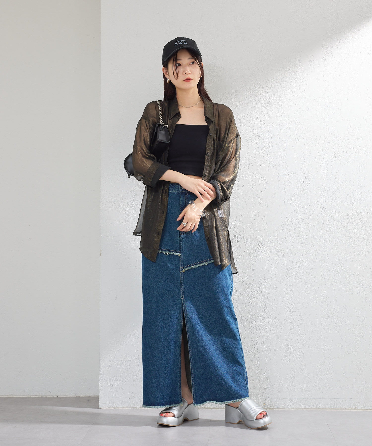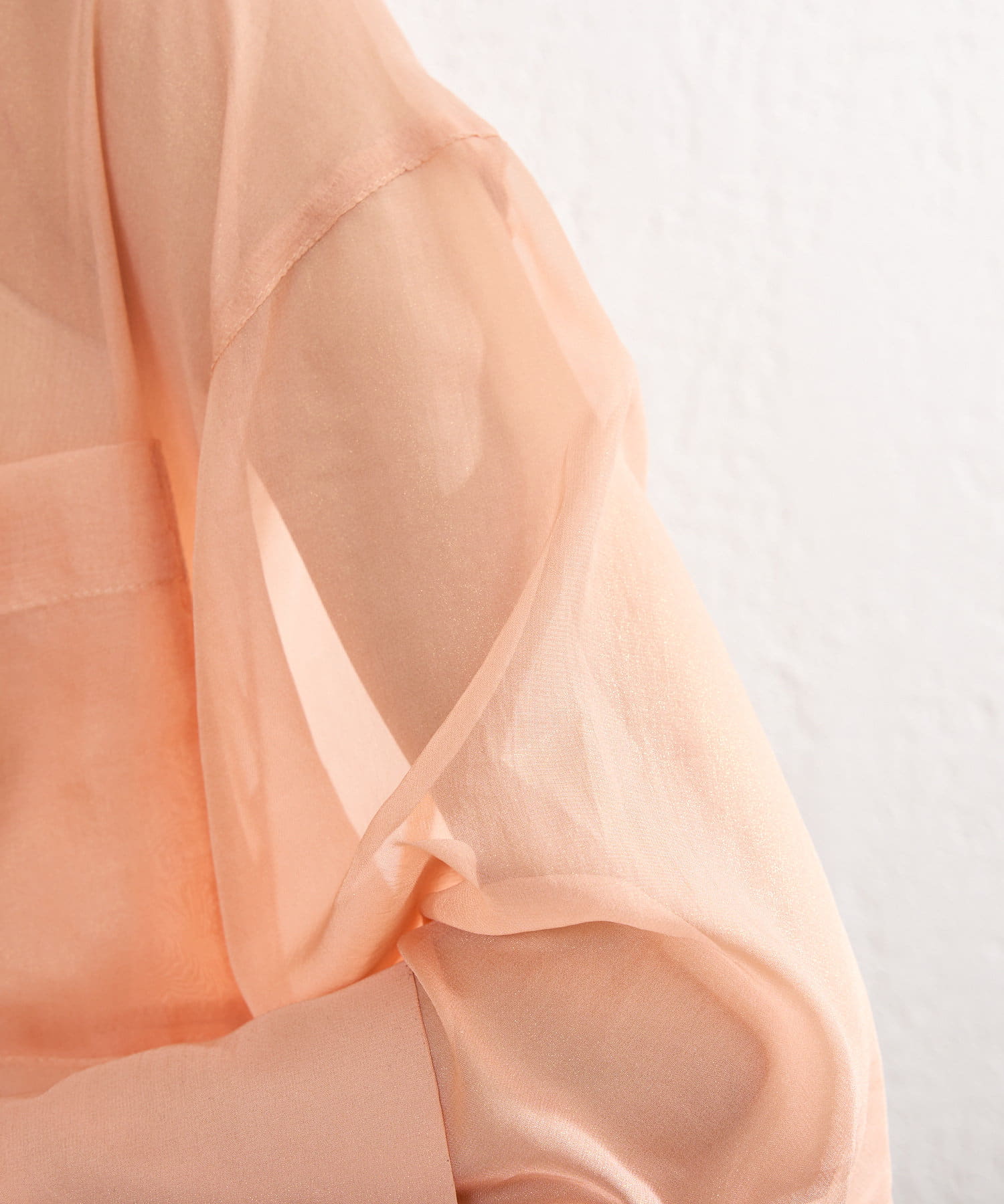 程よいラメの光沢感と動く度にひらりと広がる繊細なシアー素材が特徴。