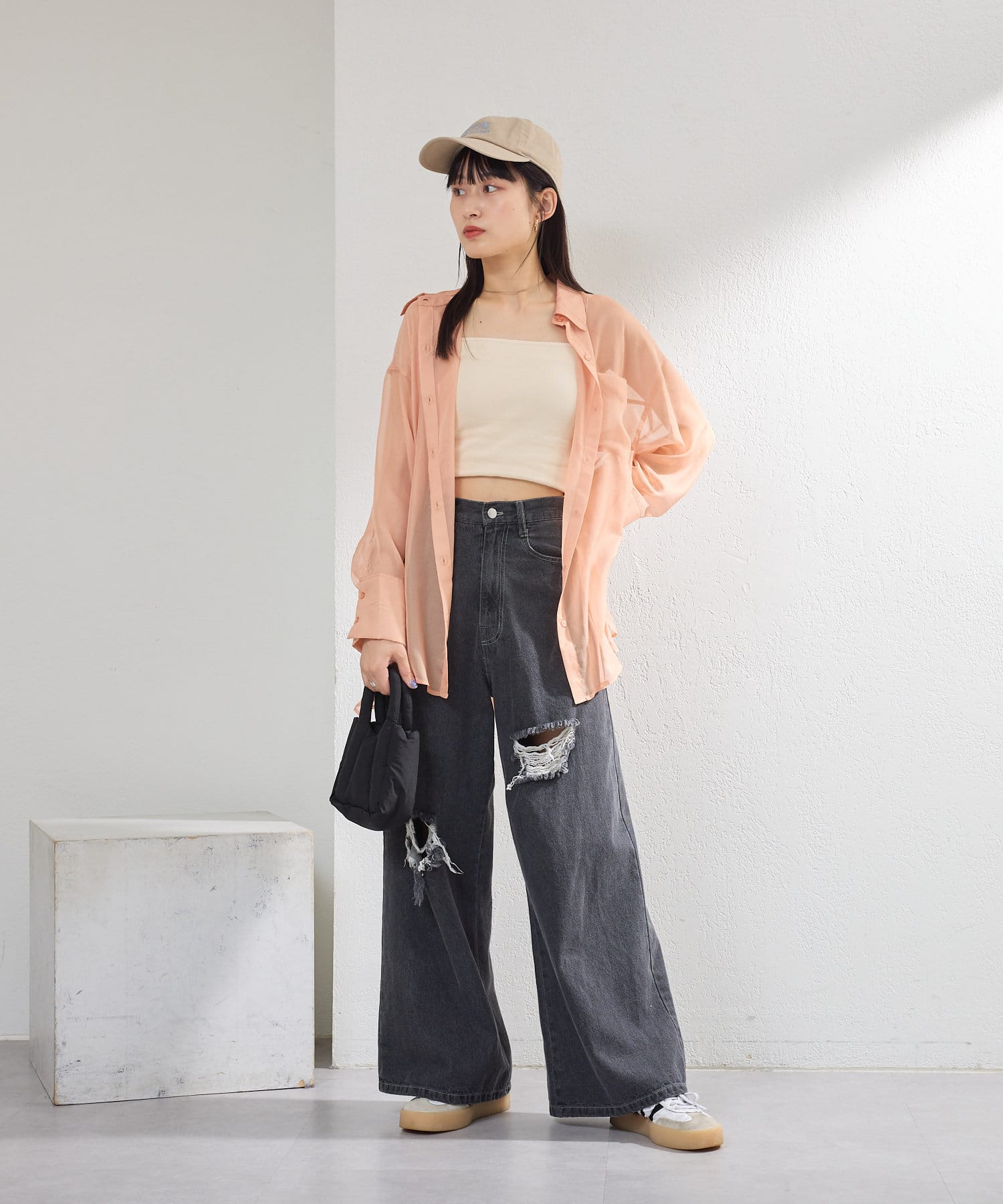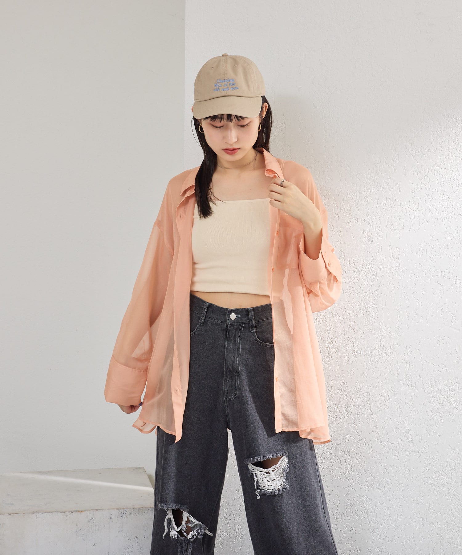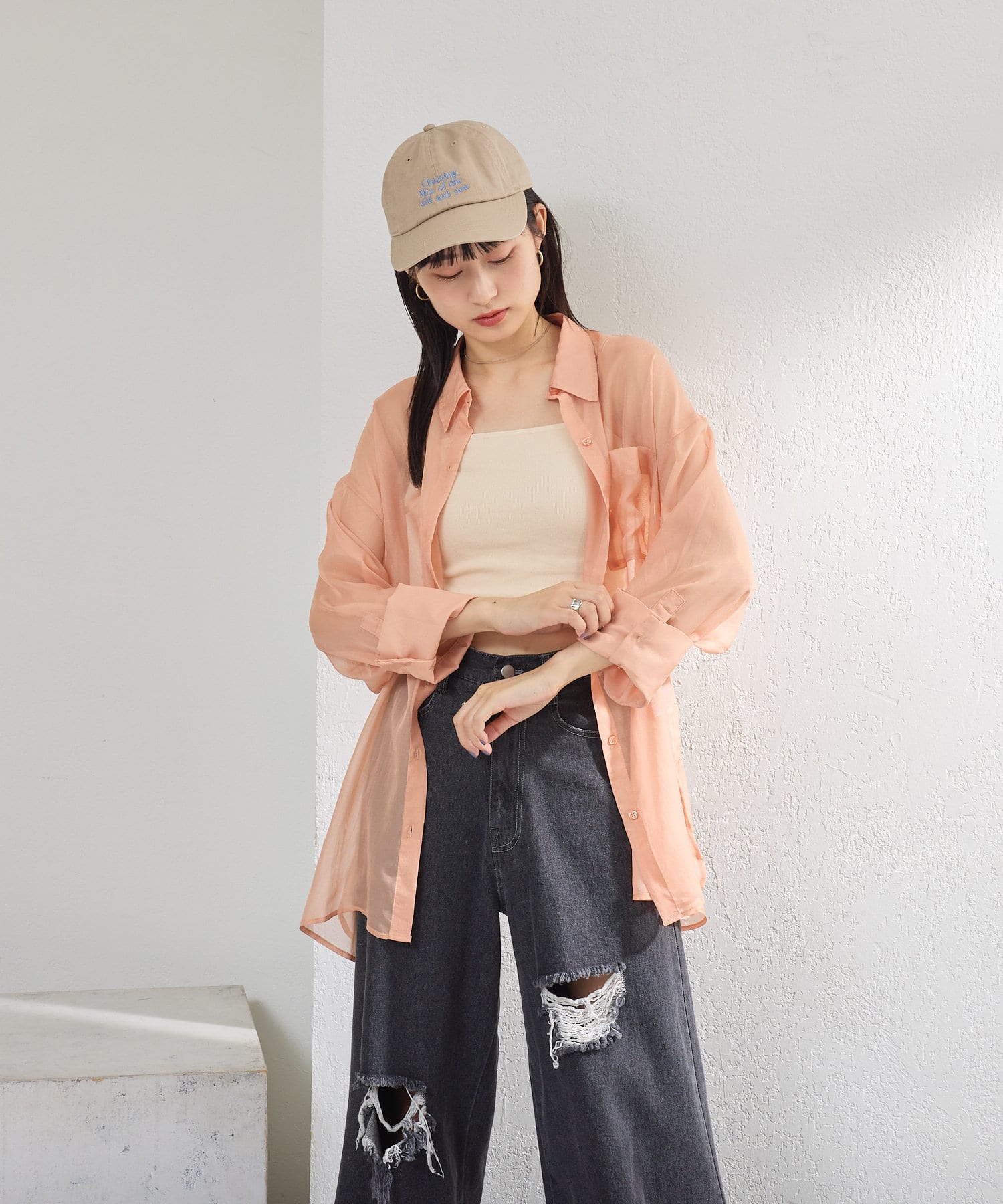 カップ付きキャミソールやタンクトップと合わせていただくことで
