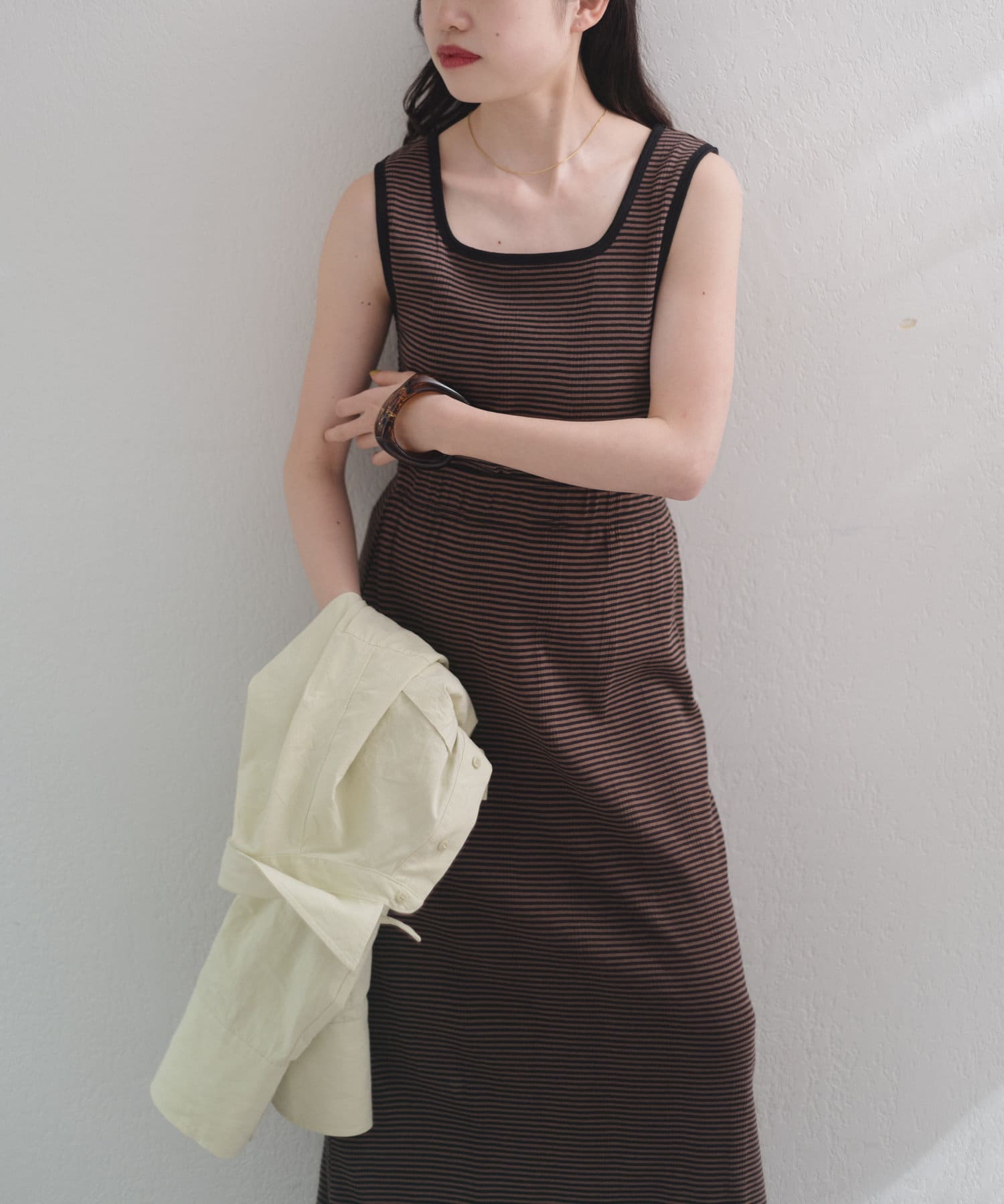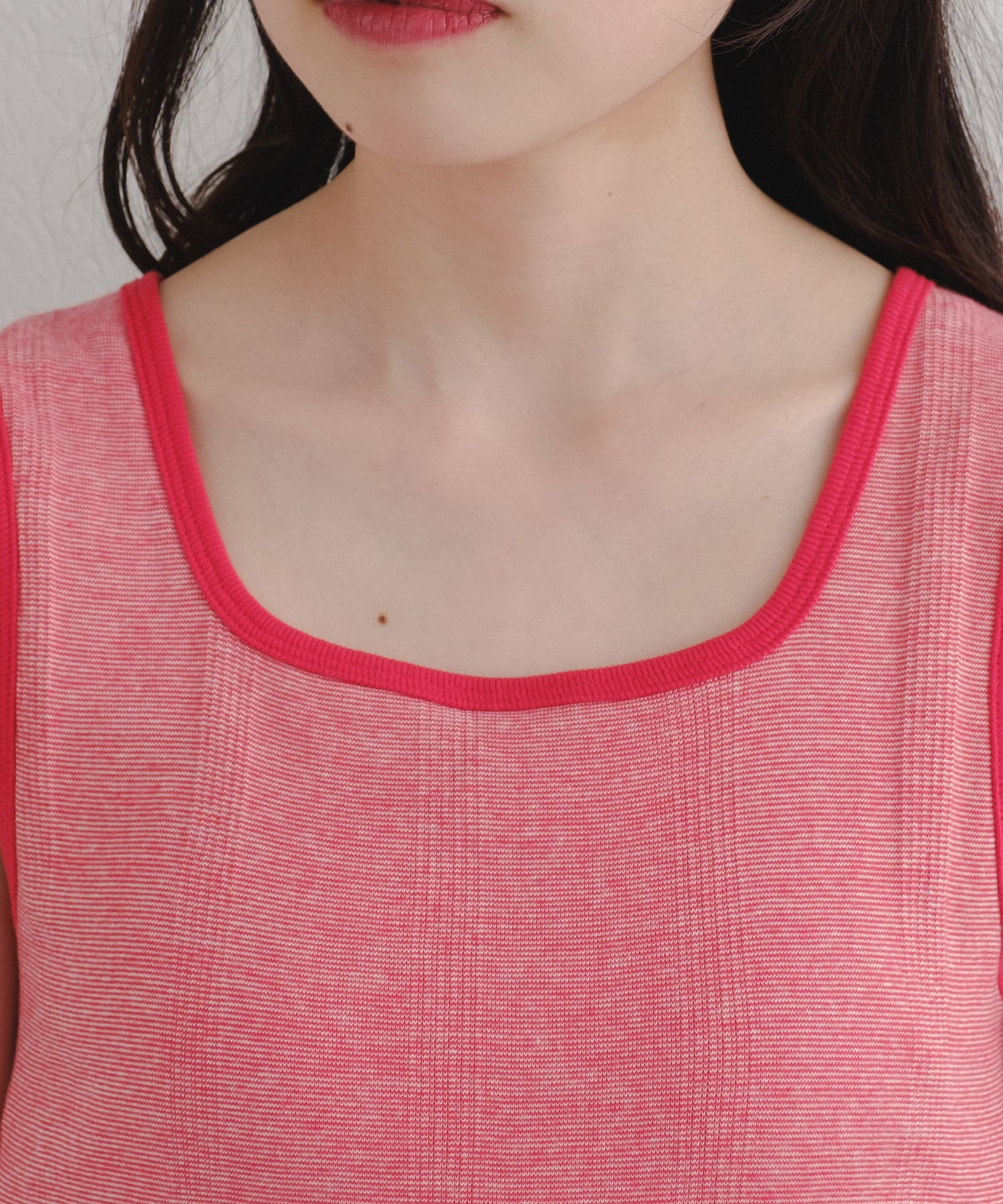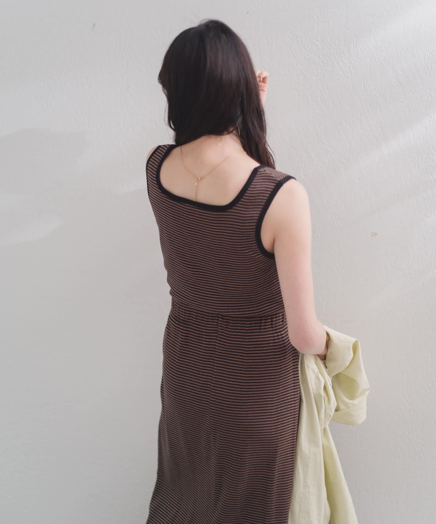 スクエアネックでデコルテラインをスッキリと見せてくれます。