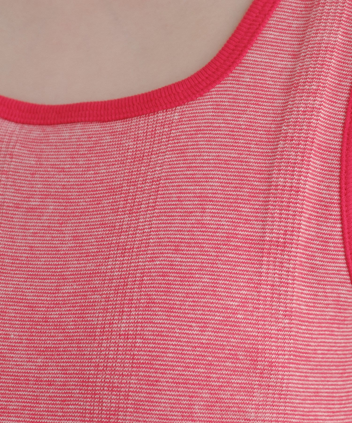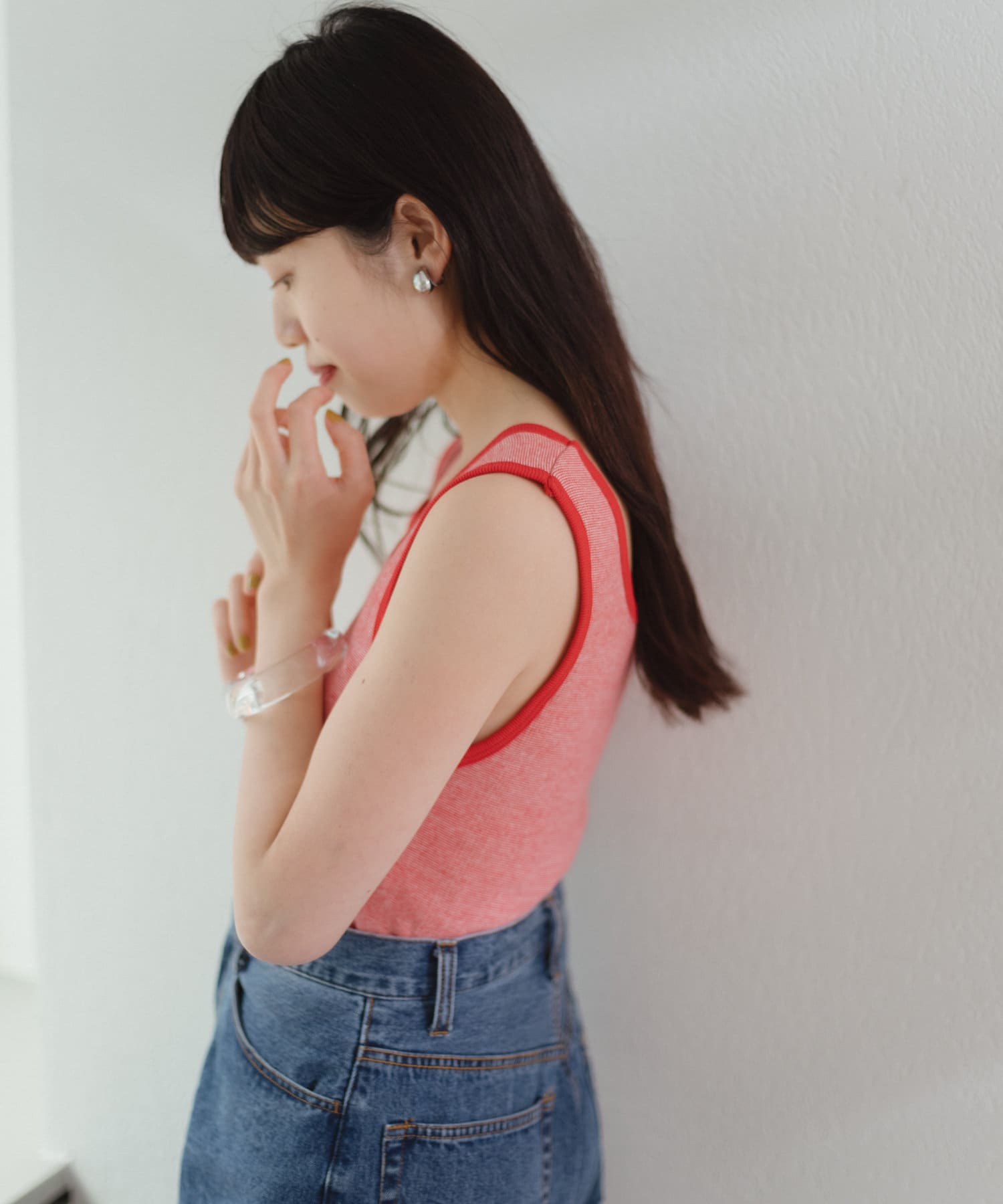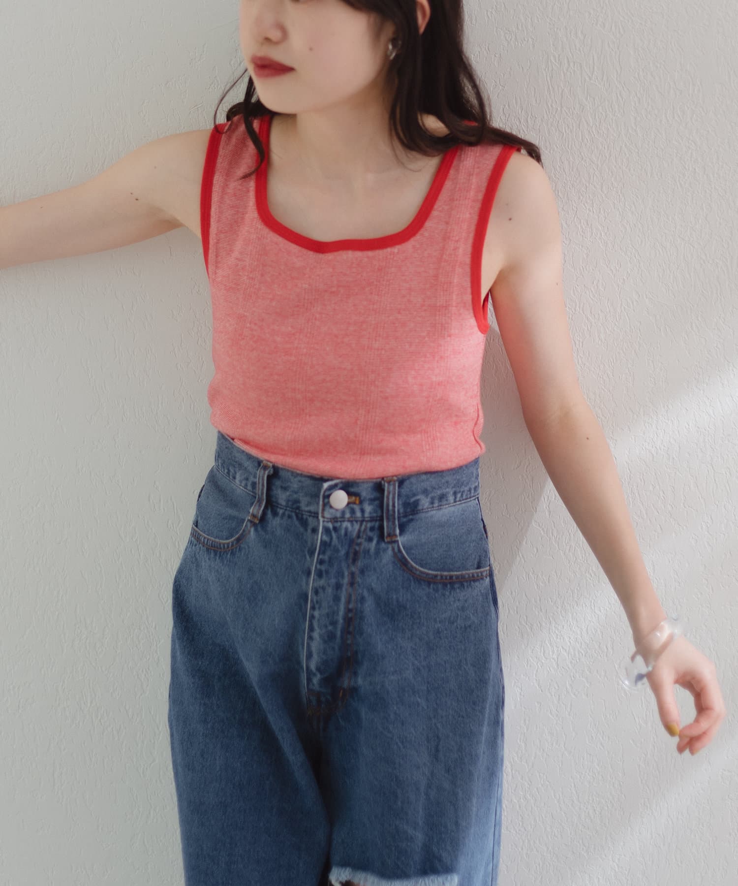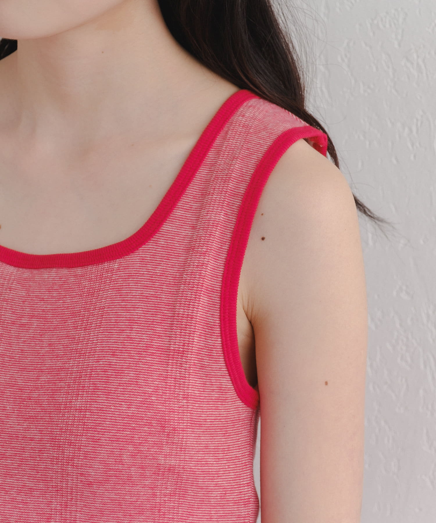 スクエアネックでデコルテラインをスッキリと見せてくれます。