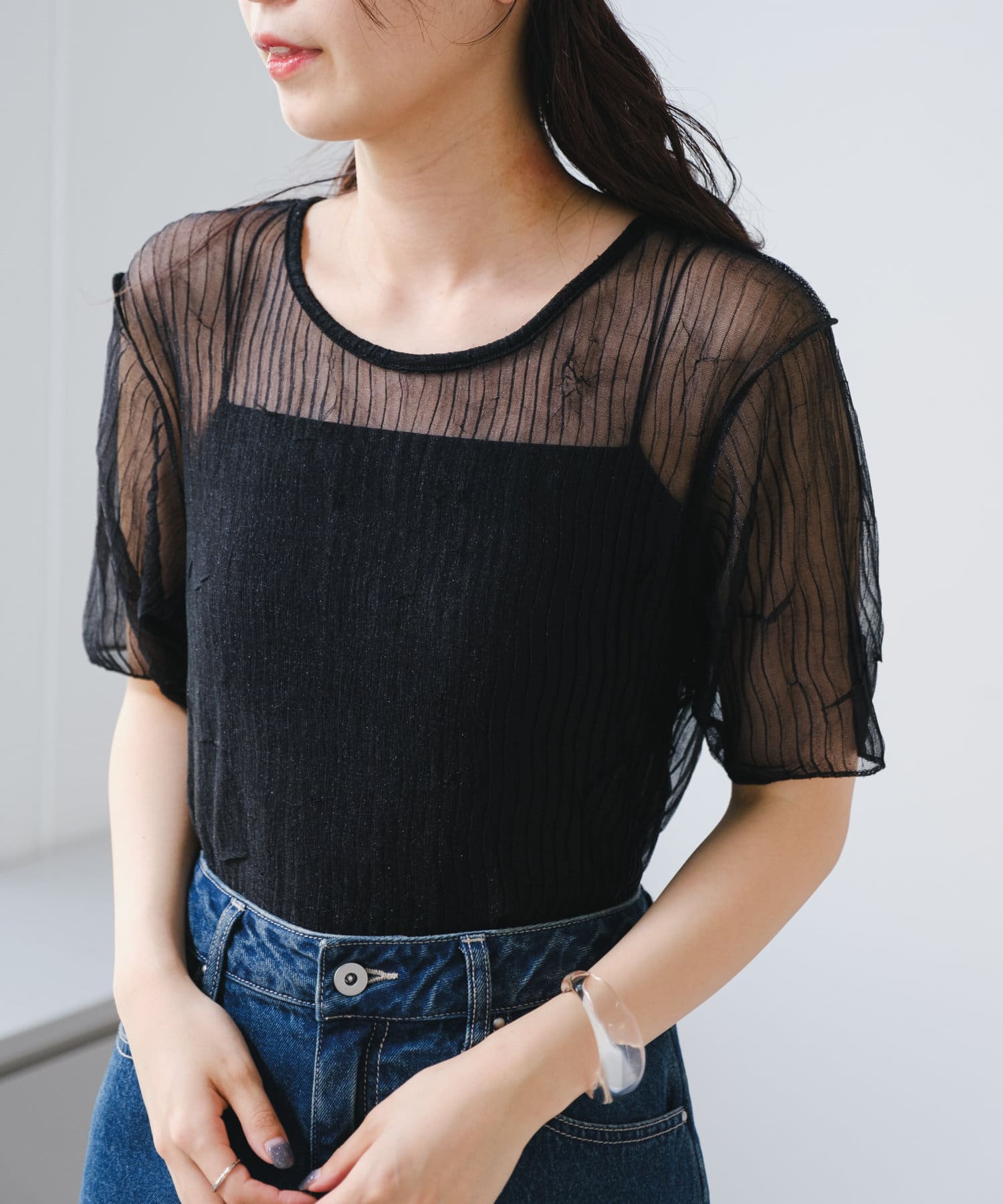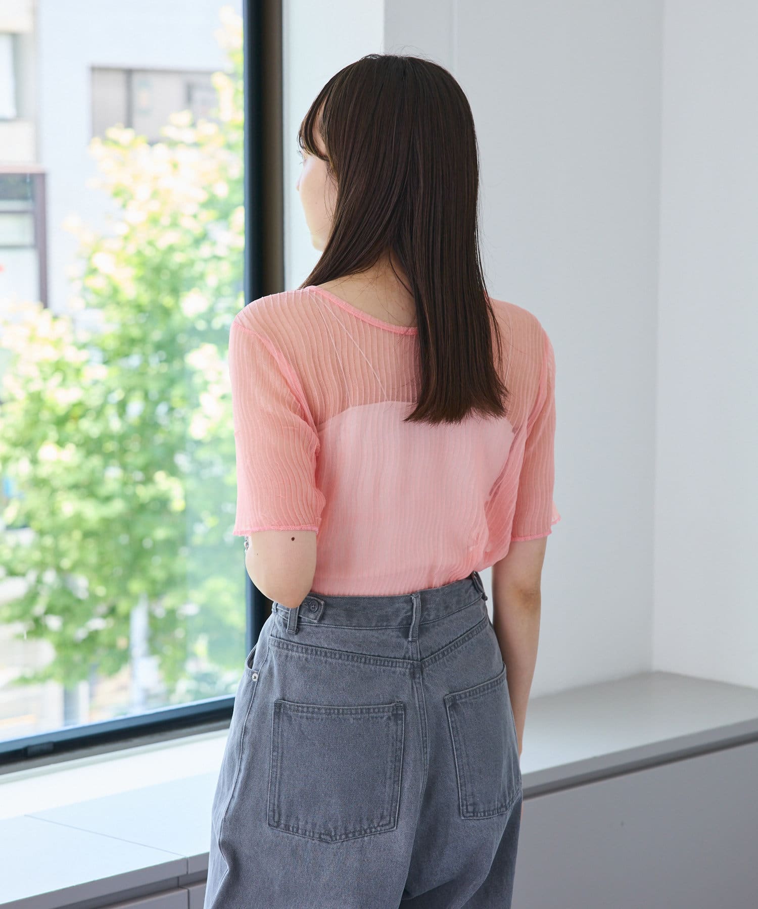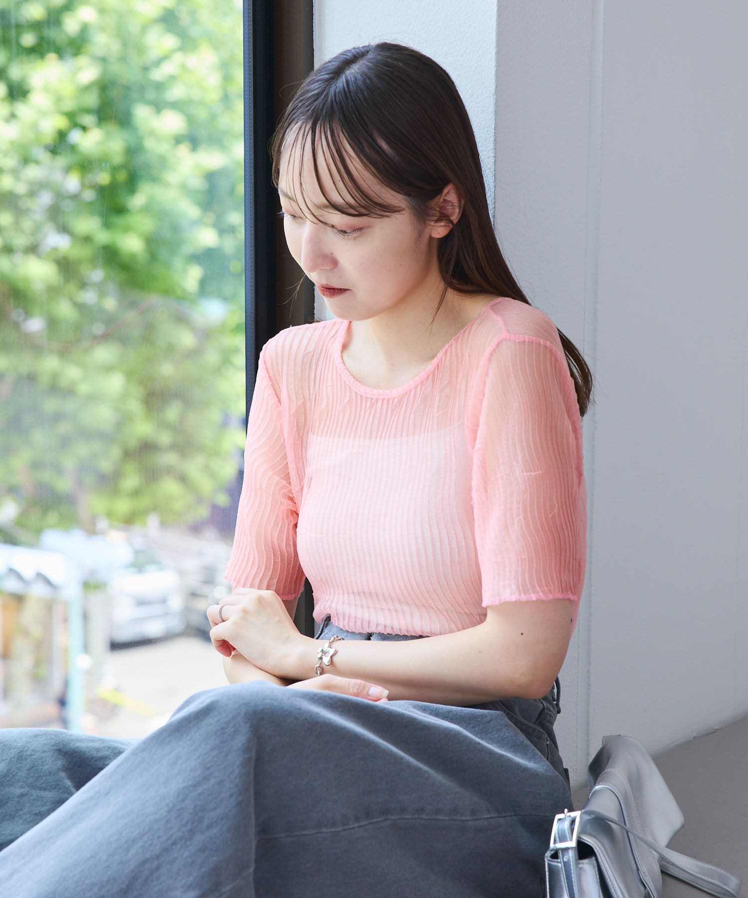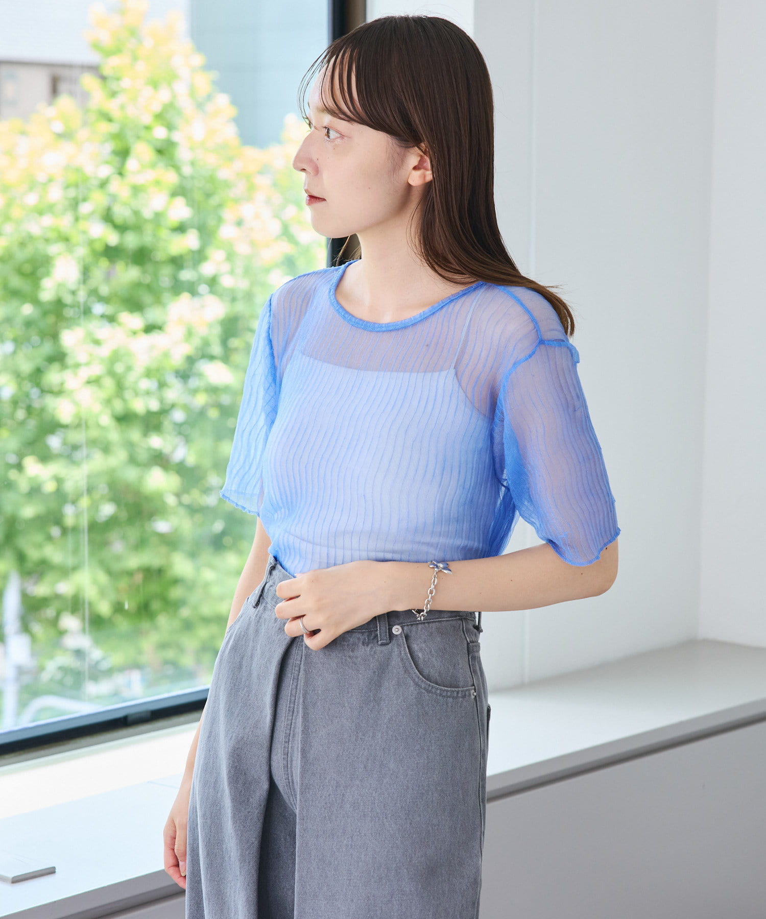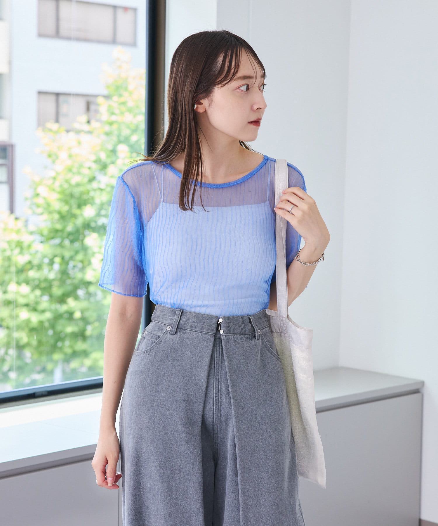 透け感を活かしてインナーとのレイヤードスタイルが楽しめます。