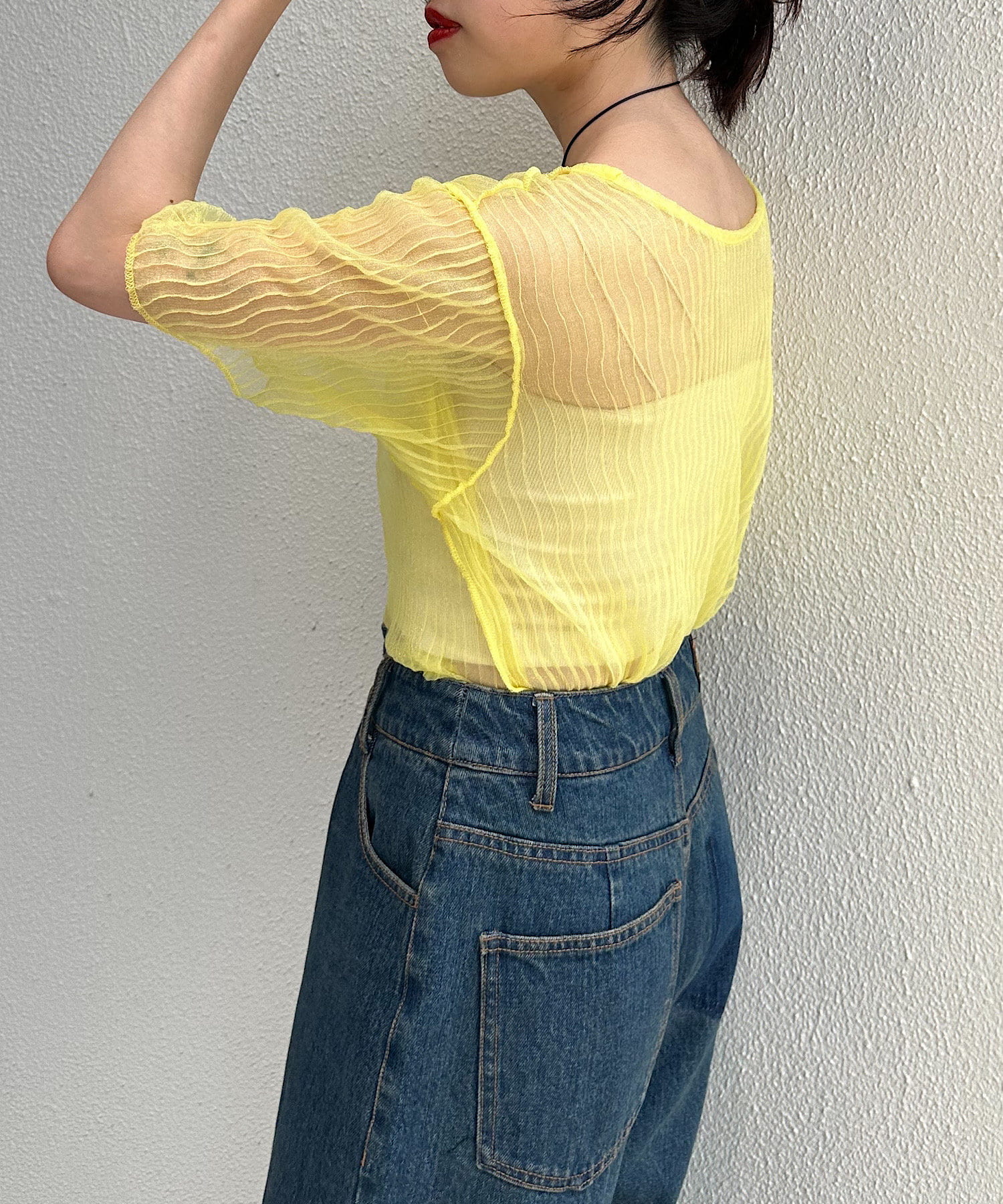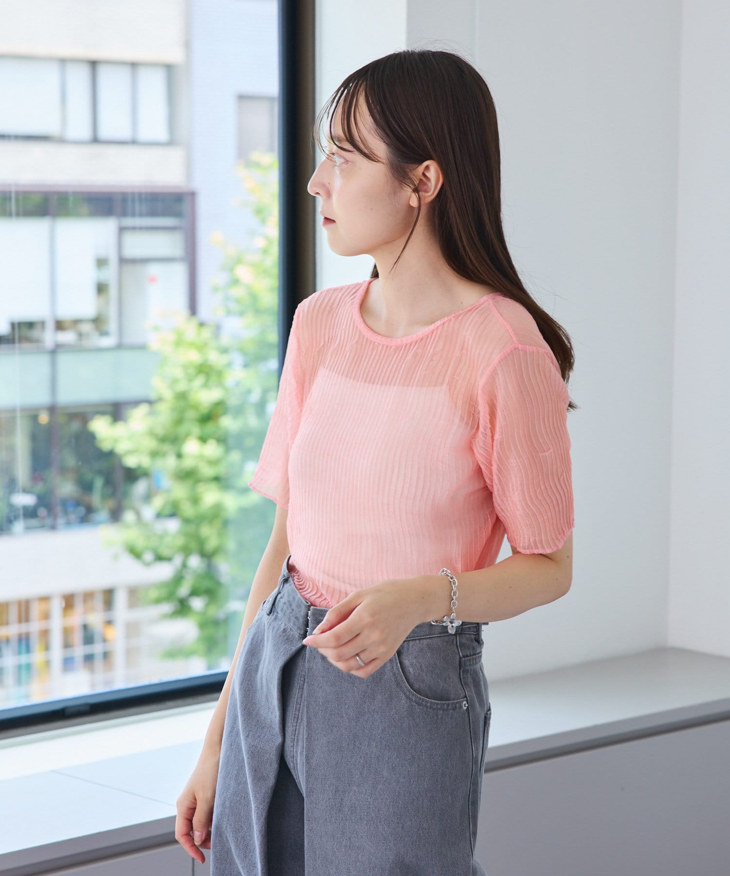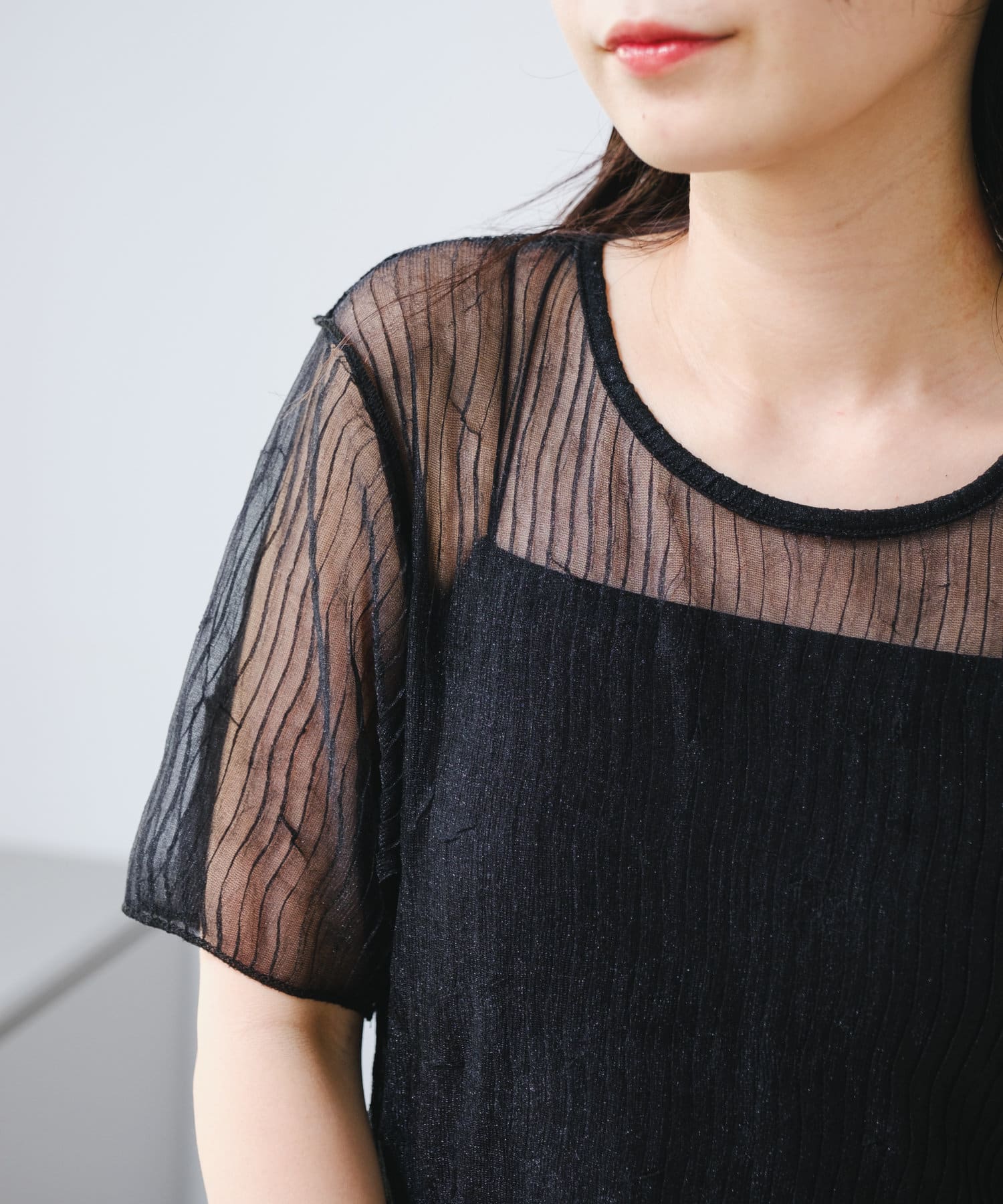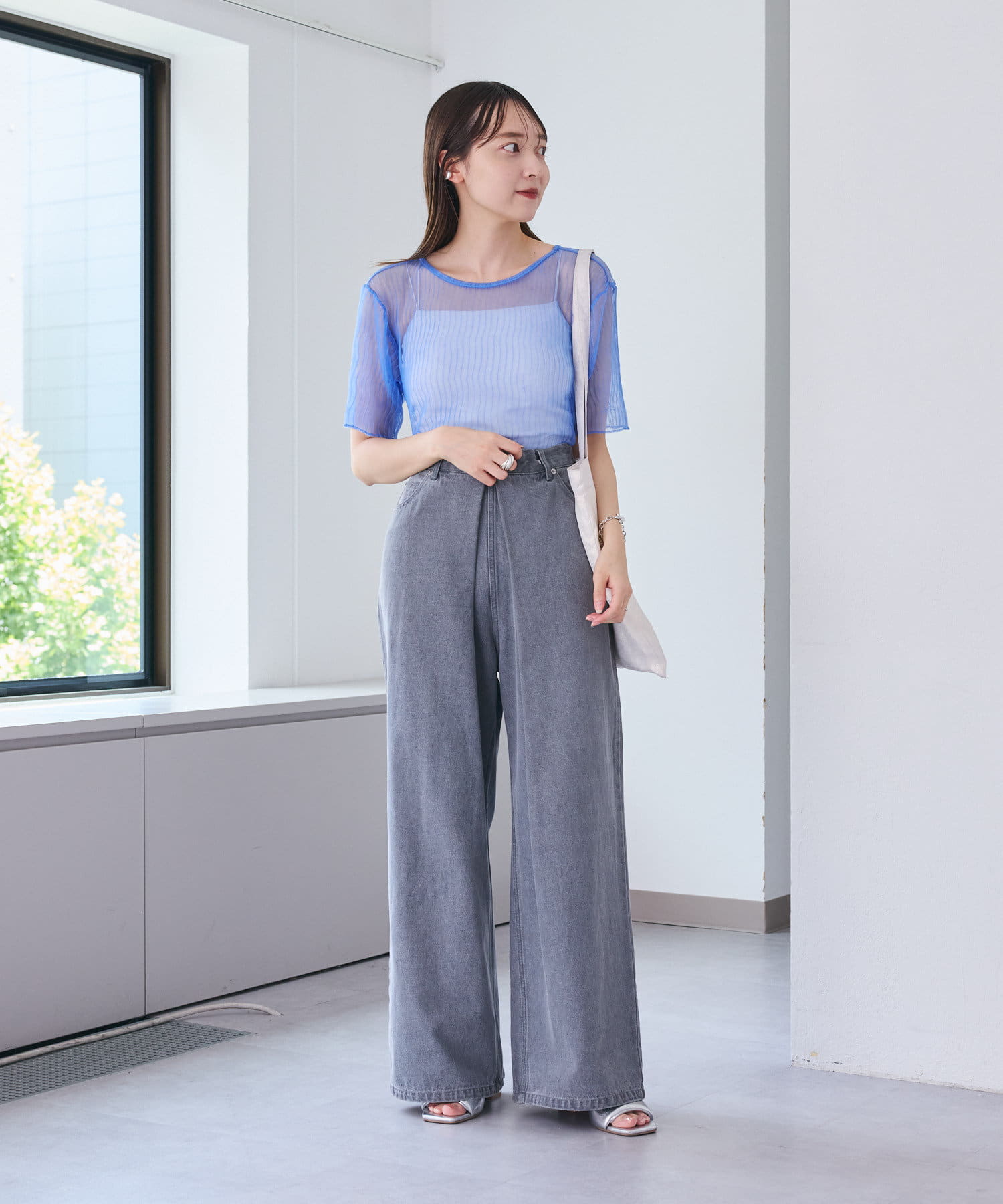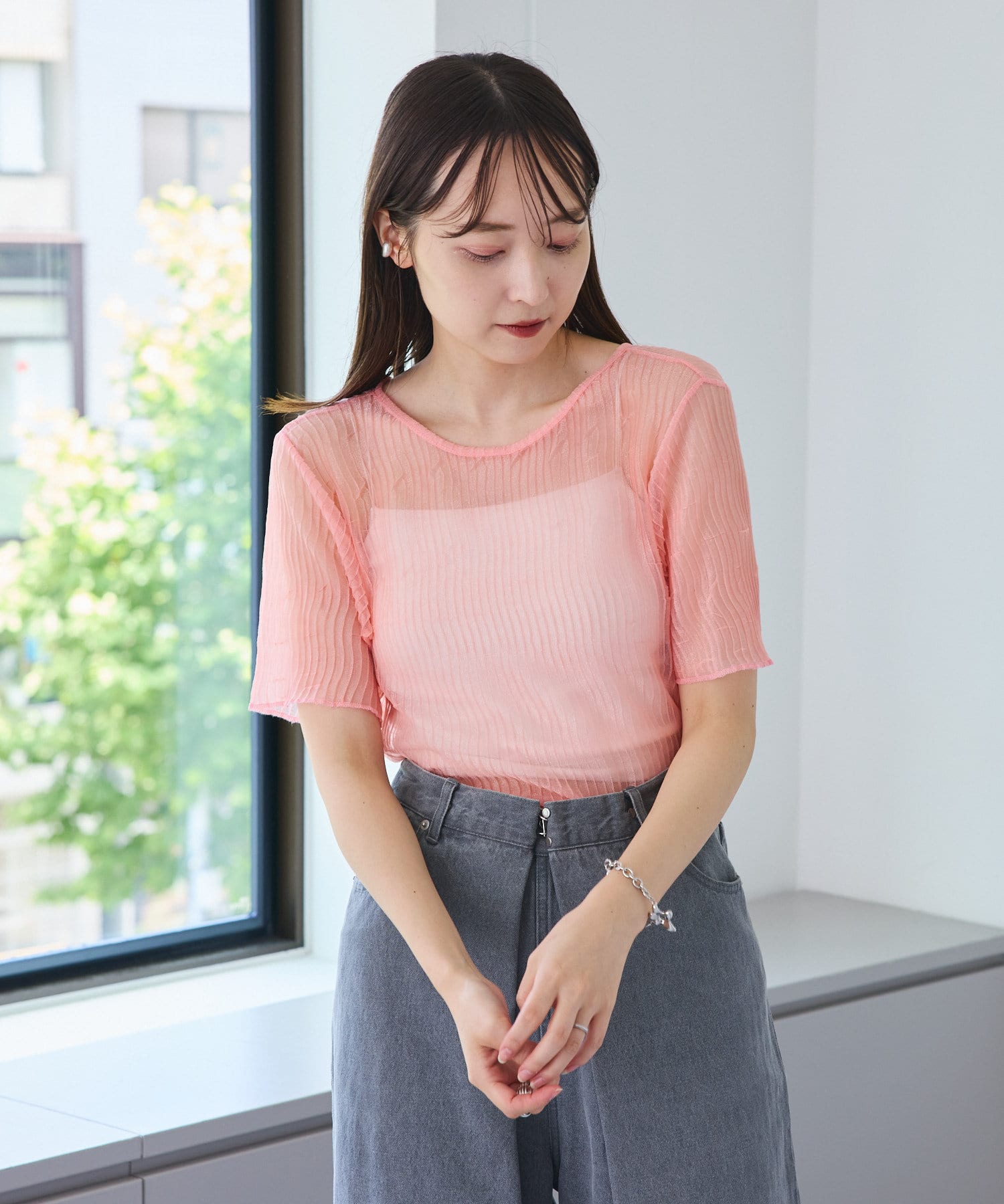 透け感を活かしてインナーとのレイヤードスタイルが楽しめます。