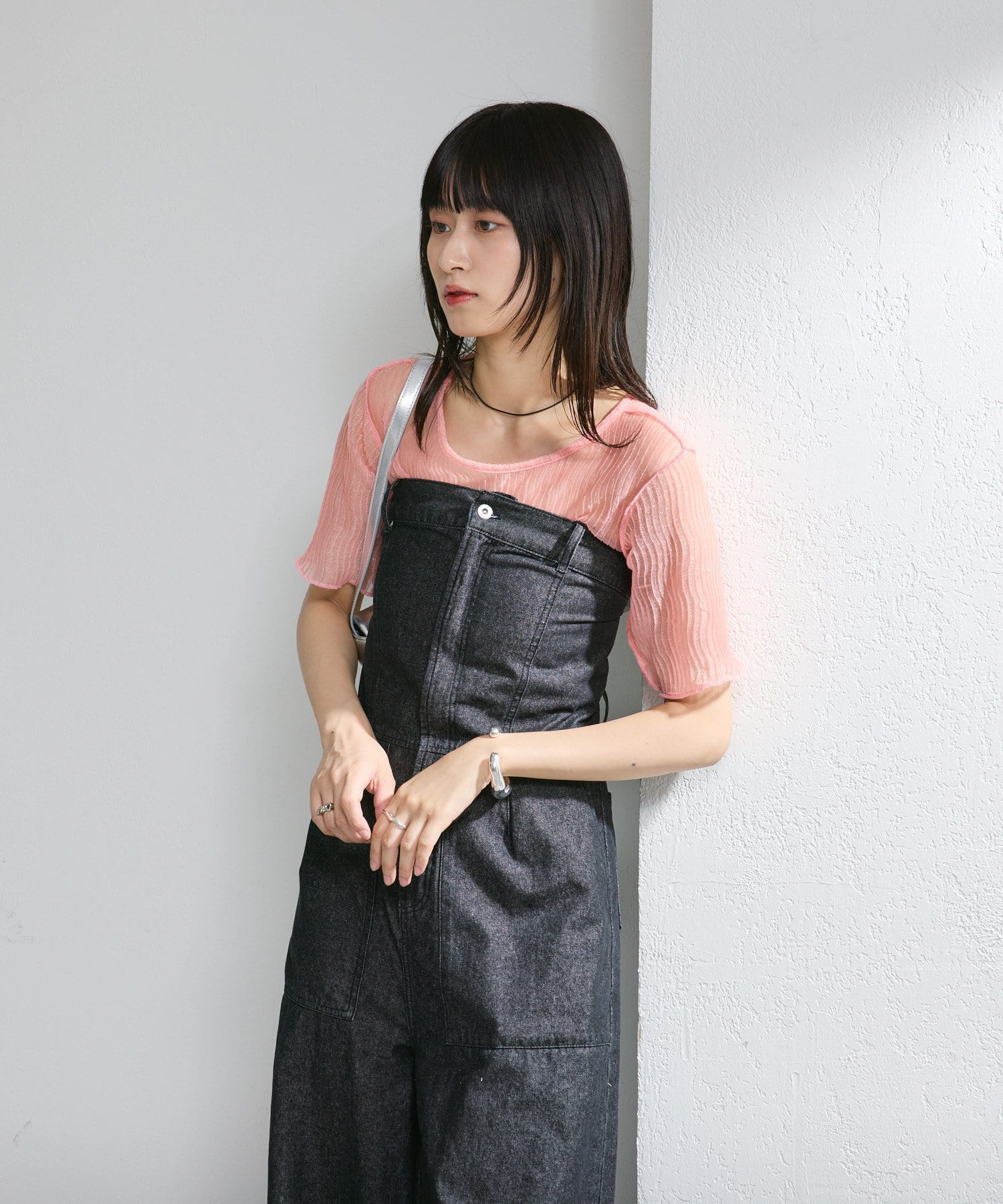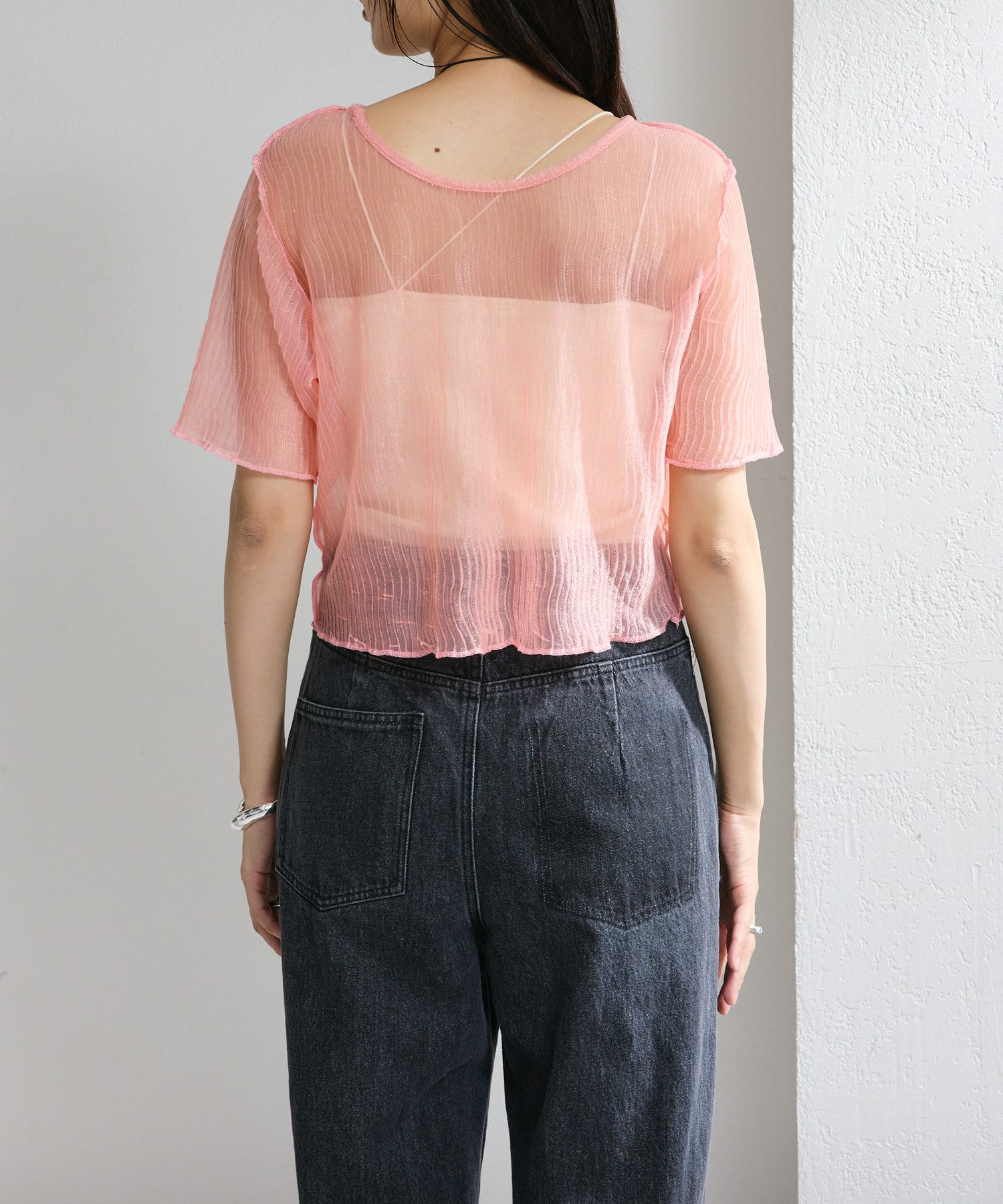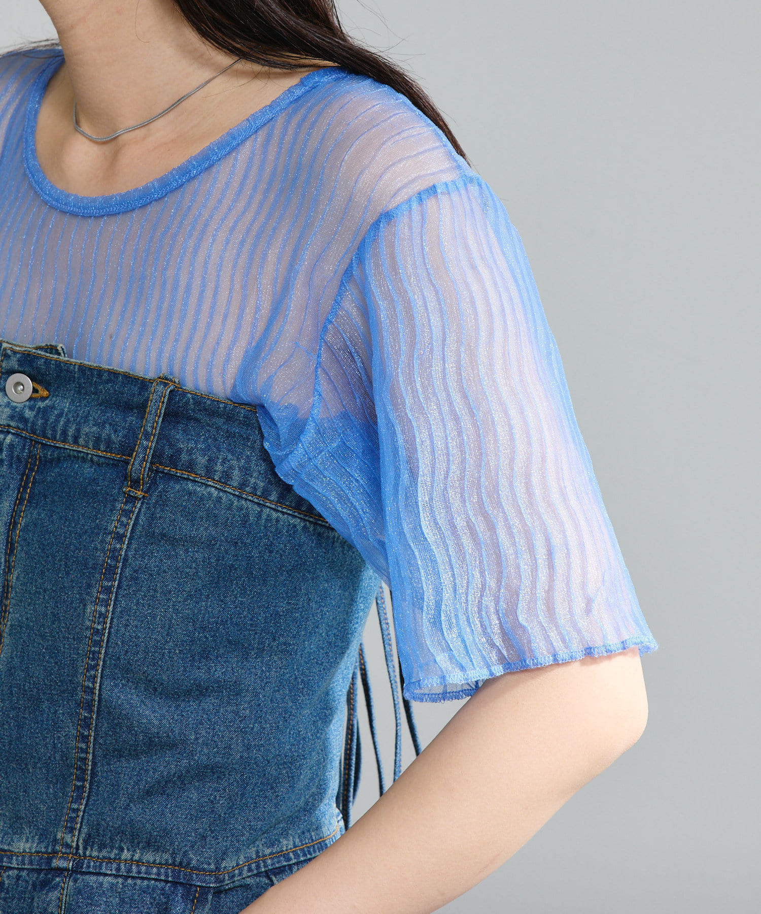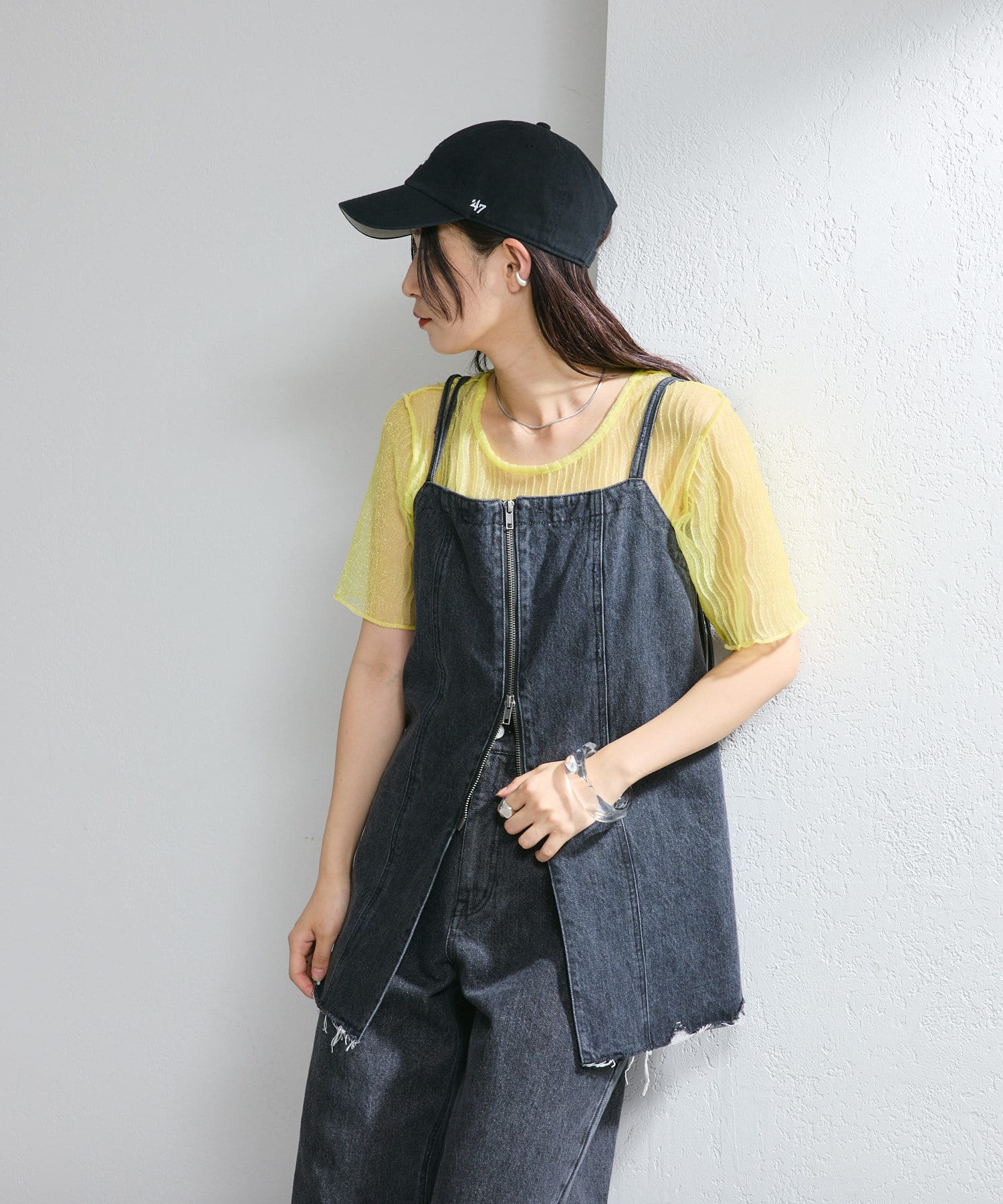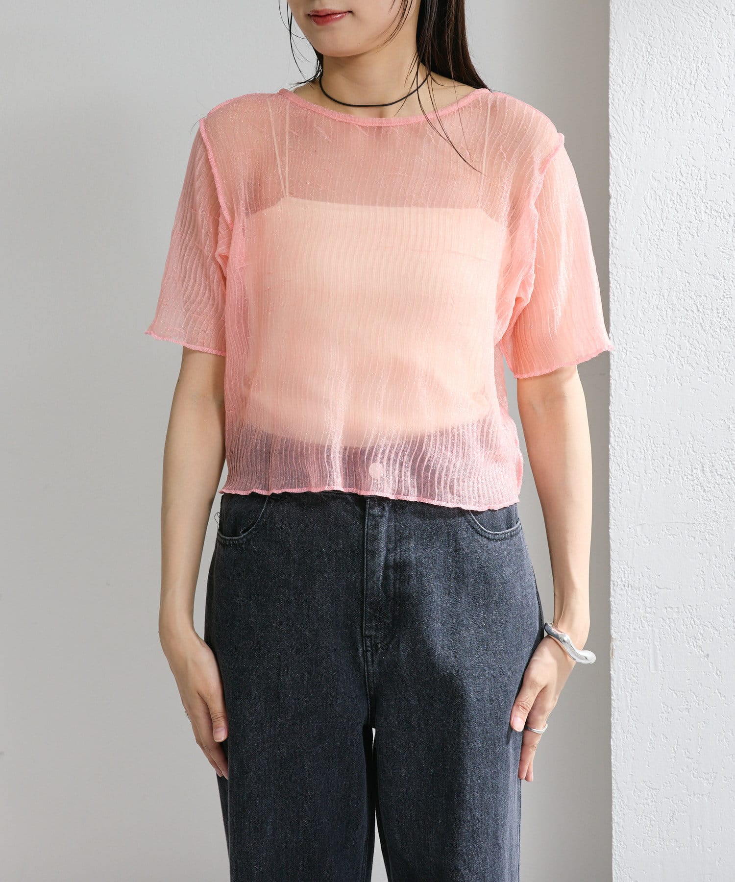 透け感を活かしてインナーとのレイヤードスタイルが楽しめます。