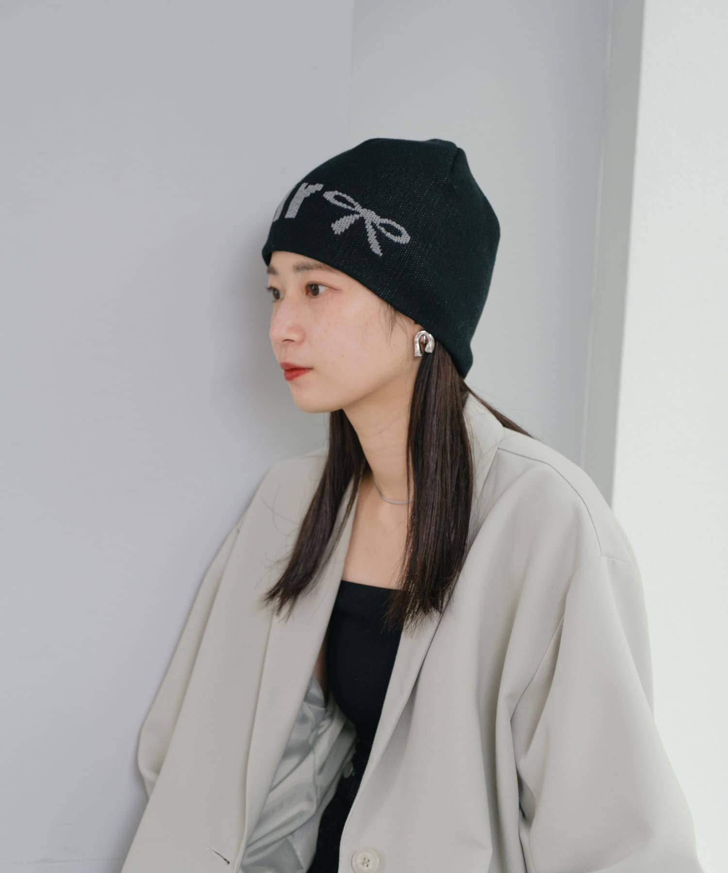 大きめのロゴとリボンモチーフが目立つ、アクセントになるアイテムです。