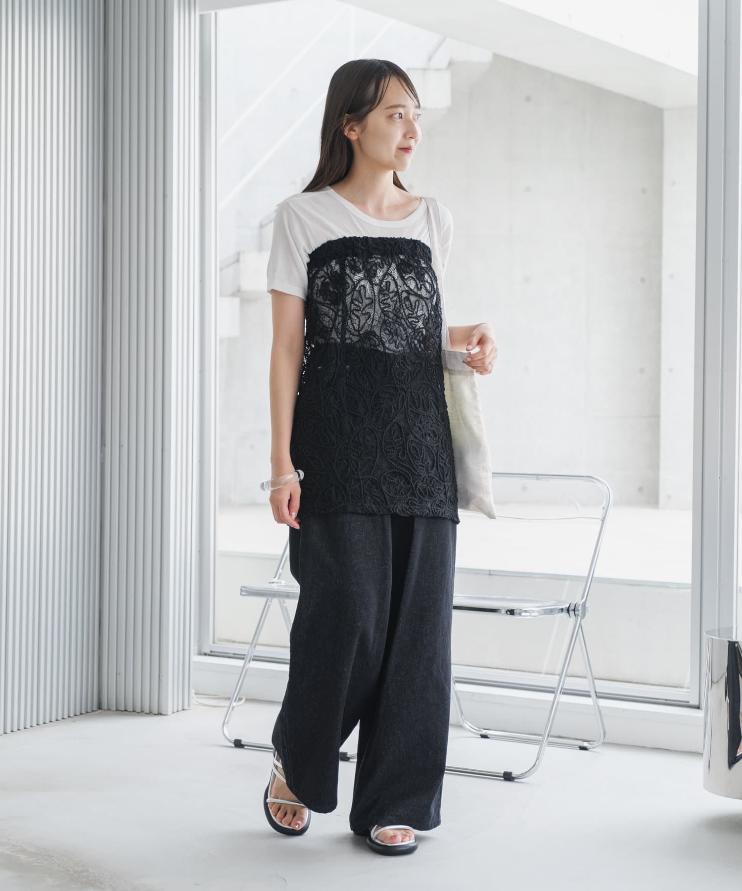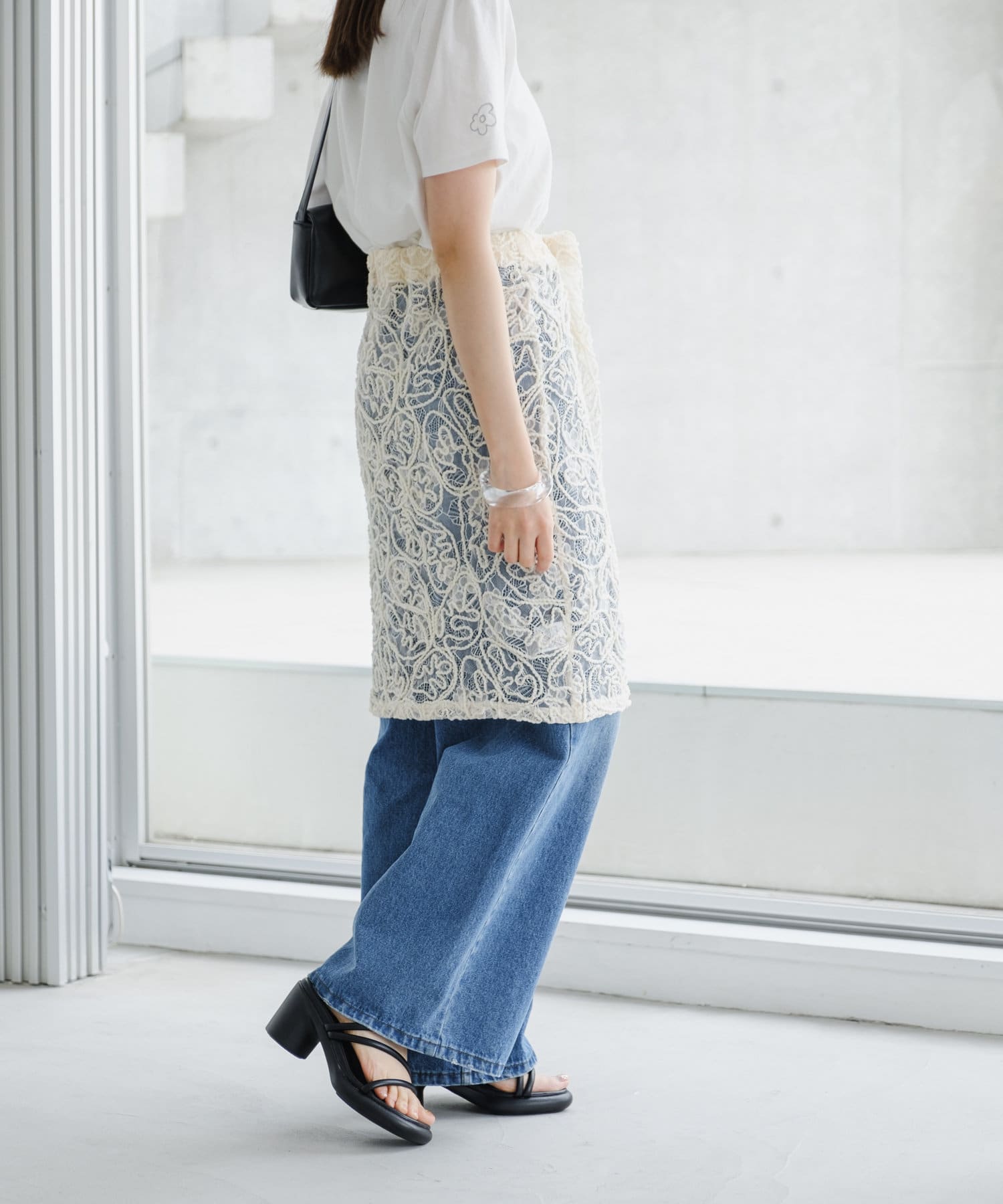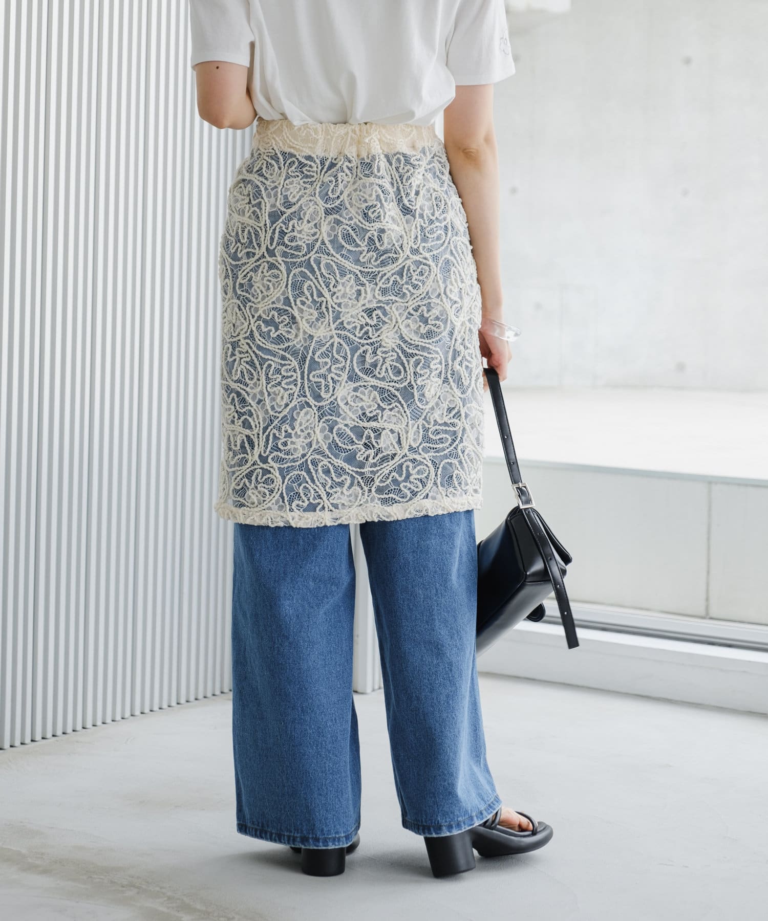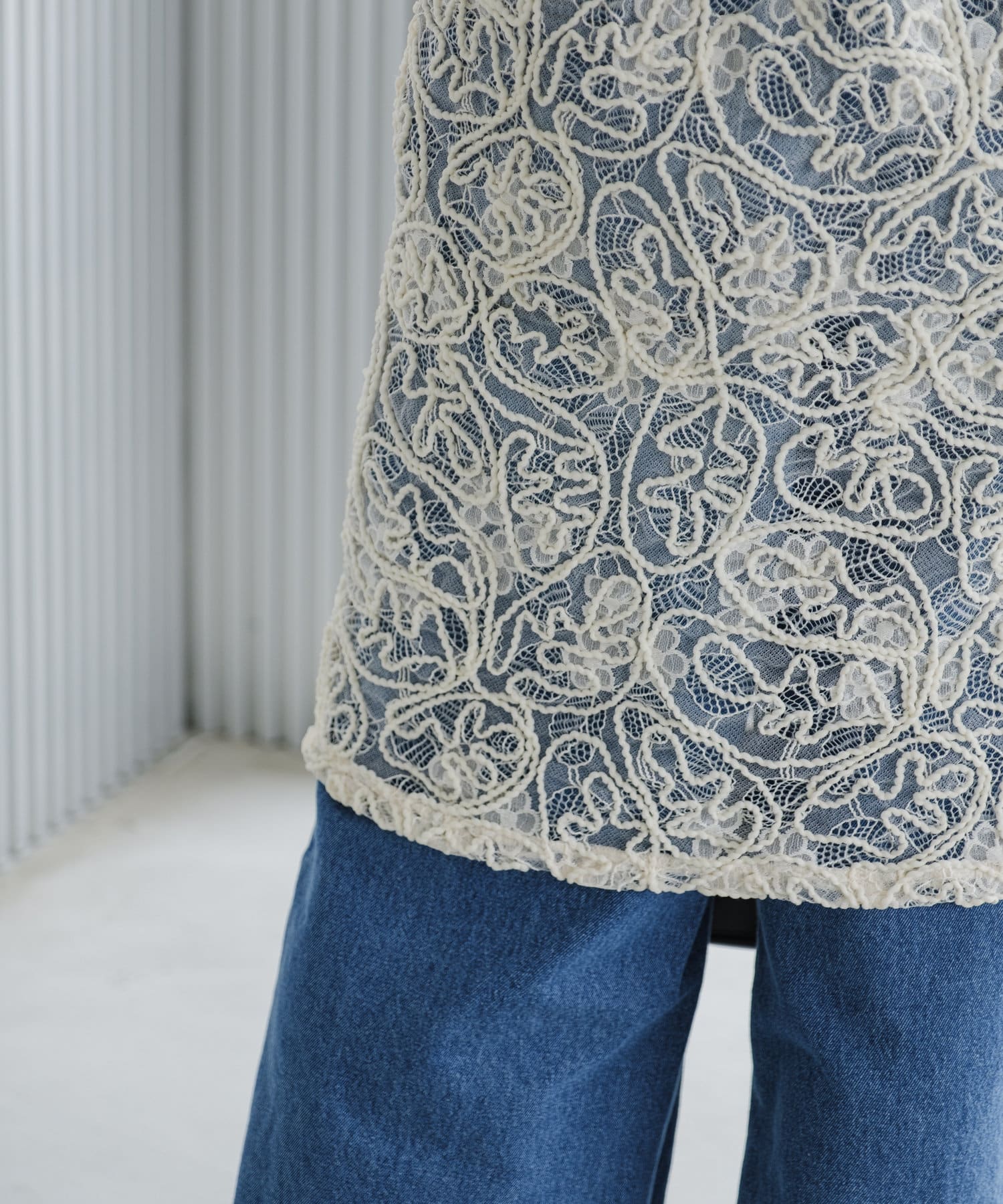 フラワーレースの上からジャガード織を重ねた立体感のあるデザイン。