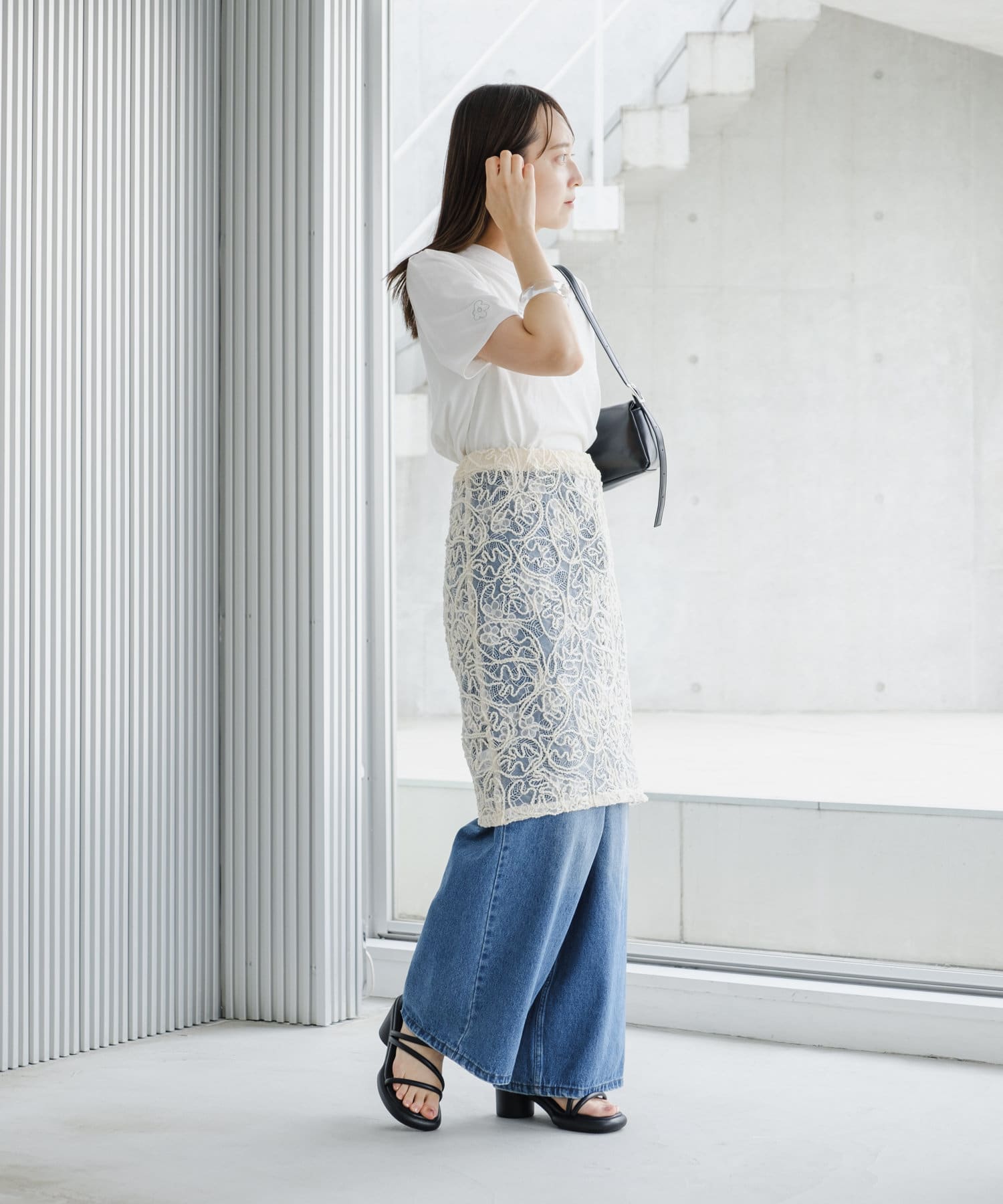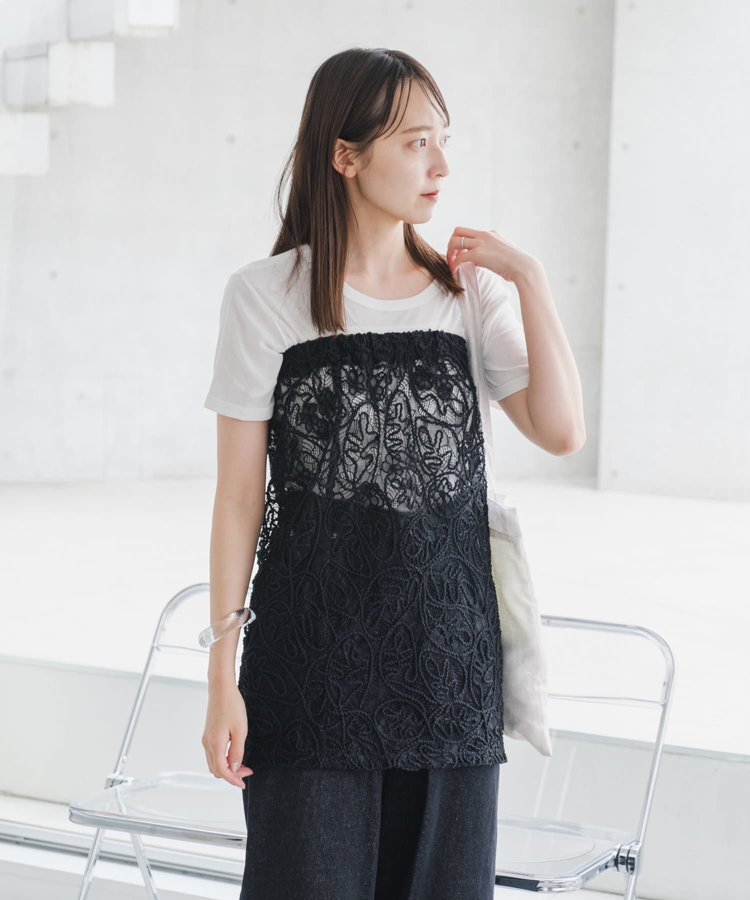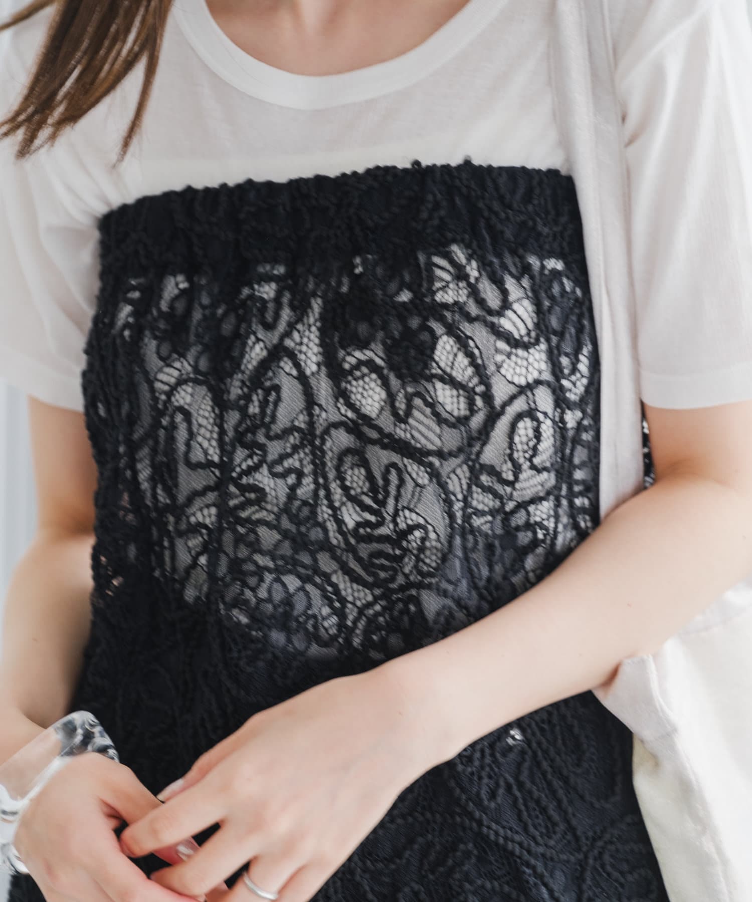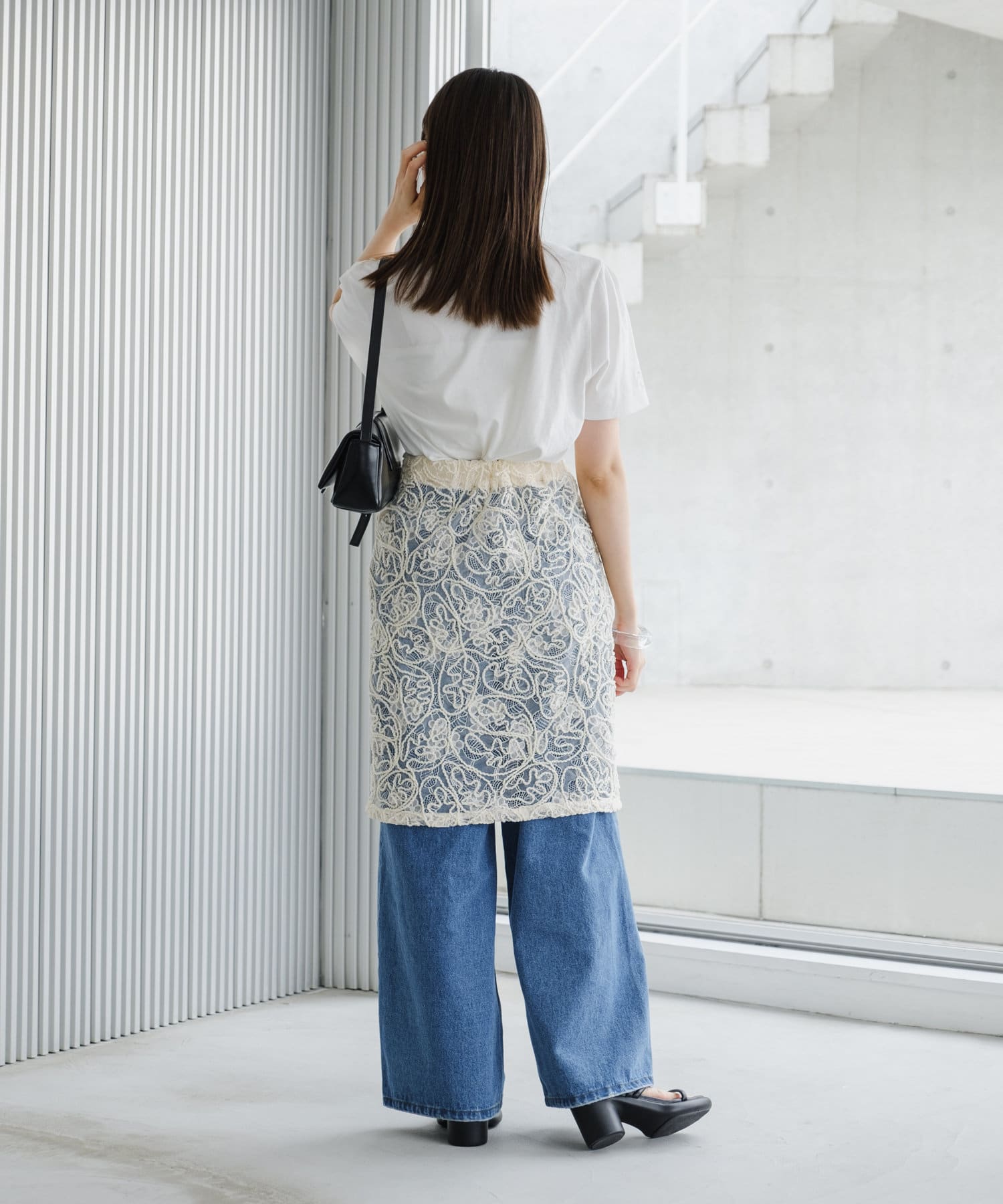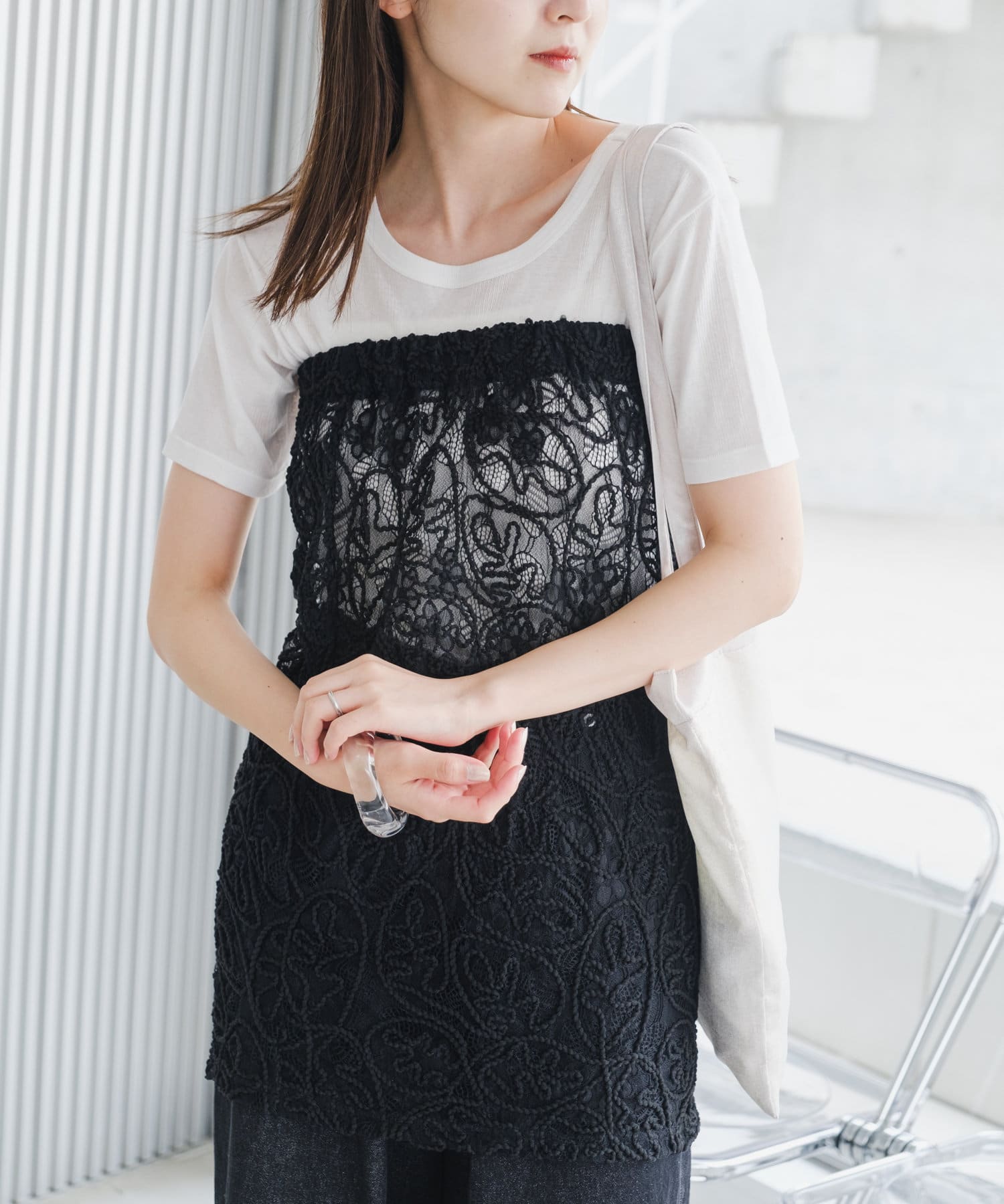 フラワーレースの上からジャガード織を重ねた立体感のあるデザイン。