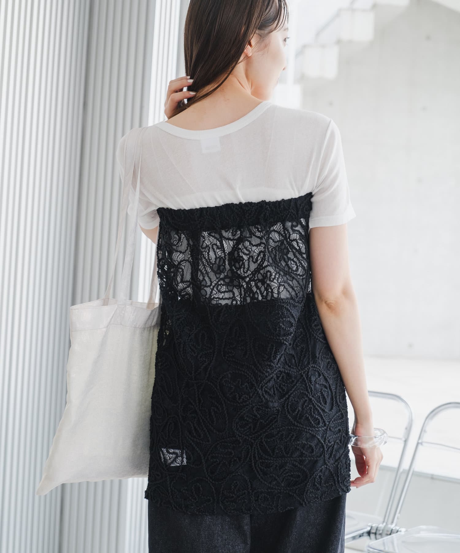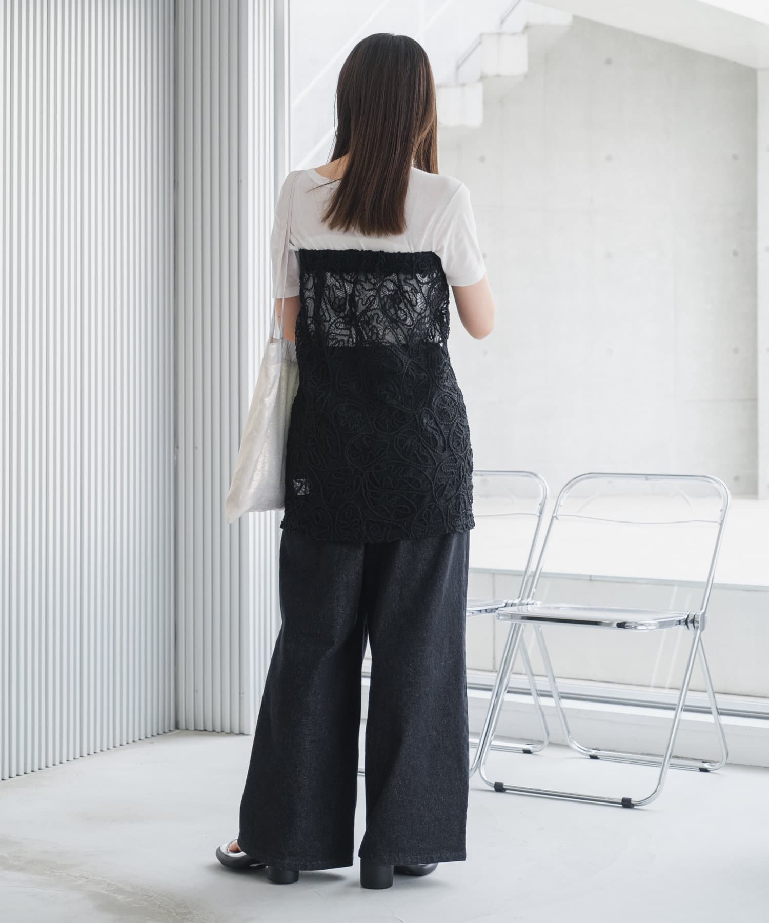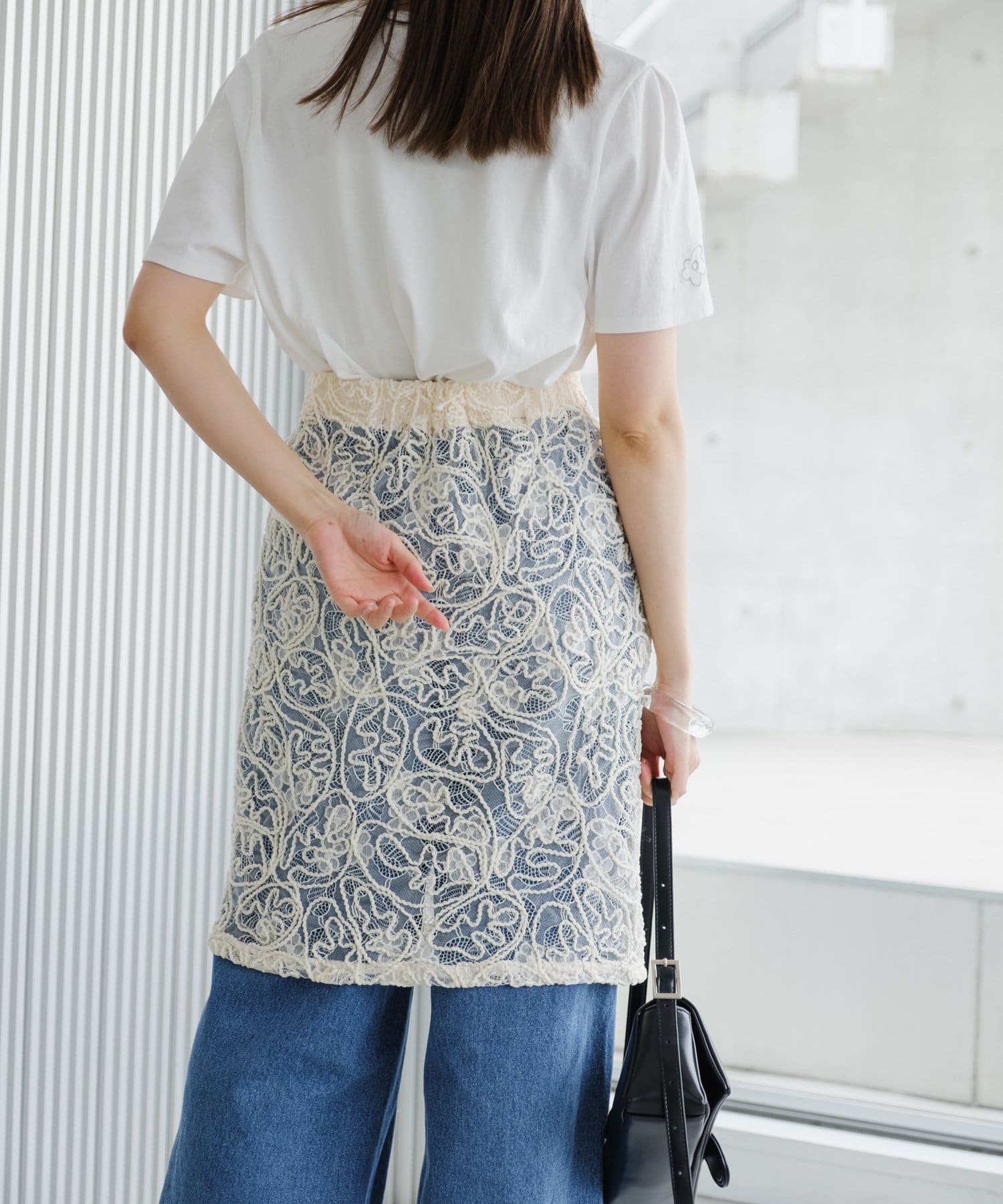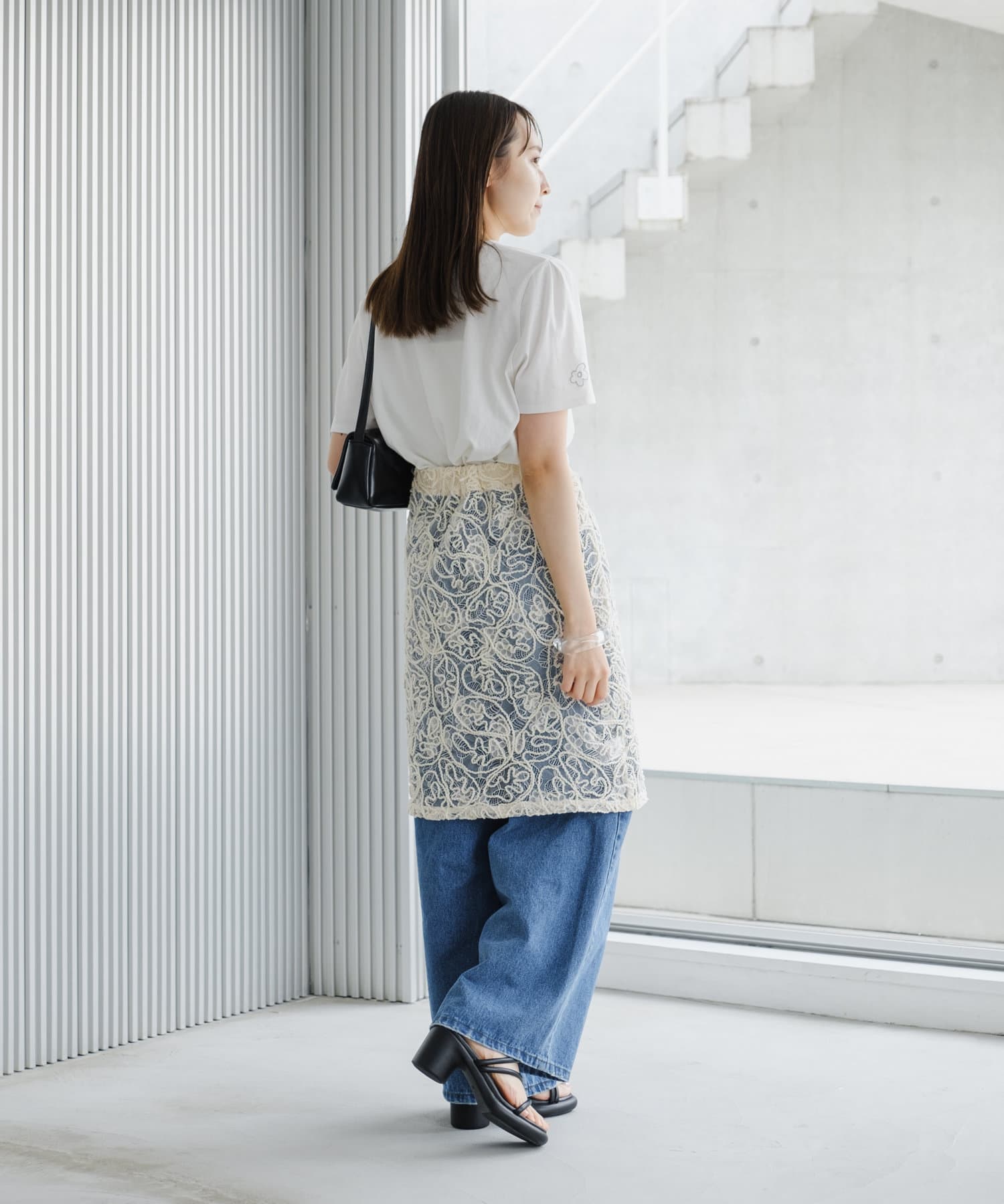 フラワーレースの上からジャガード織を重ねた立体感のあるデザイン。