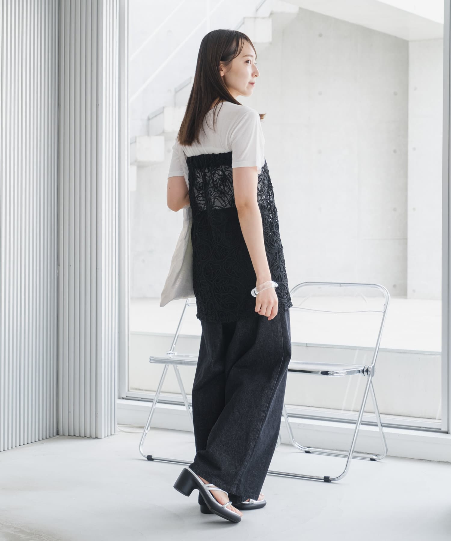ウエストゴムなのでレイヤードスタイルも楽ちん。
