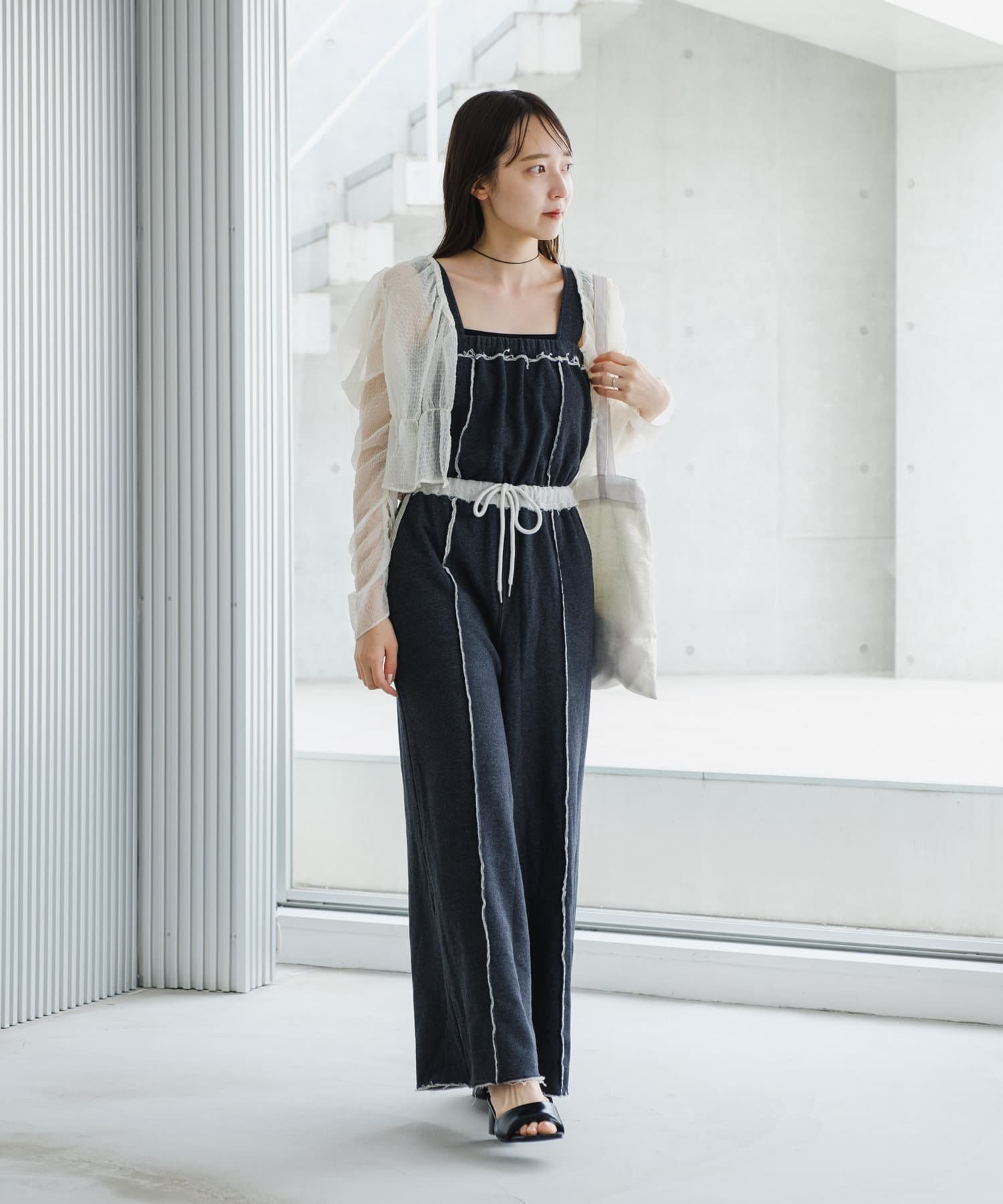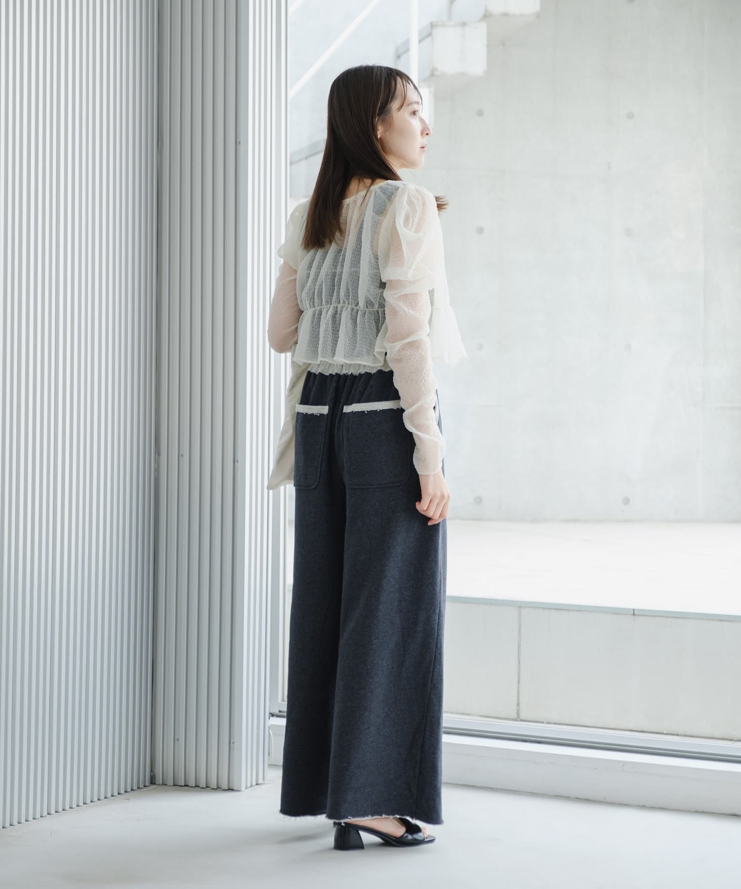 ウエストゴムに紐付きなので、シルエットの変化を楽しめます。