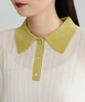 チビ襟や光沢感のあるボタンが女性らしい印象に。