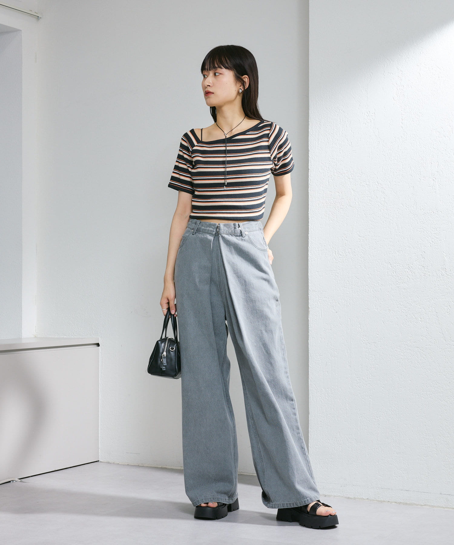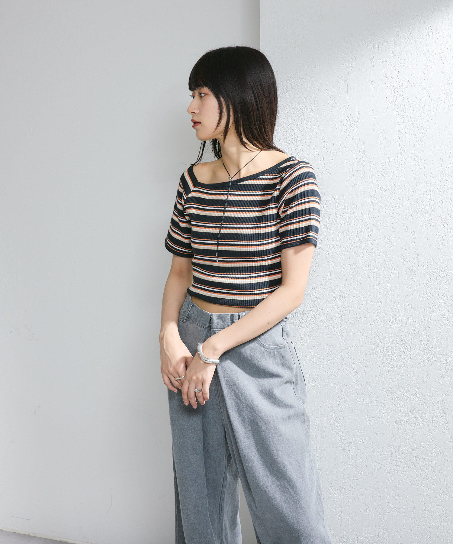 柔らかく伸縮性のある素材感で、ストレスフリーな着心地。