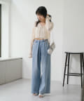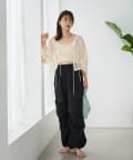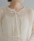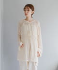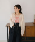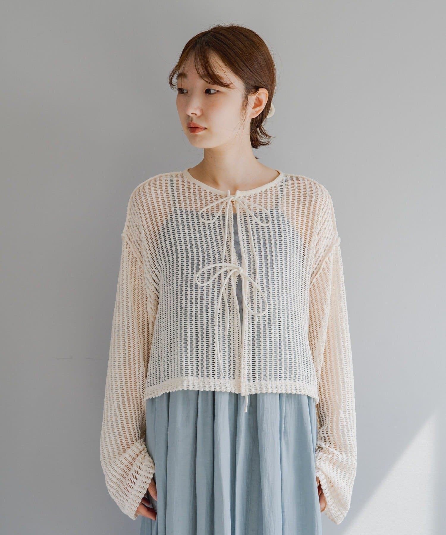 ボタンでなくリボンで留める仕様なのでフェミニンな印象に。